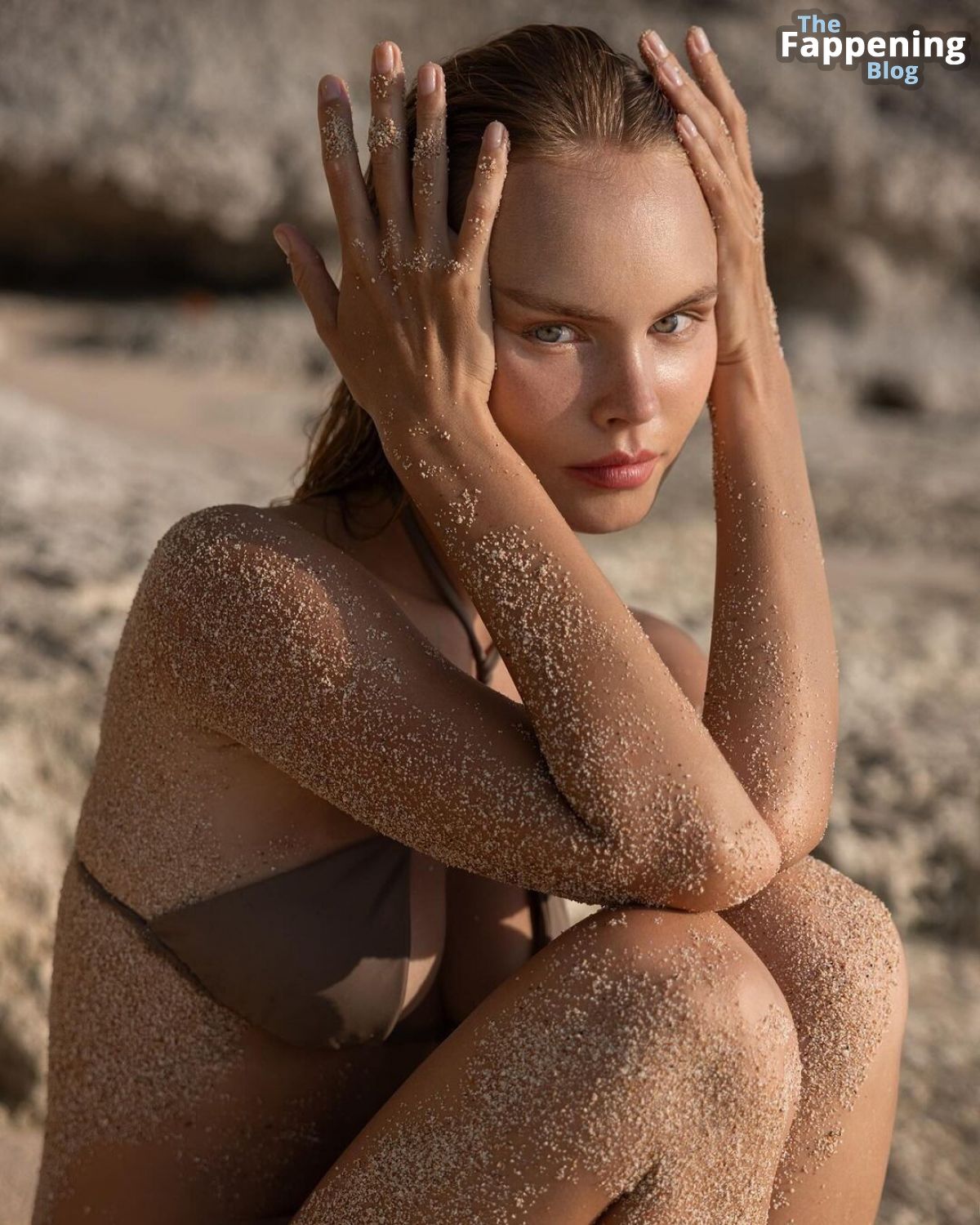 Anastasiya Scheglova est superbe dans un bikini chic, mettant en valeur son corps sexy sur la plage tout en profitant du soleil.