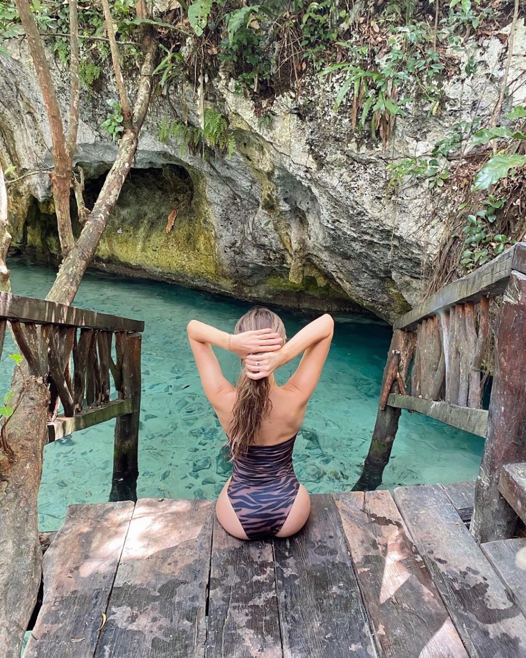 Amanda Stanton et Andi Dorfman montrent leurs atouts en nageant dans un cénote pendant leurs vacances à Tulum, 05/02/2020.