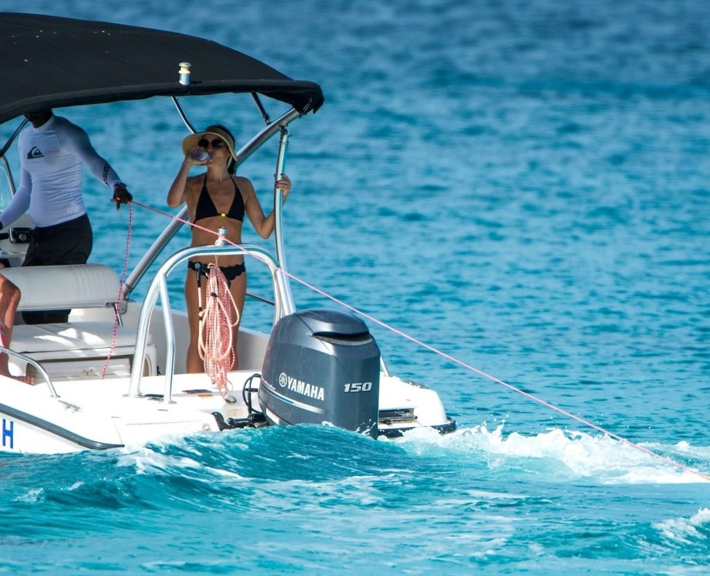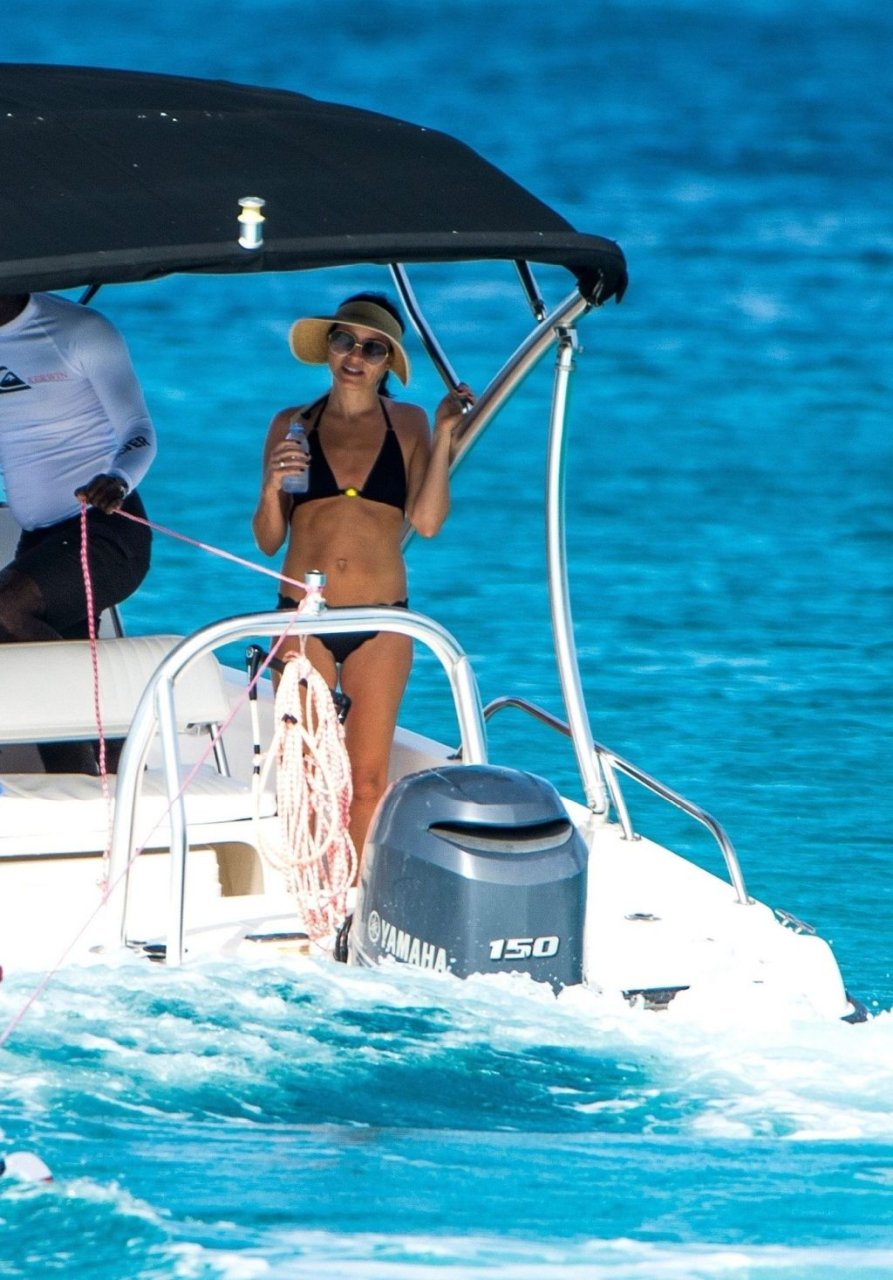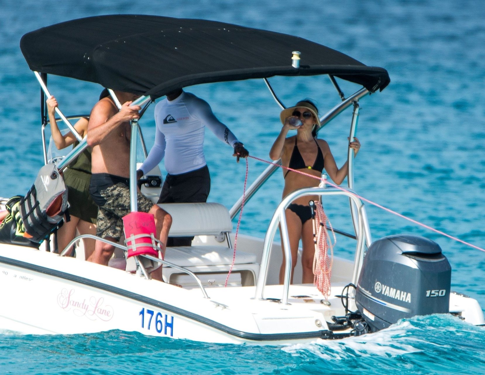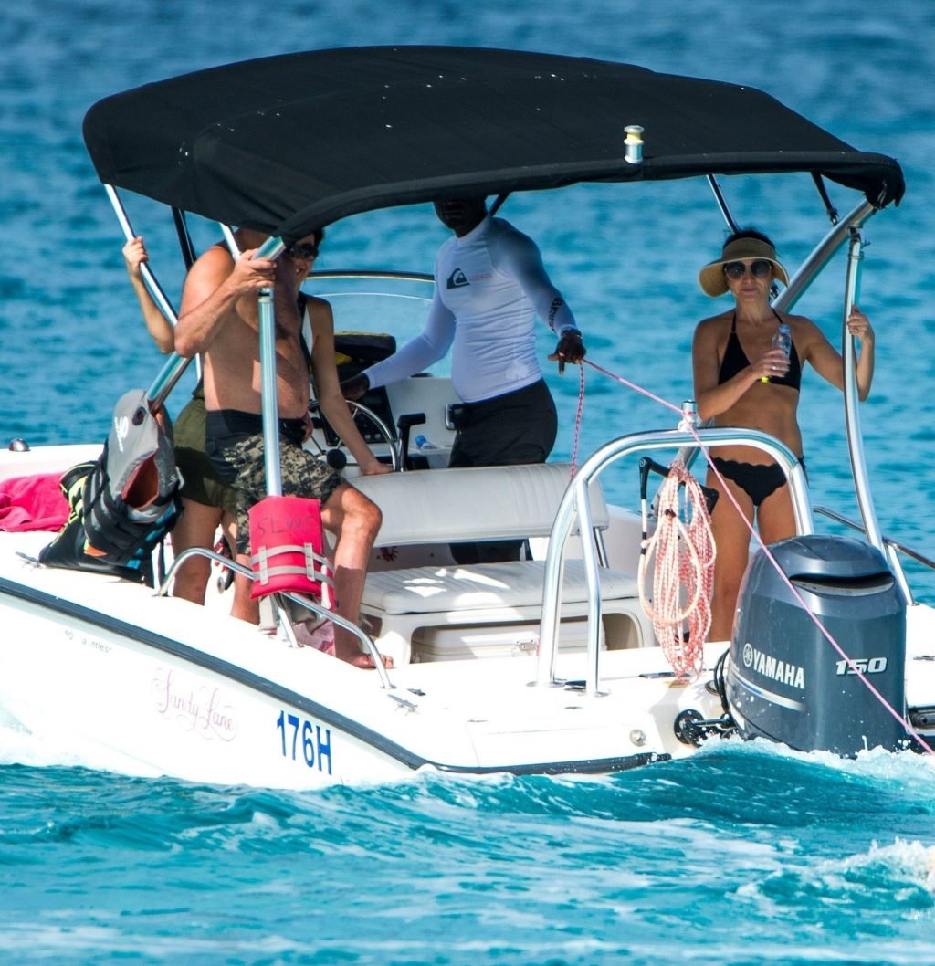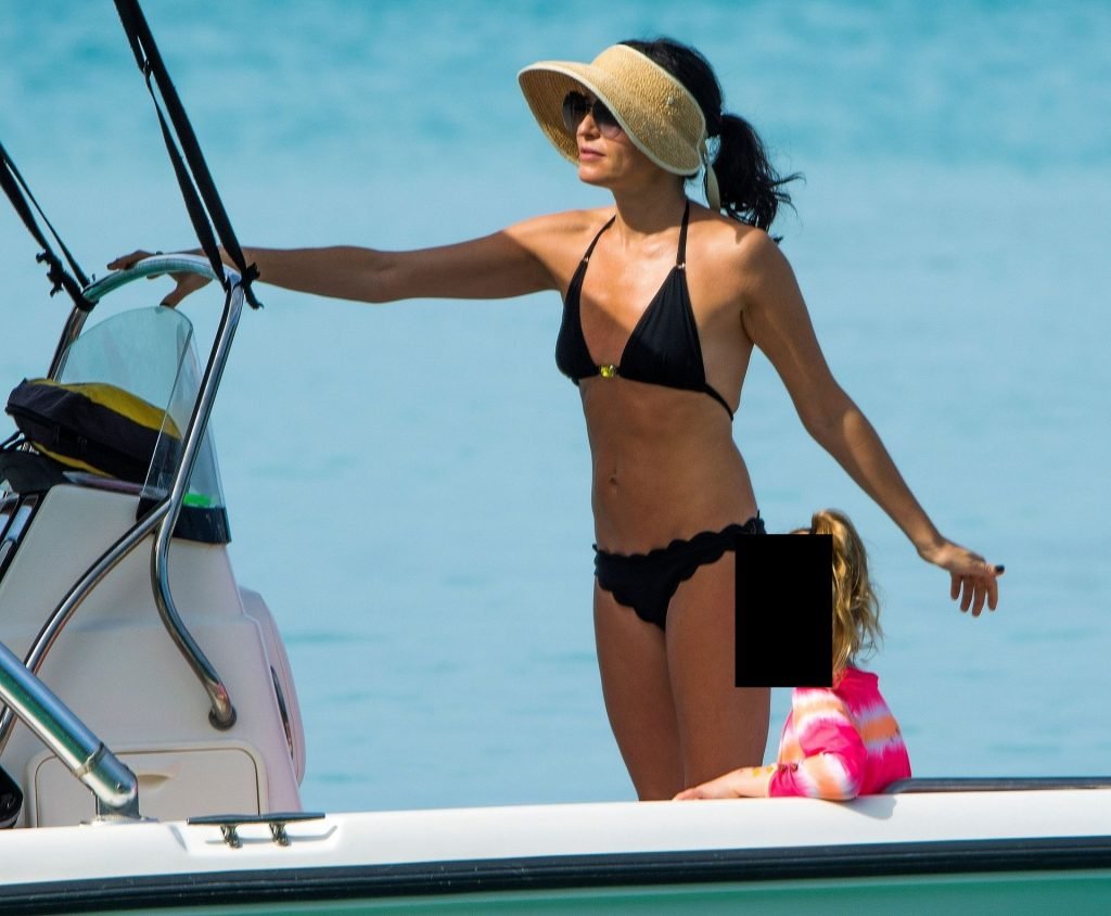 Chanteuse irlandaise Andrea Corr et sa famille profitent d’une journée à la plage à la Barbade, 18/02/2019. Andrea a montré ses abdominaux sculptés dans son bikini sur la plage.