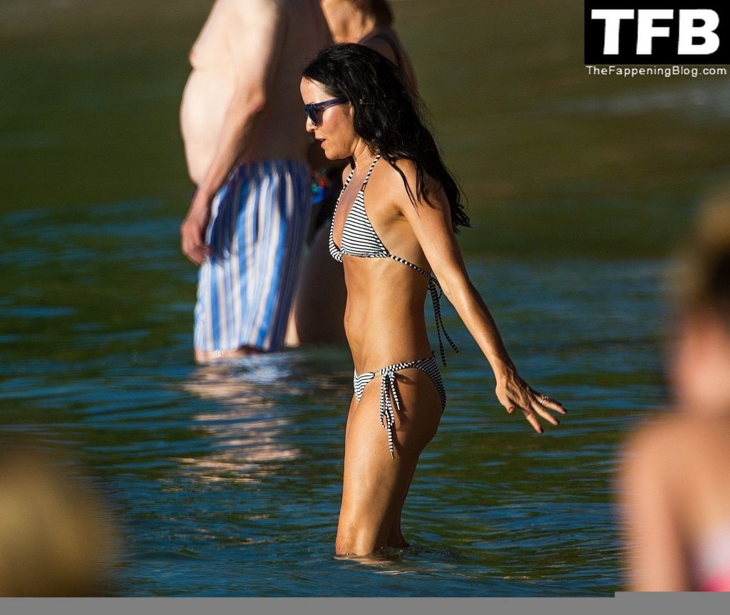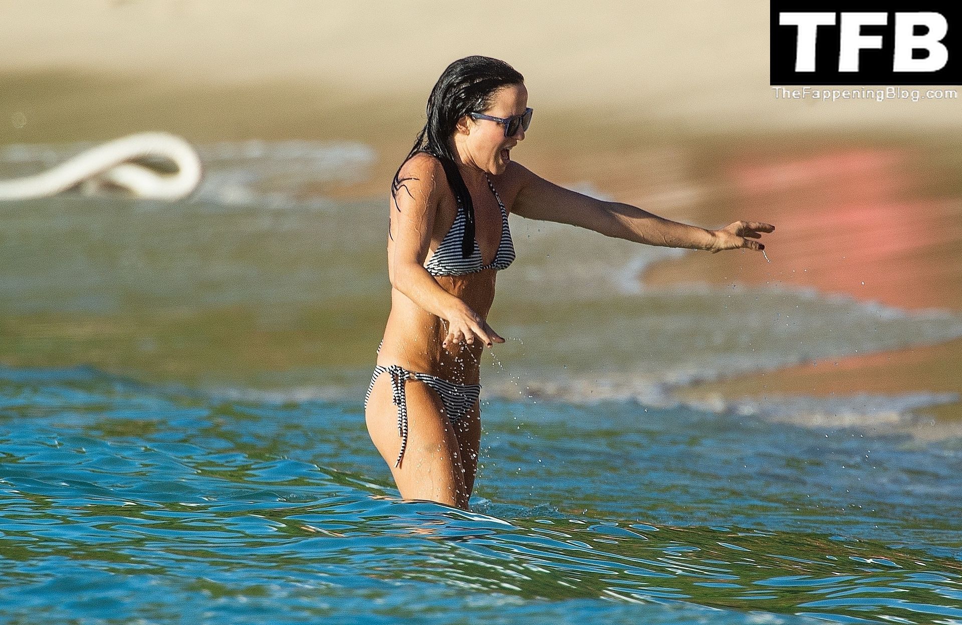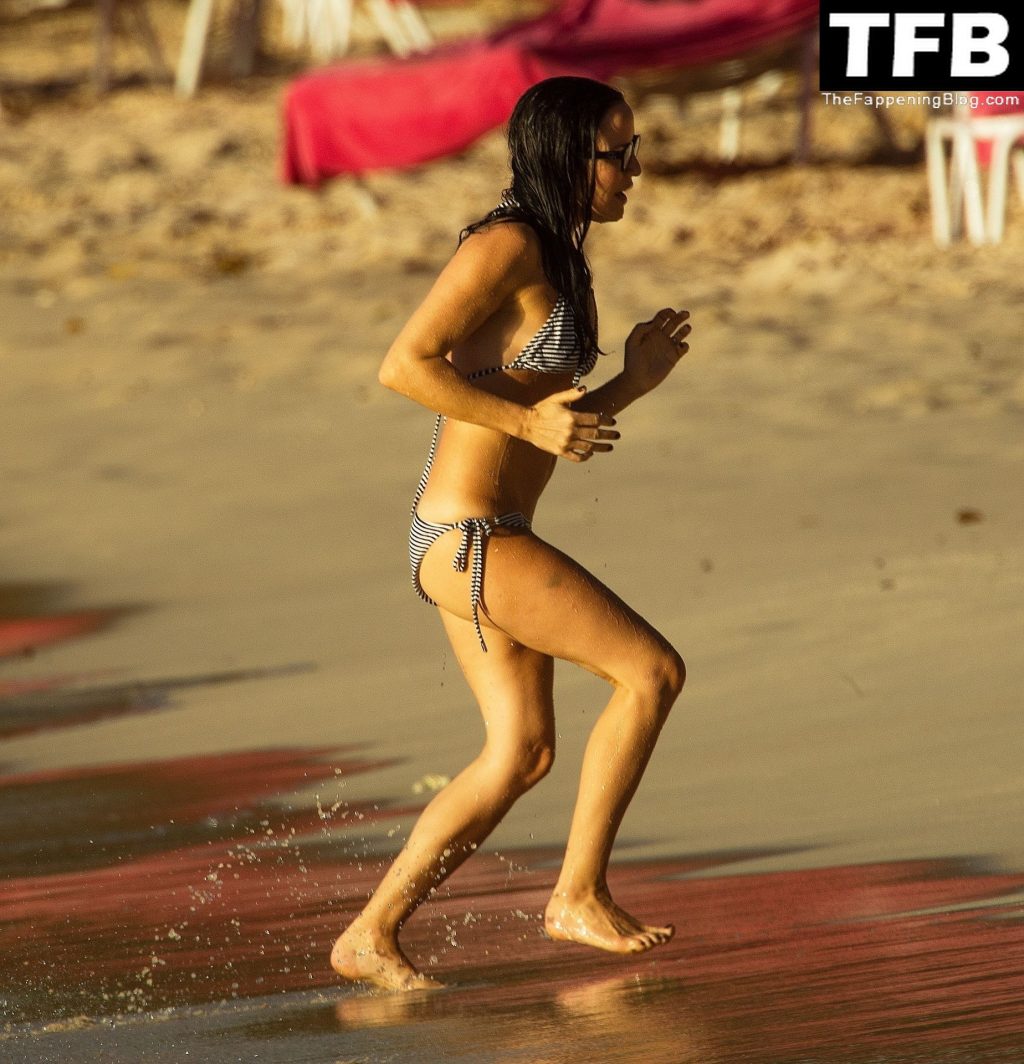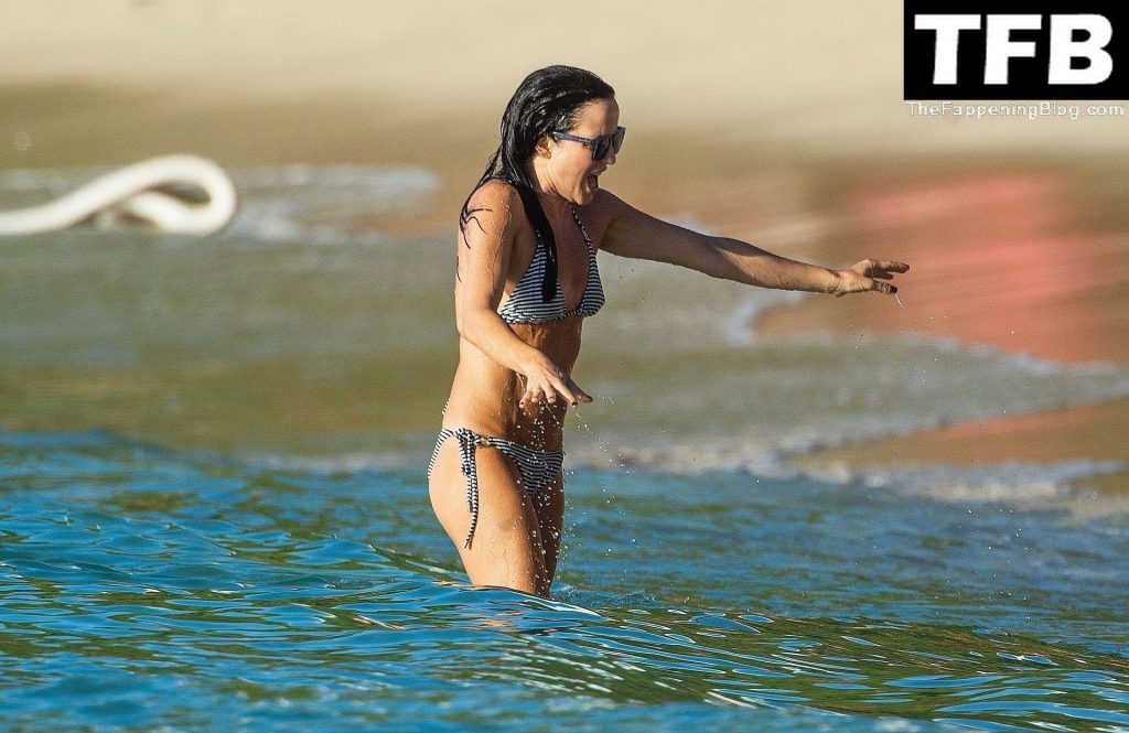 La chanteuse principale du groupe irlandais, The Corrs, Andrea Corr, 47 ans, continue de défier son âge en mettant en valeur sa silhouette sexy dans un petit bikini rayé aperçu sur les plages en vacances dans la paroisse de St. James, à la Barbade, le 01/05/2022.