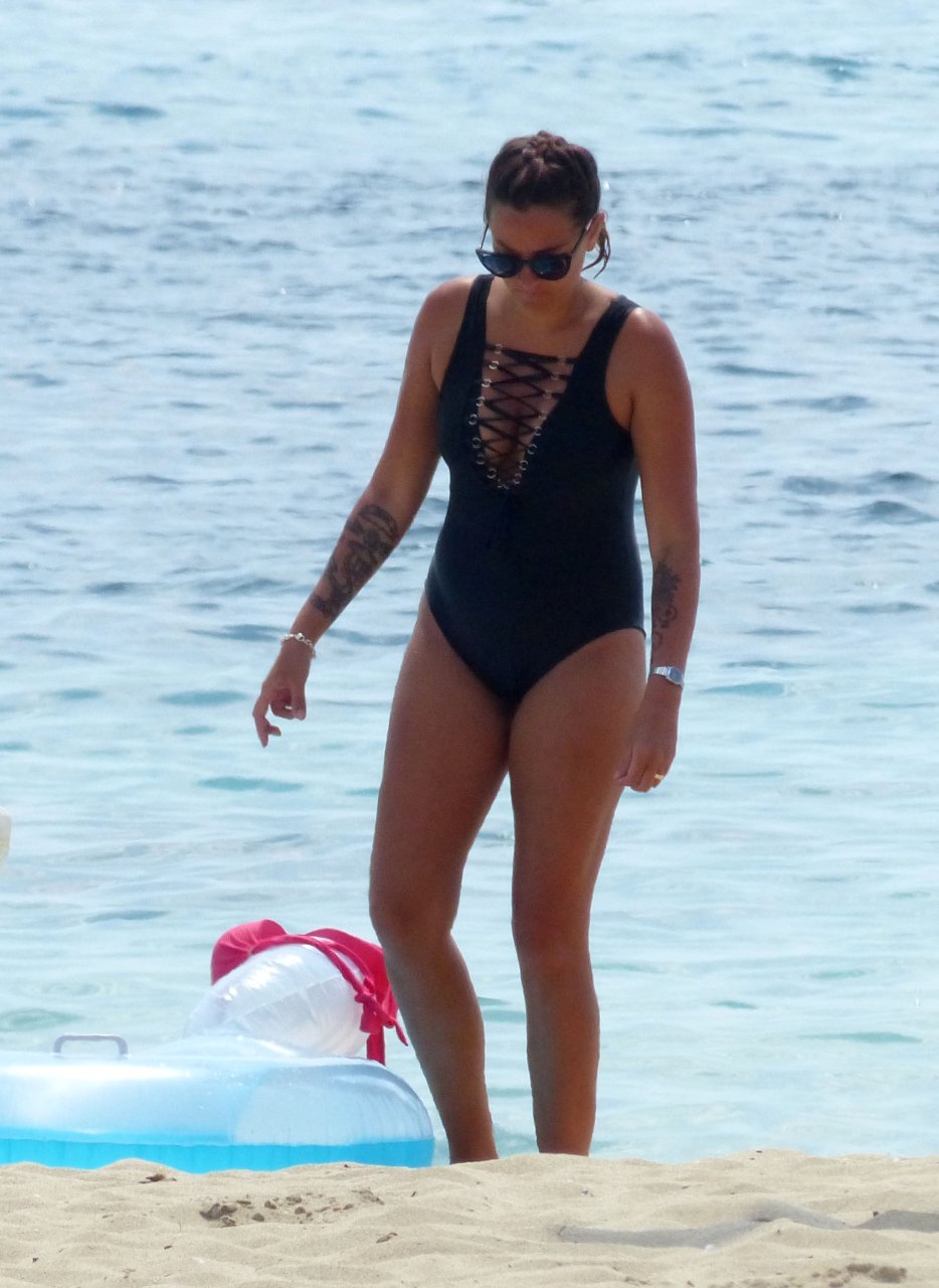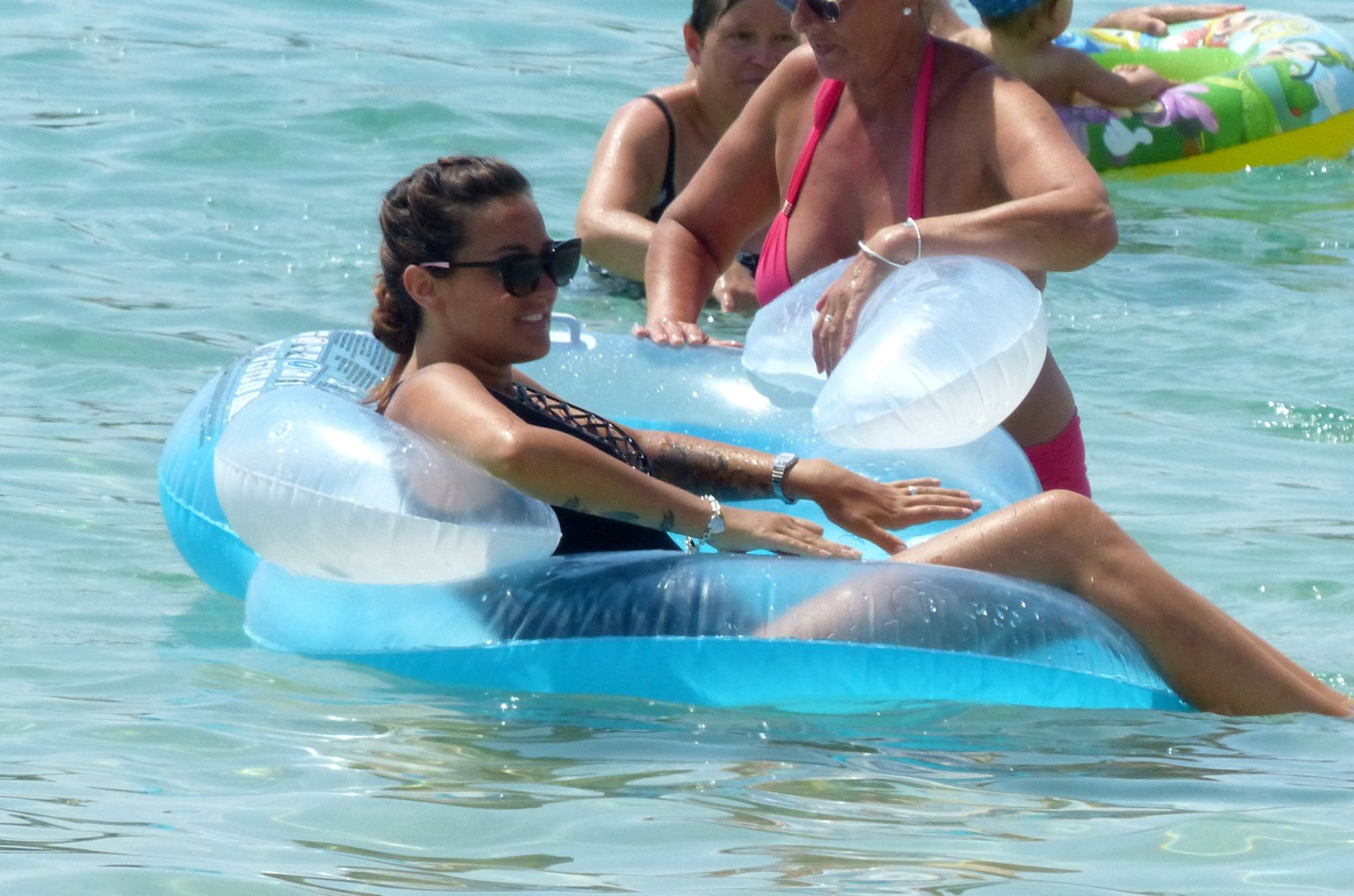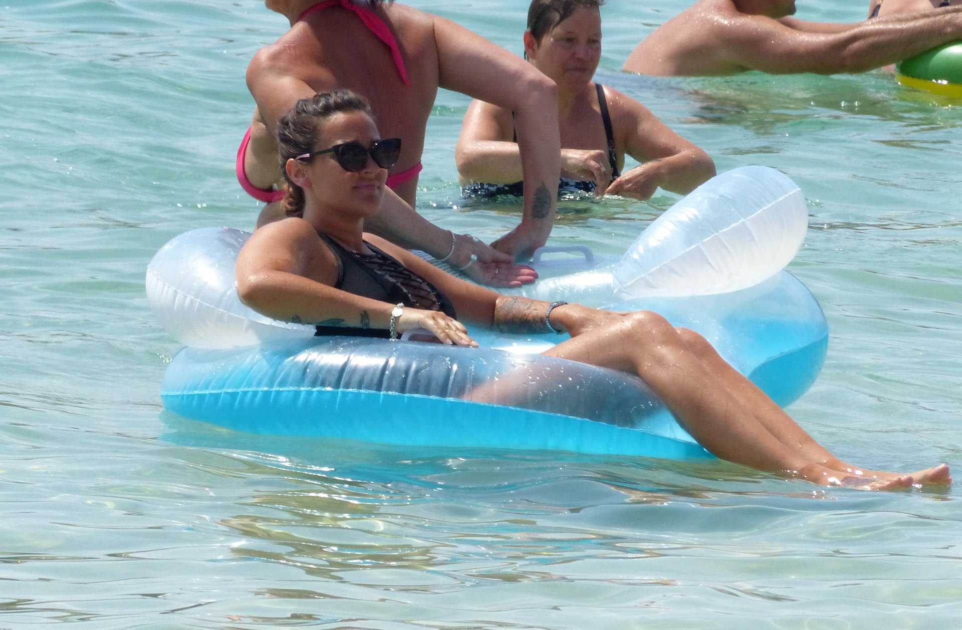 La chanteuse de 30 ans, qui a remporté la version allemande de Britain’s Got Talent, Das Supertalent, s’est détendue sur un flotteur dans la mer et a passé du temps avec des amis à Majorque.