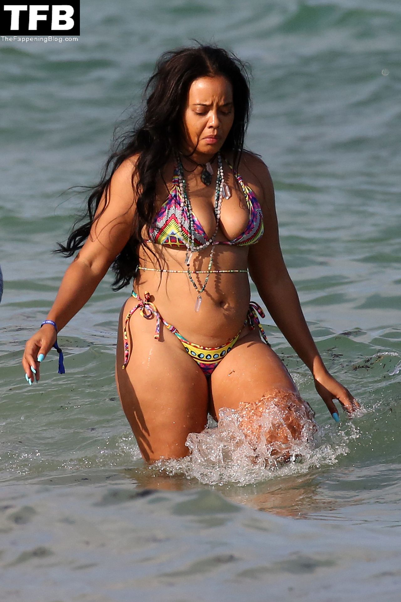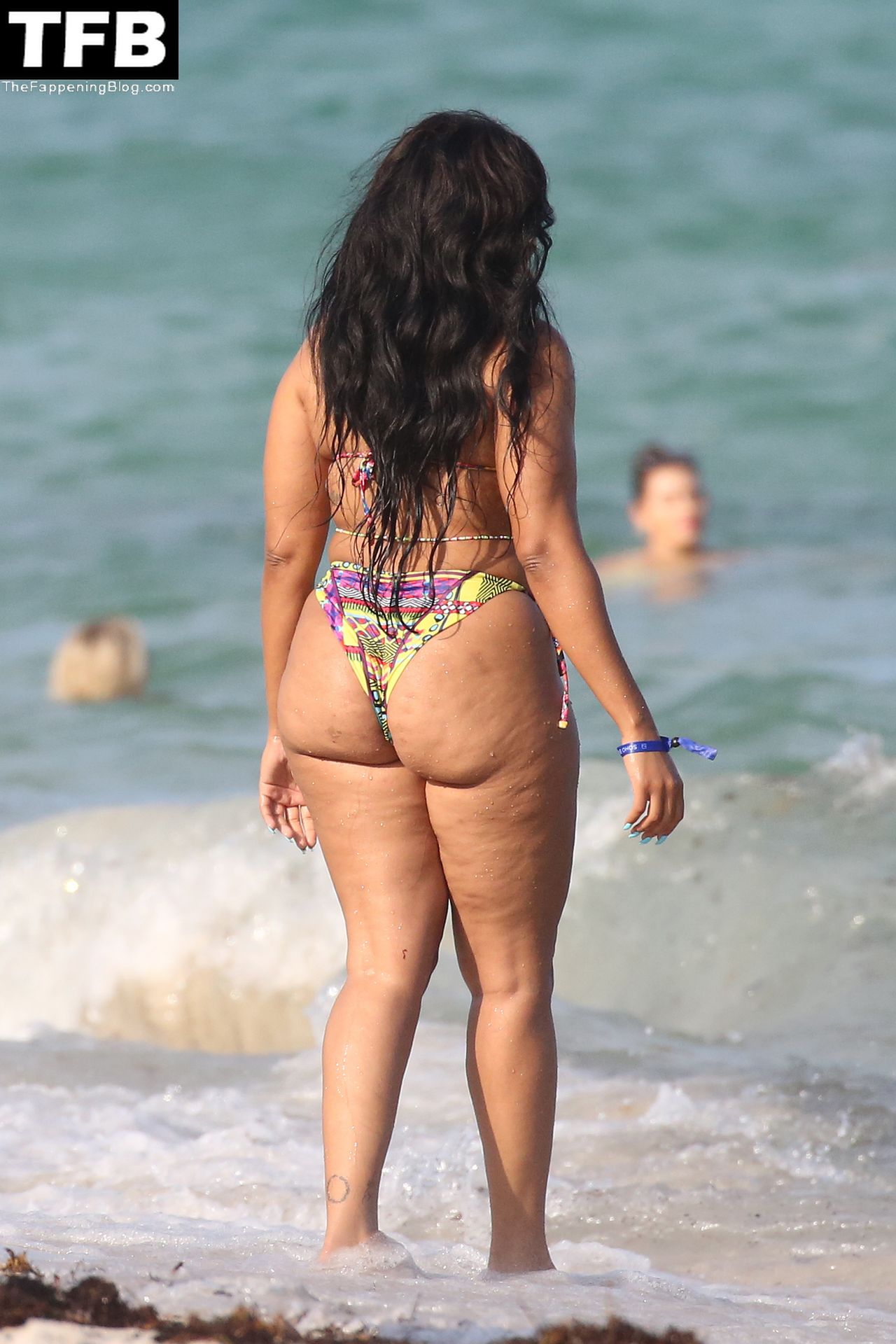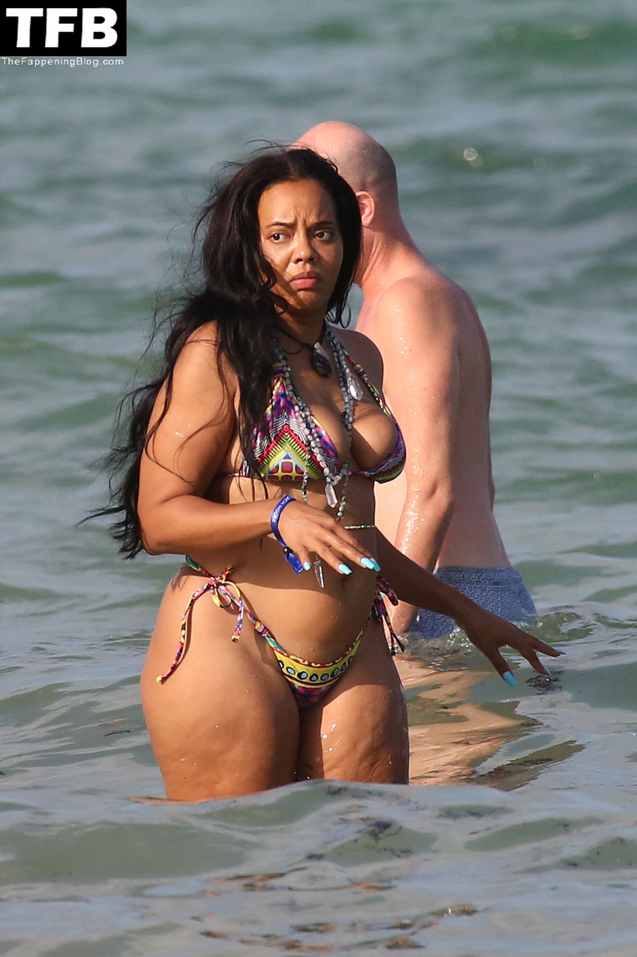 La star de la télé-réalité Angela Simmons affiche ses courbes dans un bikini coloré alors qu’elle profite de la plage à Miami, le 17/10/2021.