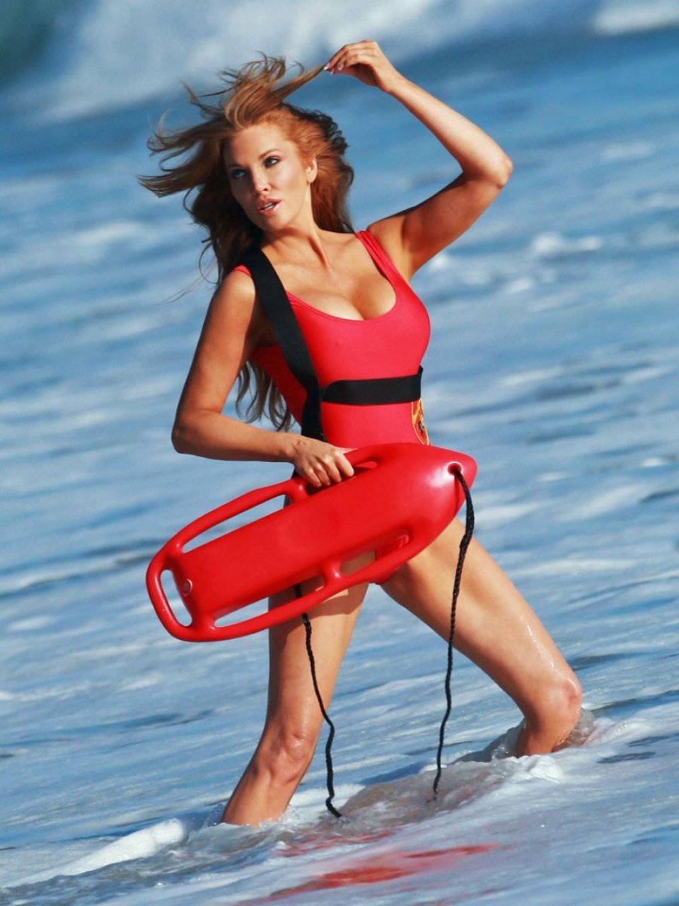 Angelica Bridges a montré son corps sexy dans des maillots de bain rouges lors du shooting photo à thème Baywatch Themed 138 Water sur la plage de Malibu, le 04/04/2016. Angelica Jo Bridges est une actrice et mannequin américaine. Née le 20 novembre 1970.