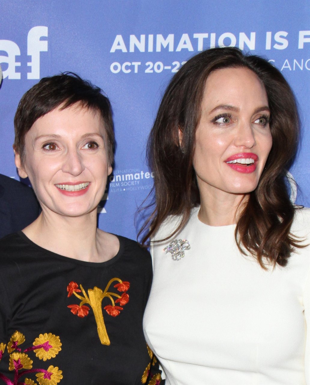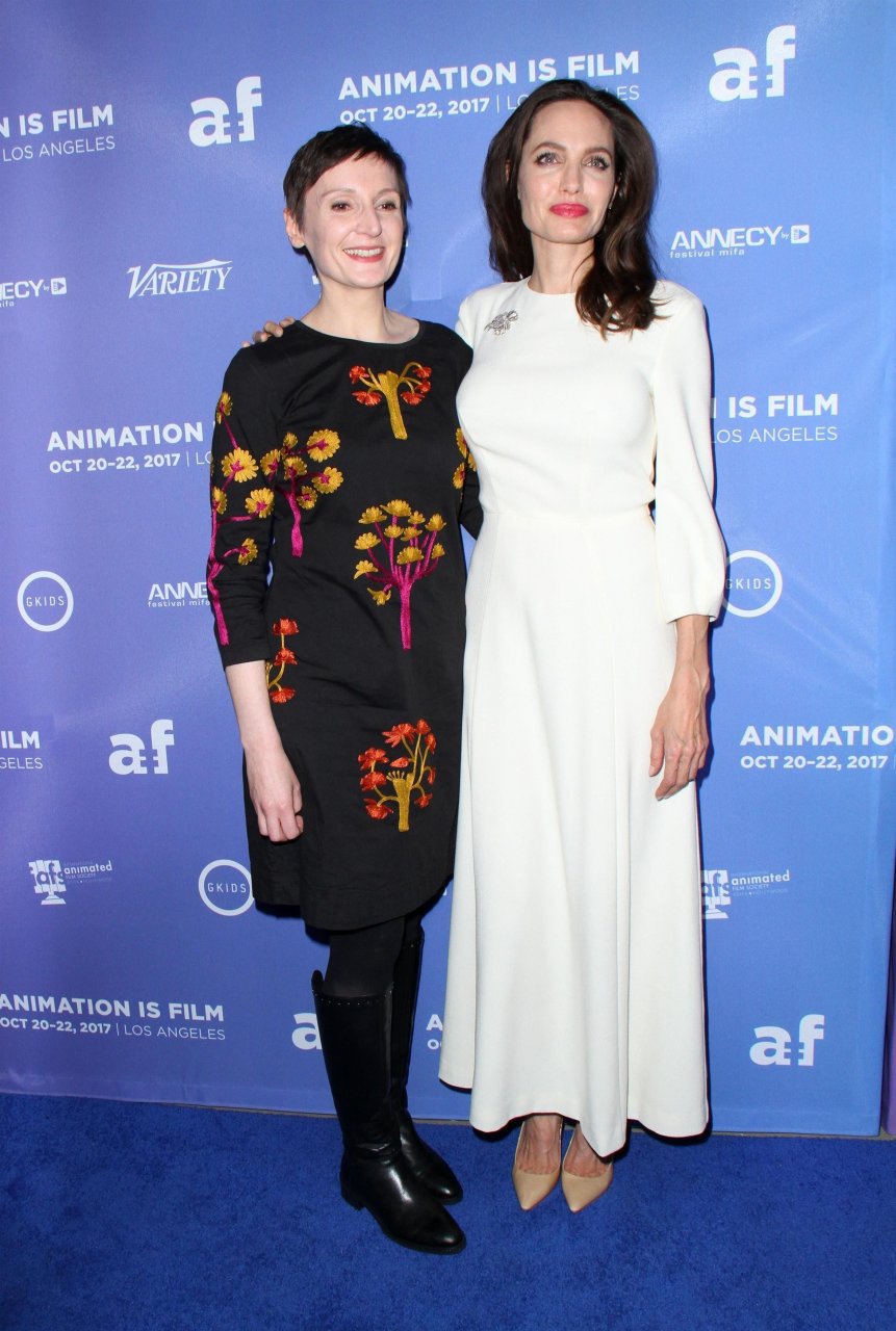 Busty Angelina Jolie assiste à la première de The Breadwinner à Los Angeles, le 20/10/2017. Angelina Jolie est une actrice américaine (Original Sin (2001)). Âge – 42 ans.