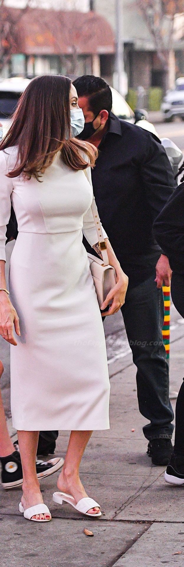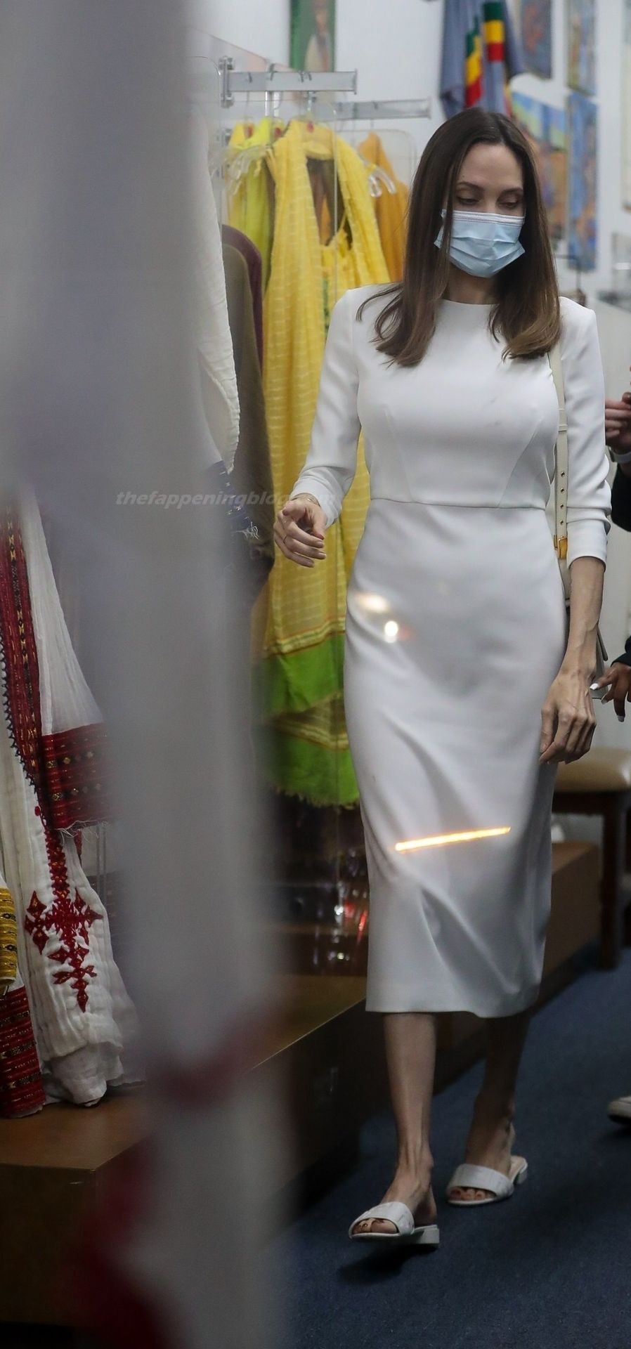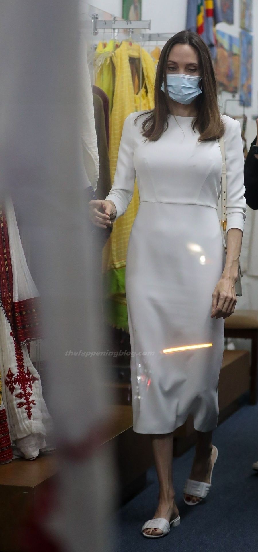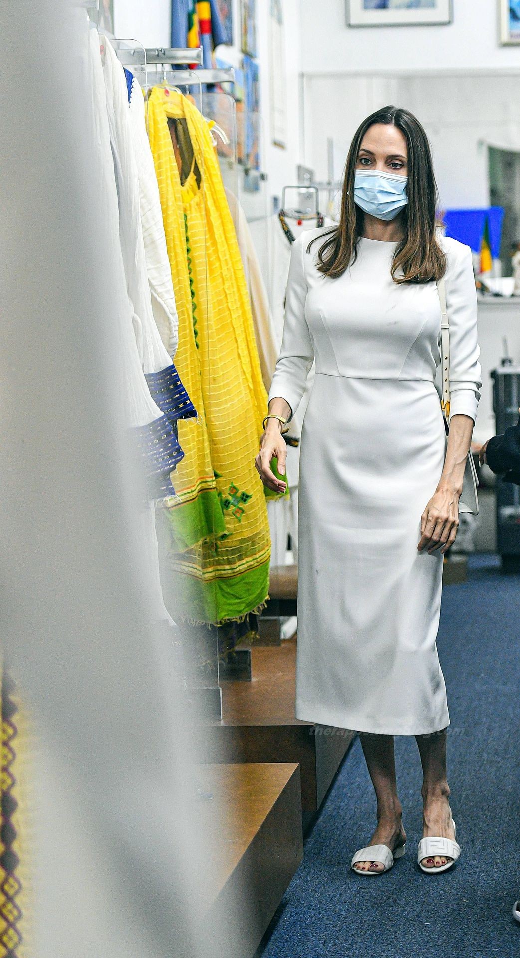 Angelina Jolie a été aperçue sans soutien-gorge en train de faire du shopping dans une boutique éthiopienne avec ses deux filles Zahara et Vivienne à Los Angeles, le 01/08/2021.