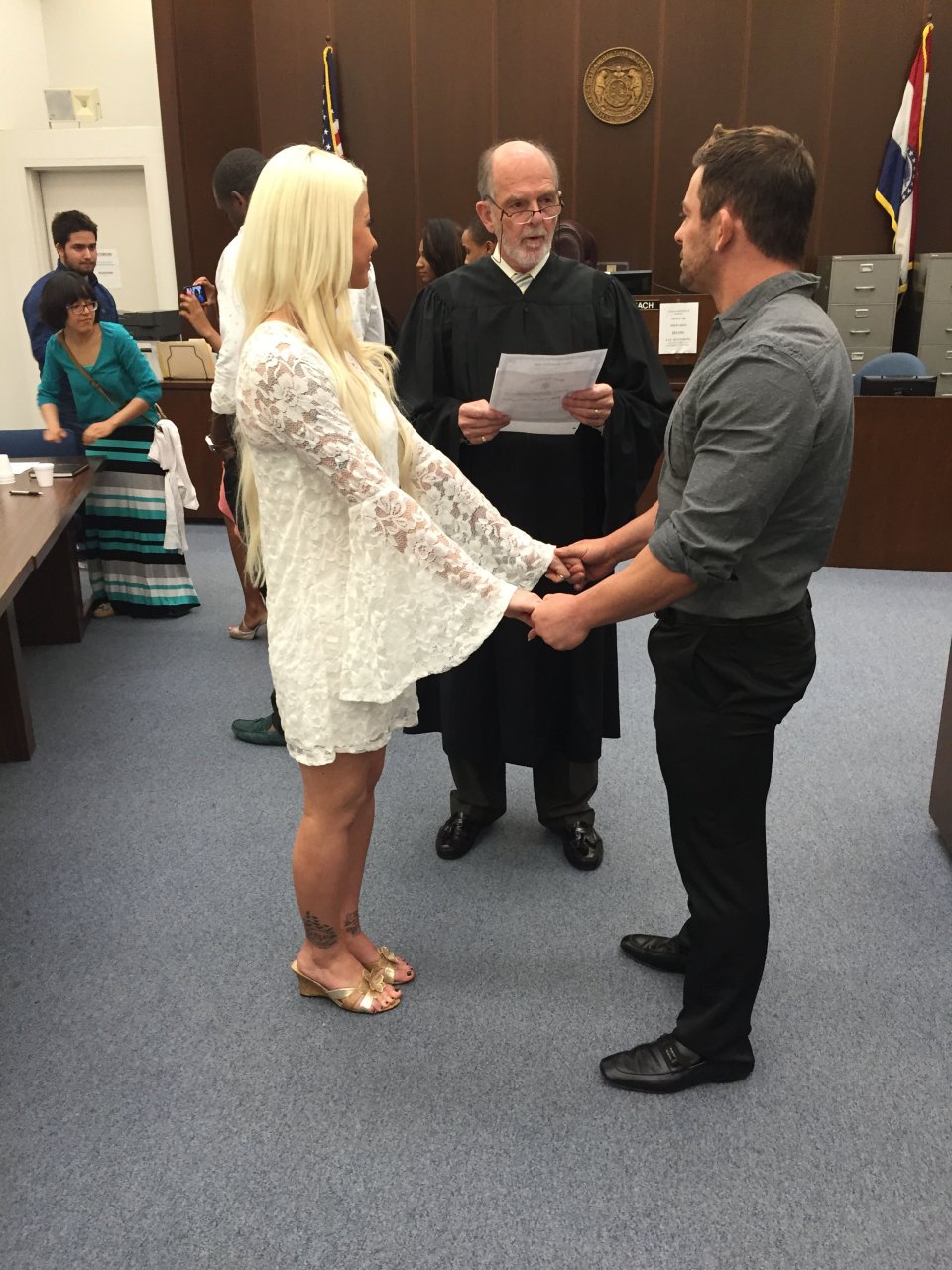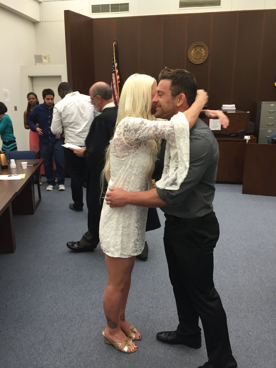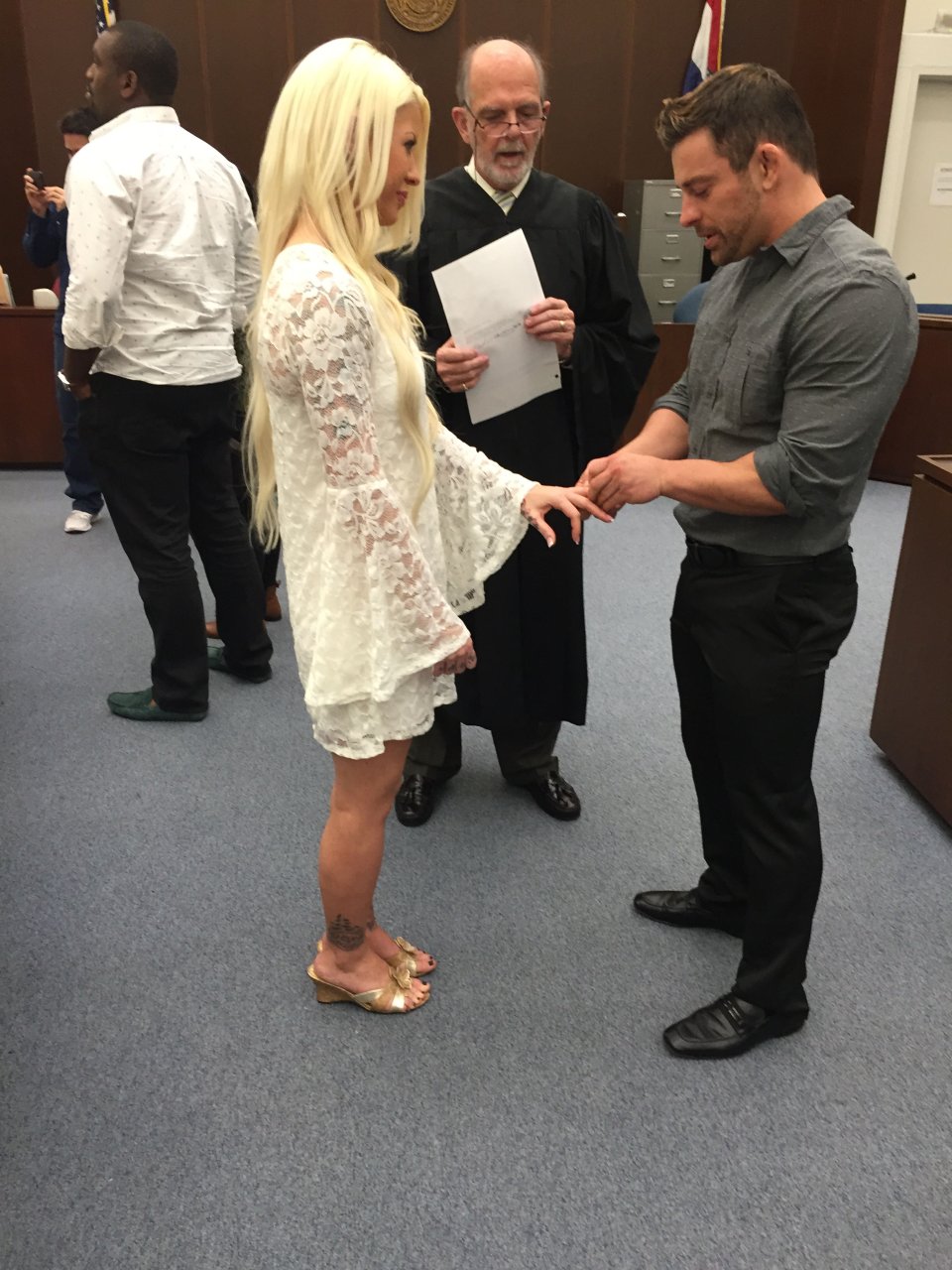 Ce pauvre type est fier d'être marié à une idiote. Il va se faire avoir à la fin. Au moins, elle a un joli minou. Il est probablement encore lâche et usé. C'est la seule partie attirante de son corps.