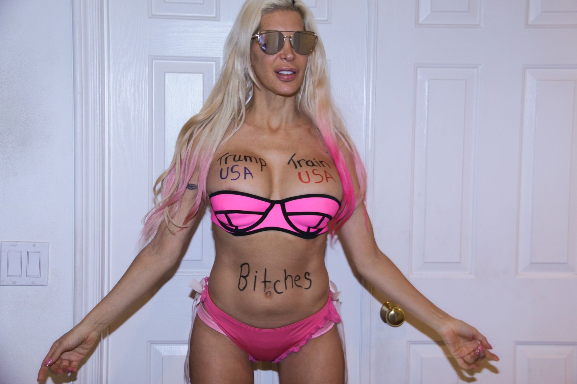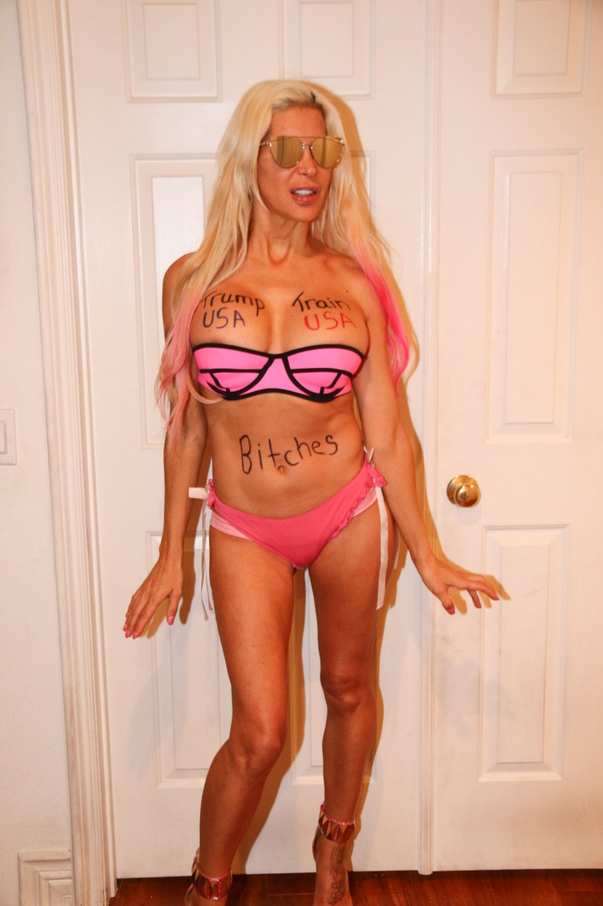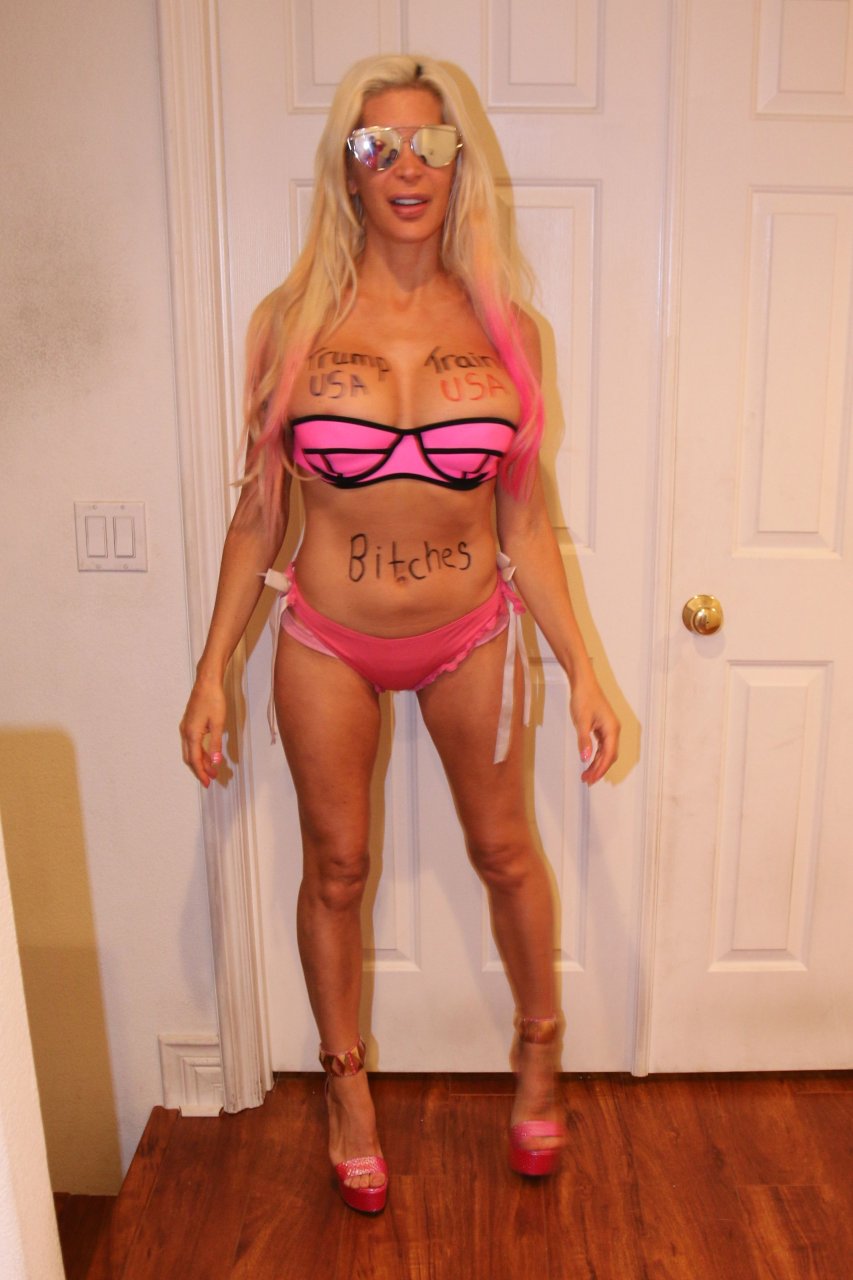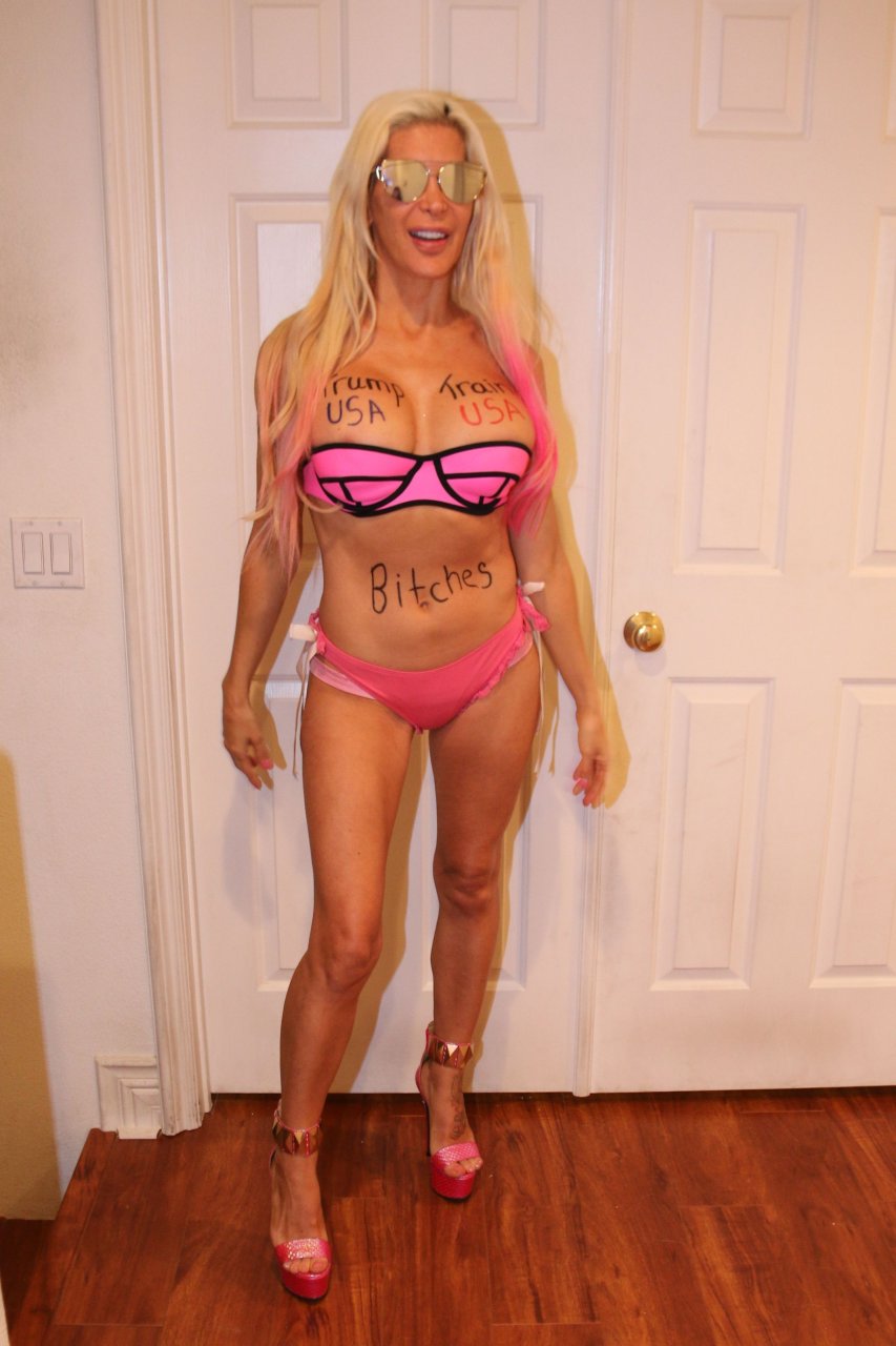 Angelique Morgan porte un bikini rose sexy à Malibu, 11/09/2016. Faux seins pour Trump. Angelique « Frenchy » Morgan est une personnalité française de la télé-réalité, actrice, mannequin et danseuse exotique. Âge : 41 ans (22 septembre 1975).