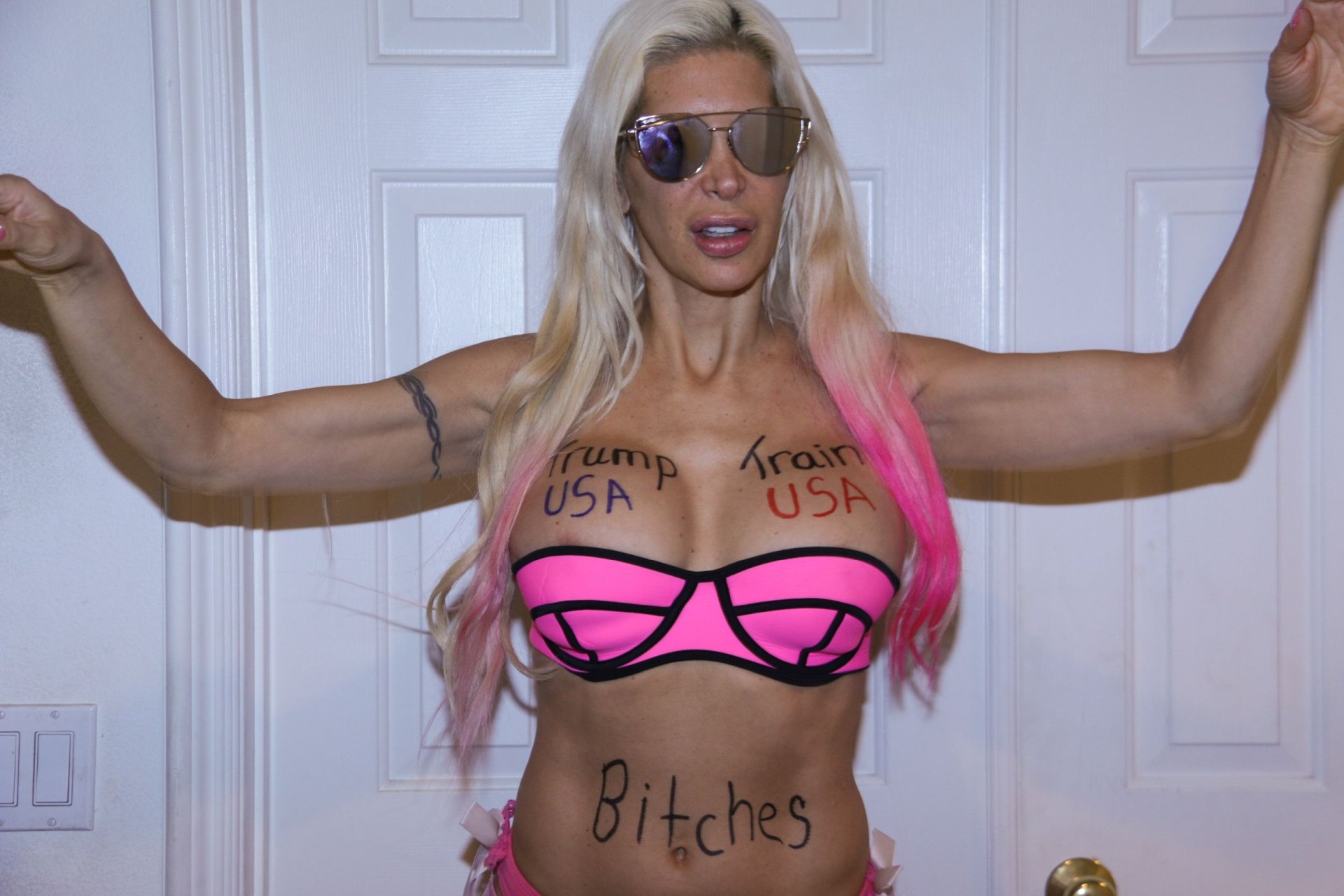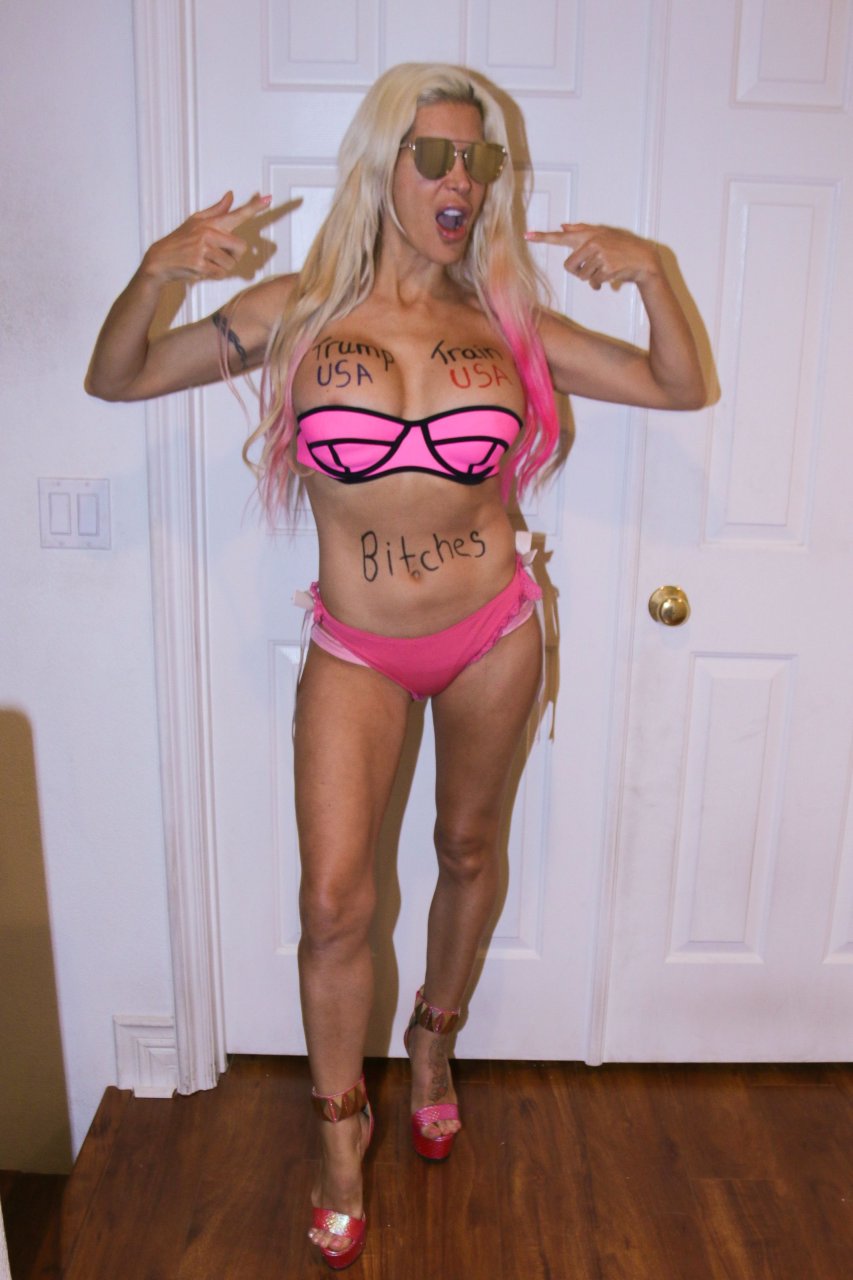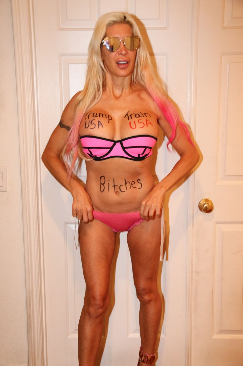 Angelique Morgan porte un bikini rose sexy à Malibu, 11/09/2016. Faux seins pour Trump. Angelique « Frenchy » Morgan est une personnalité française de la télé-réalité, actrice, mannequin et danseuse exotique. Âge : 41 ans (22 septembre 1975).