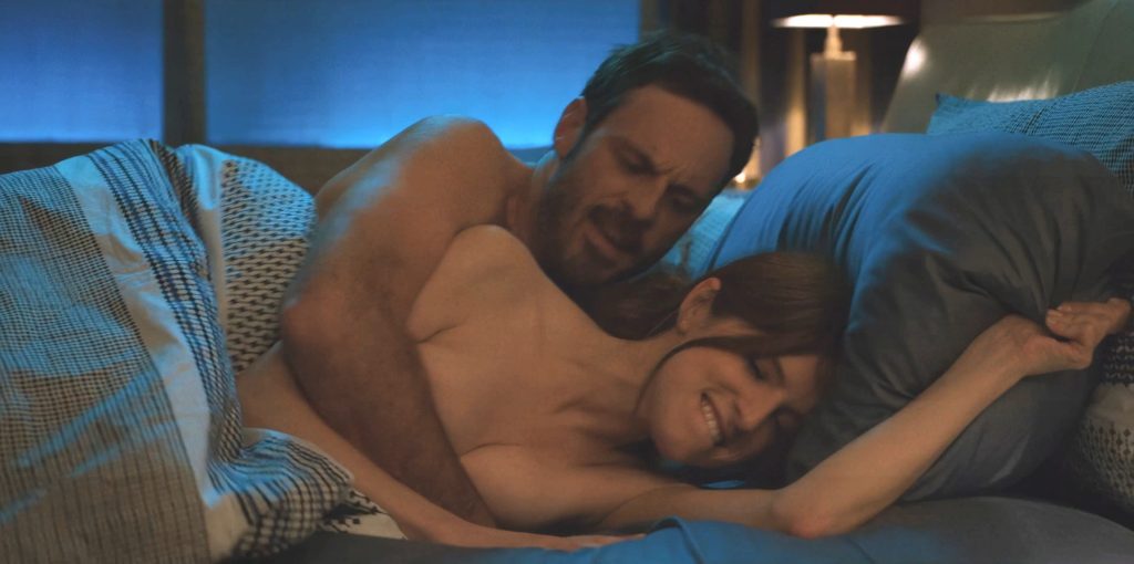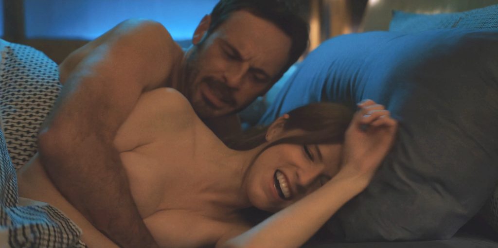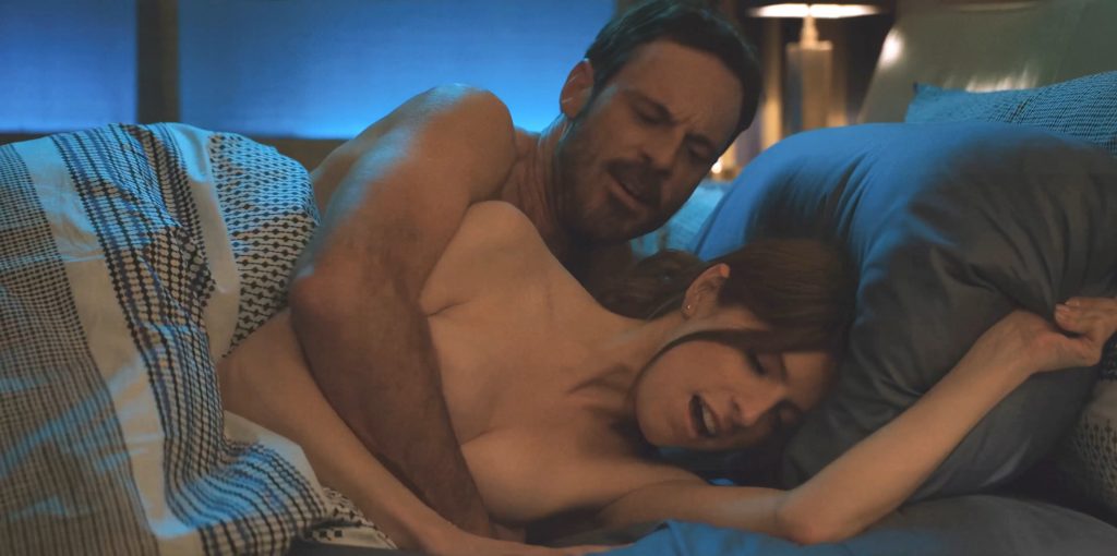 Anna Kendrick est allongée sur le côté dans son lit, montrant un grand décolleté lorsque l’homme derrière elle la serre par la poitrine. Elle et l’homme parlent de manière coquine pendant que l’homme derrière elle fait l’amour avec Kendrick.