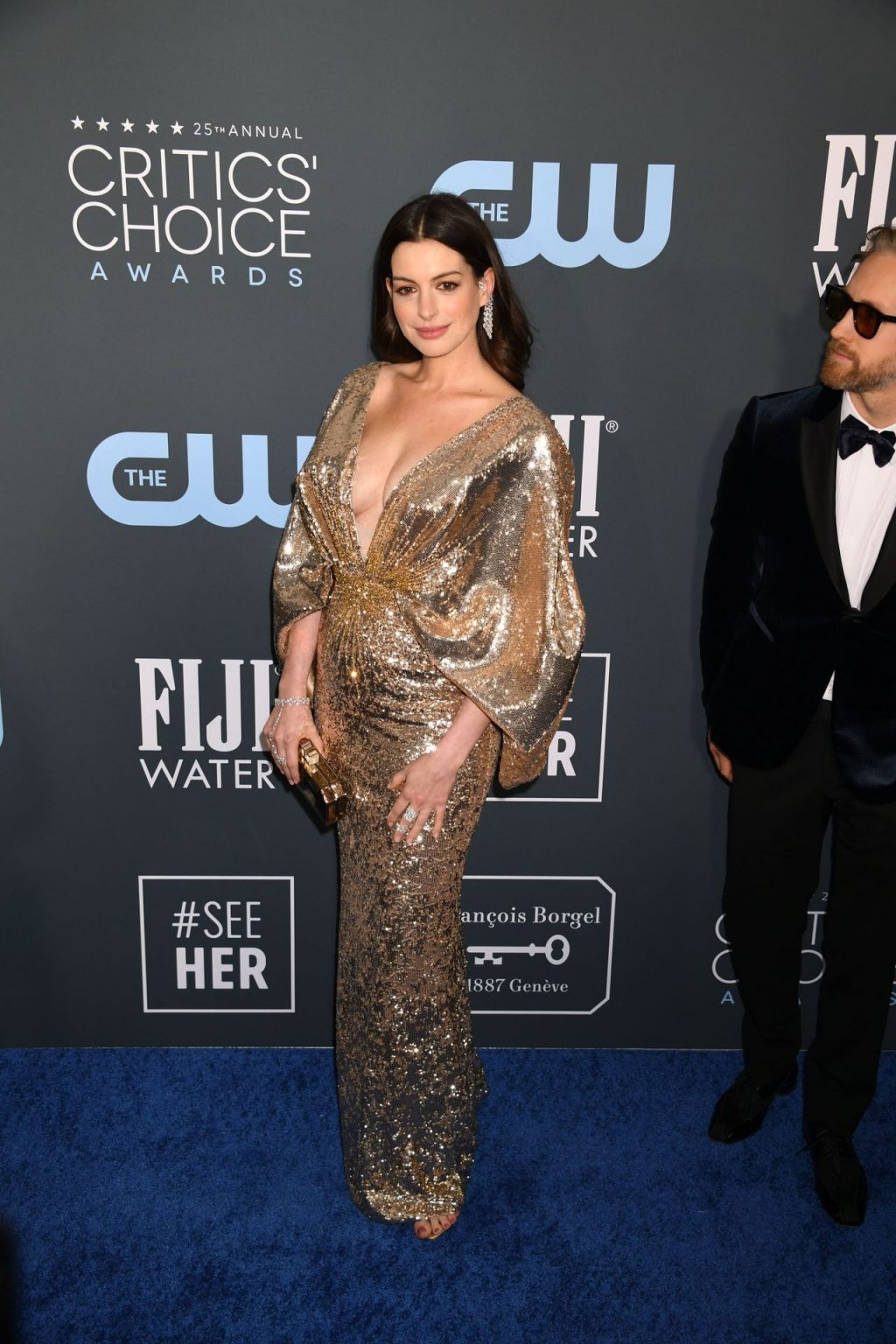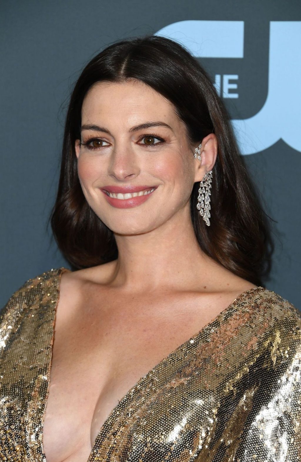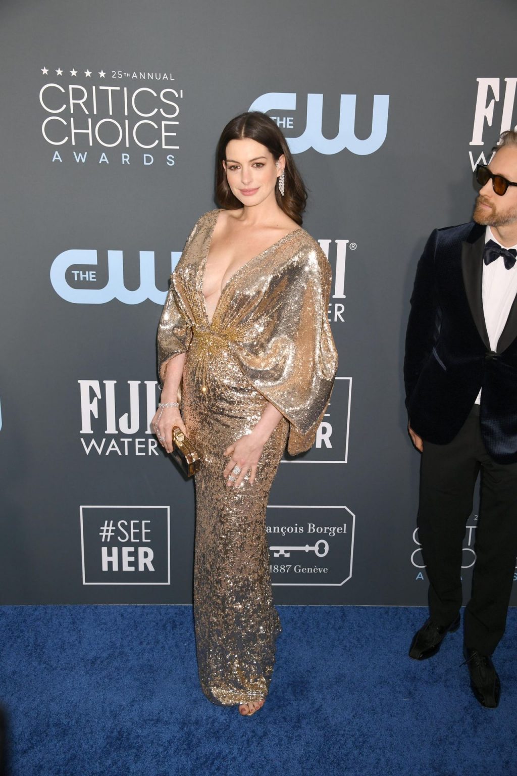 Après avoir eu son deuxième bébé il y a seulement quelques semaines, la star de The Fappening Anne Hathaway est de retour sur le tapis rouge. Et elle le fait, dans tous les sens du terme, brillamment ! L’une des invitées des influents Critics’ Choice Awards à Santa Monica est apparue dans une robe dorée Versace avec un décolleté profond. C’est l’une des meilleures images de l’événement !