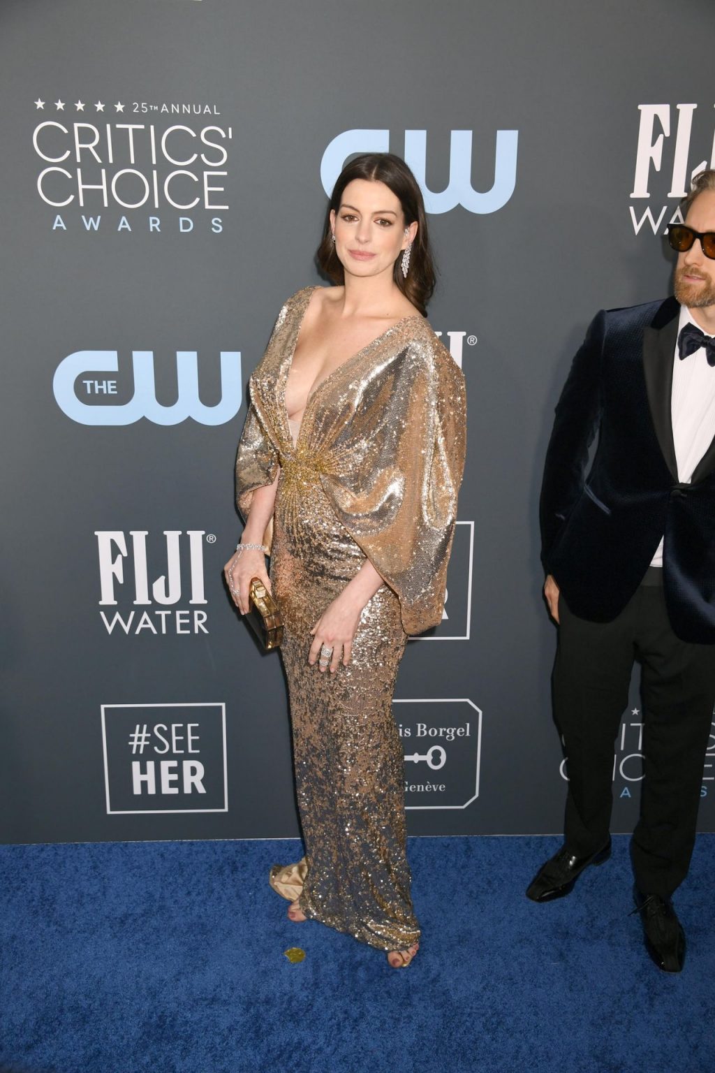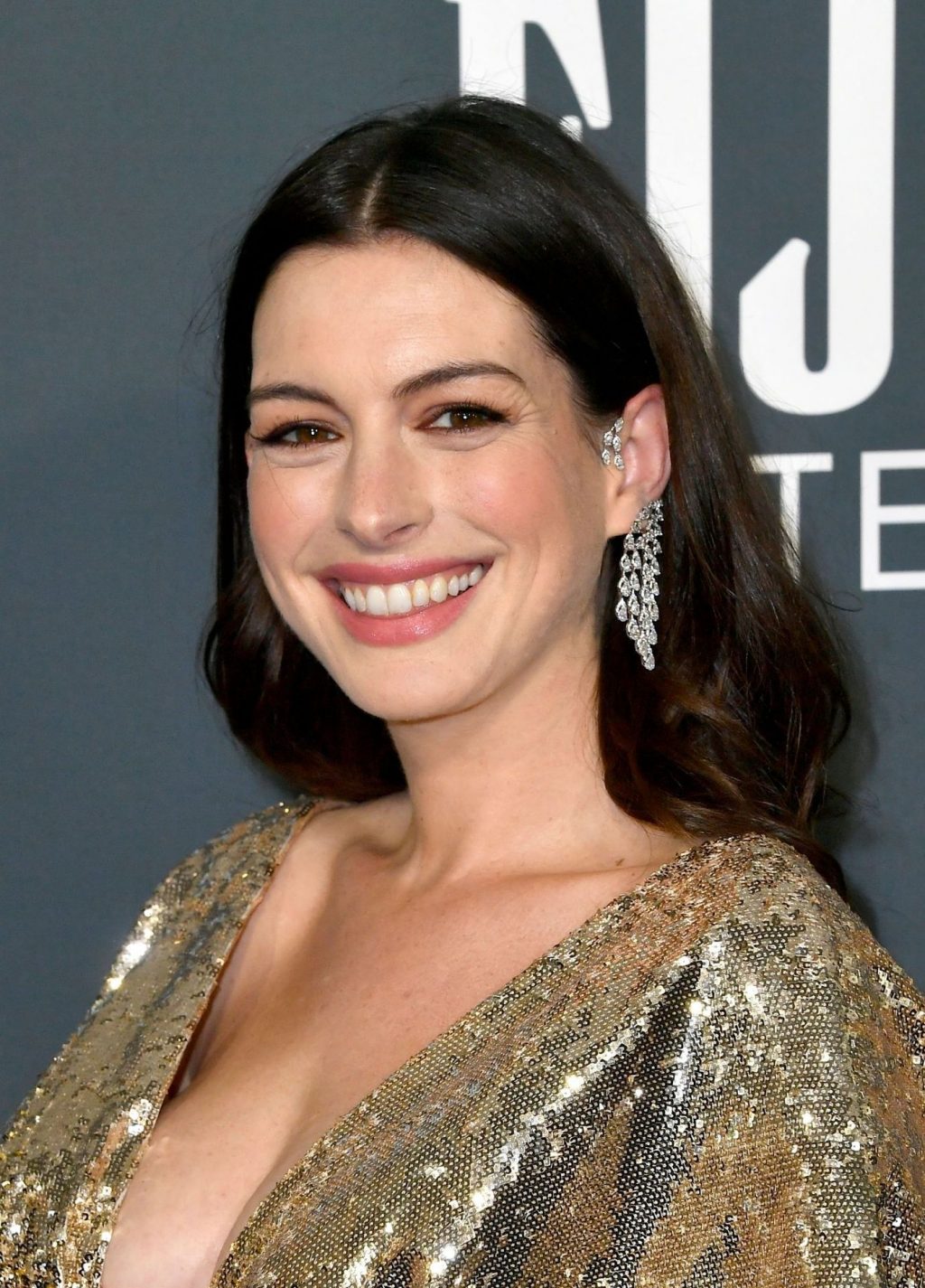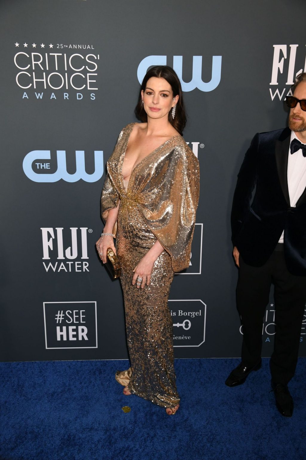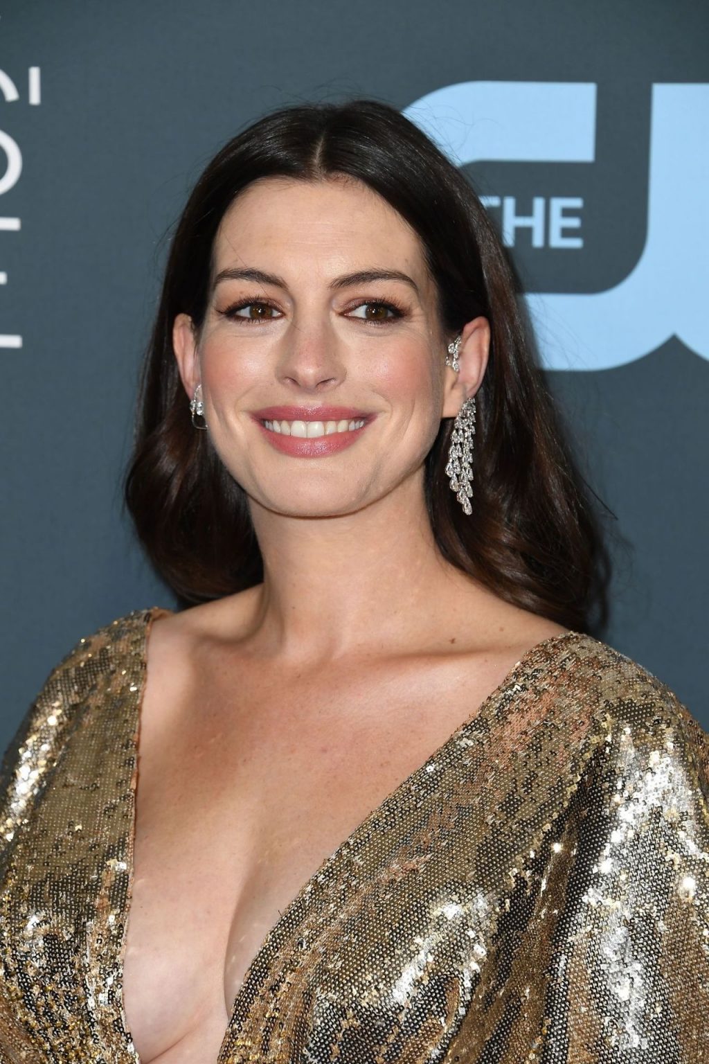Après avoir eu son deuxième bébé il y a seulement quelques semaines, la star de The Fappening Anne Hathaway est de retour sur le tapis rouge. Et elle le fait, dans tous les sens du terme, brillamment ! L’une des invitées des influents Critics’ Choice Awards à Santa Monica est apparue dans une robe dorée Versace avec un décolleté profond. C’est l’une des meilleures images de l’événement !