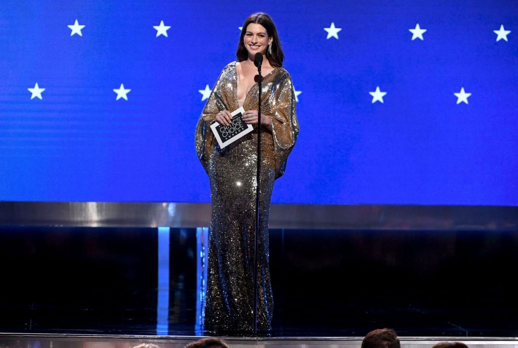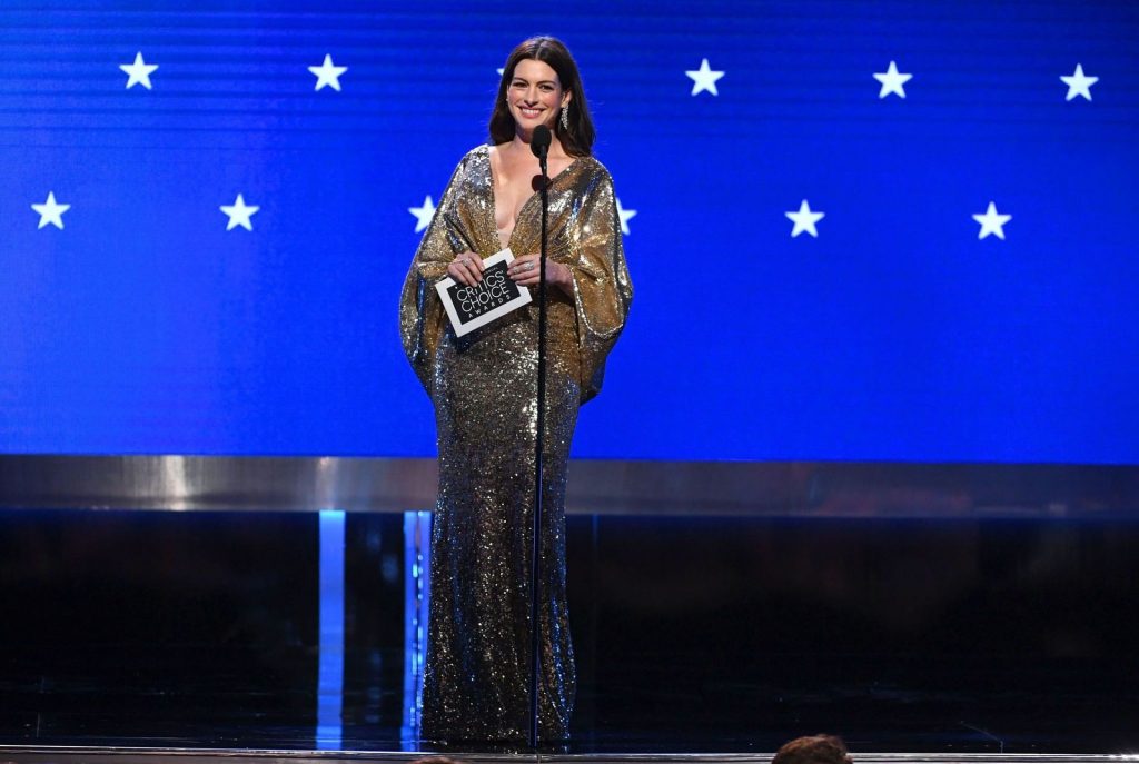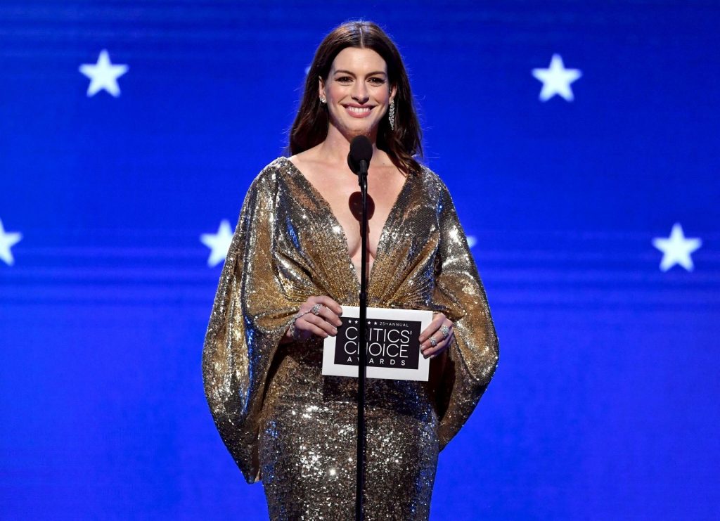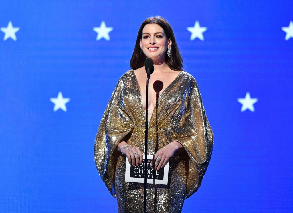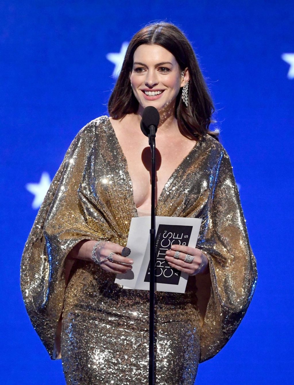 Après avoir eu son deuxième bébé il y a seulement quelques semaines, la star de The Fappening Anne Hathaway est de retour sur le tapis rouge. Et elle le fait, dans tous les sens du terme, brillamment ! L’une des invitées des influents Critics’ Choice Awards à Santa Monica est apparue dans une robe dorée Versace avec un décolleté profond. C’est l’une des meilleures images de l’événement !
