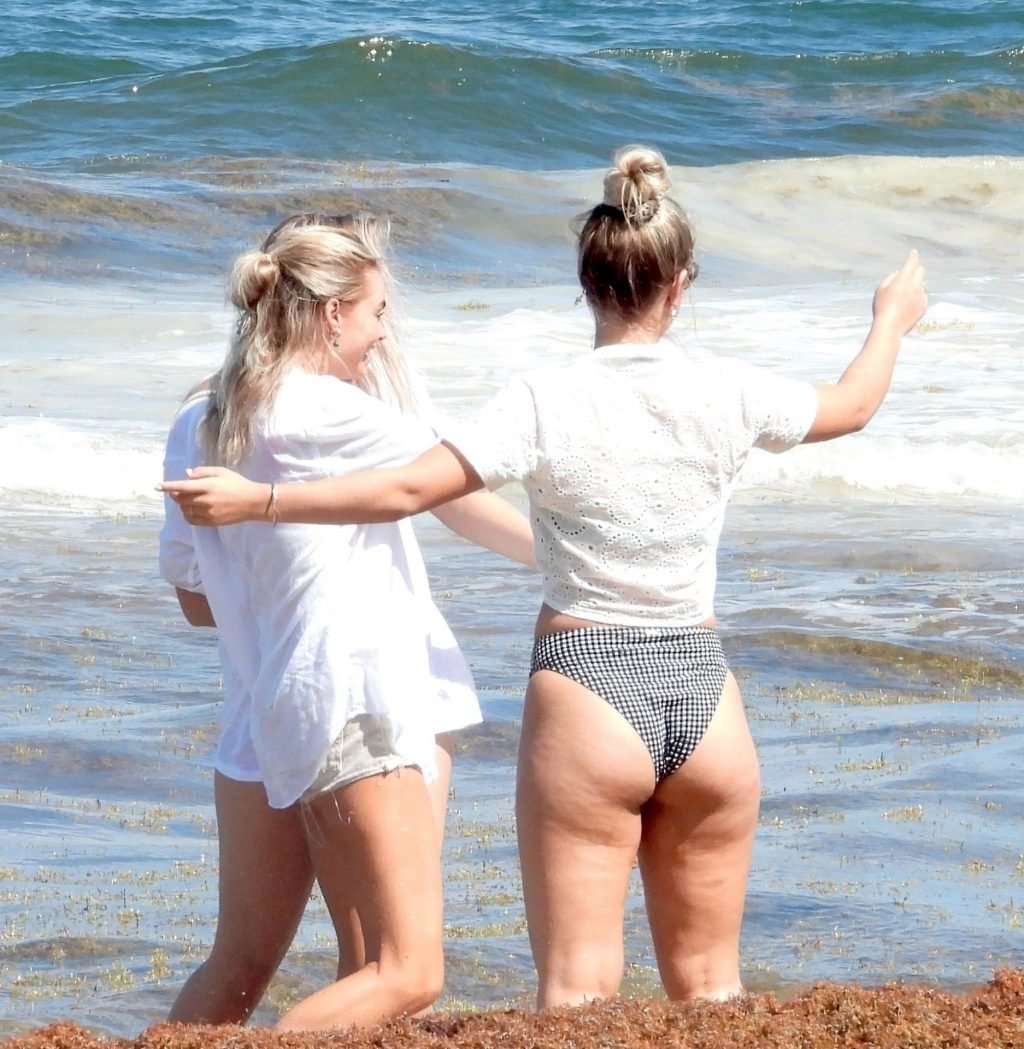 AnneKee Molenaar et Mikky Kiemeney font partie d’un groupe de mannequins sur la plage de Tulum réalisant une séance photo pour Catarina Martina Shoes, le 31/05/2019. On pouvait voir les mannequins faire du vélo puis jouer dans l’océan, tout cela dans le cadre de la séance d’été amusante et à thème plage. Molenaar et Kiemeney sont les compagnes des joueurs de football de l’Ajax Matthijs de Ligt et Frankie de Jong.