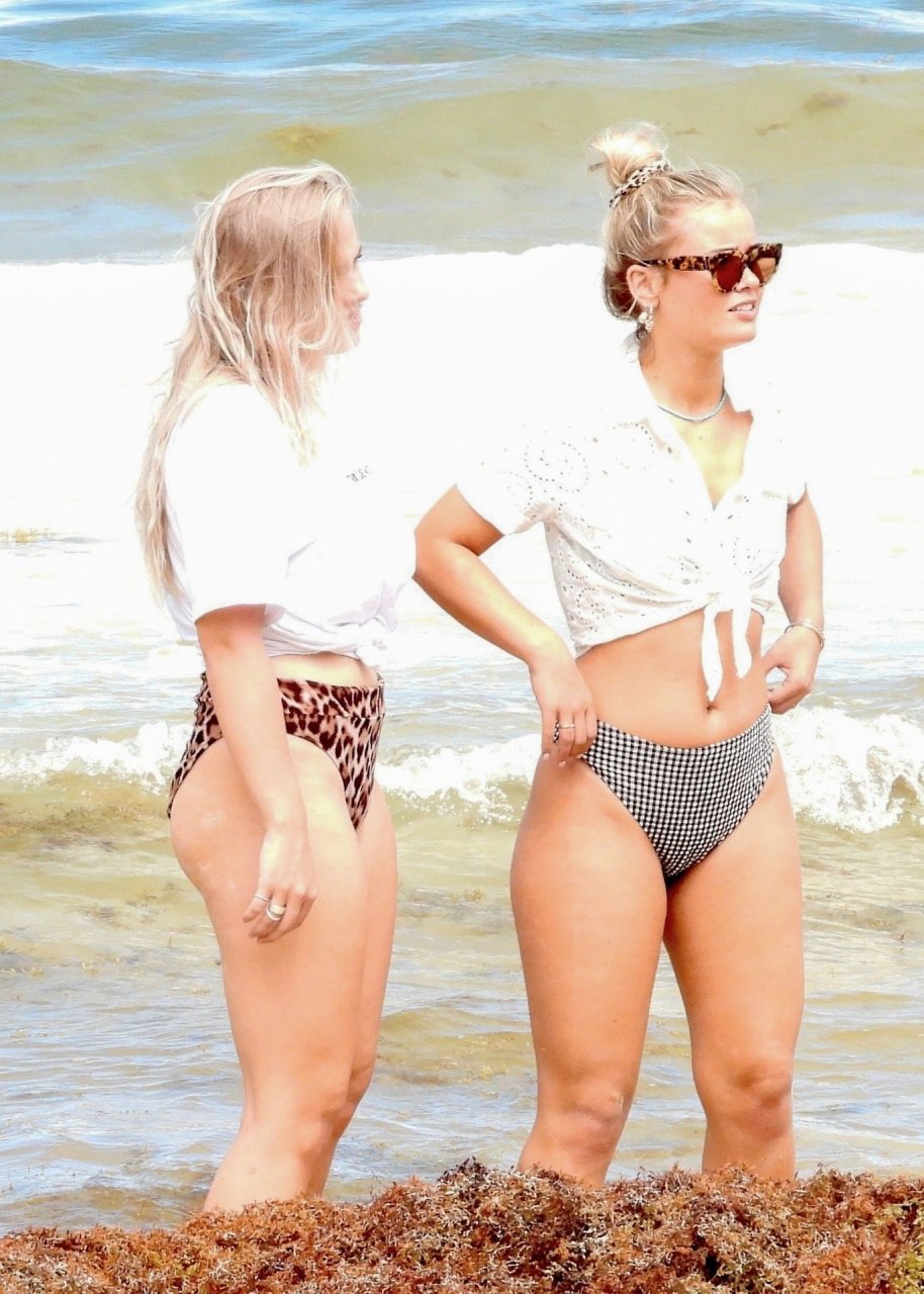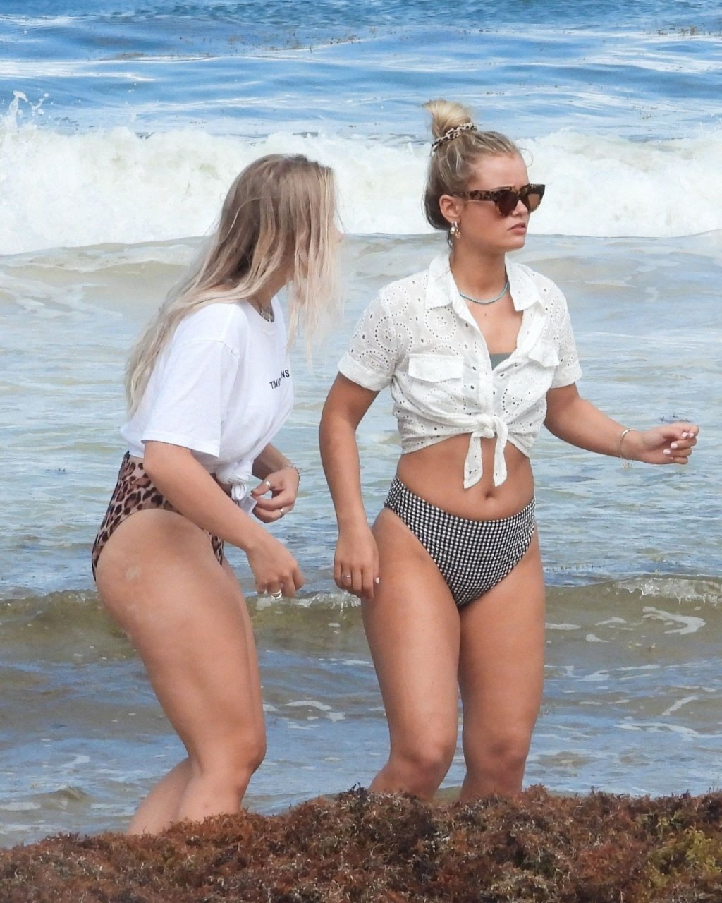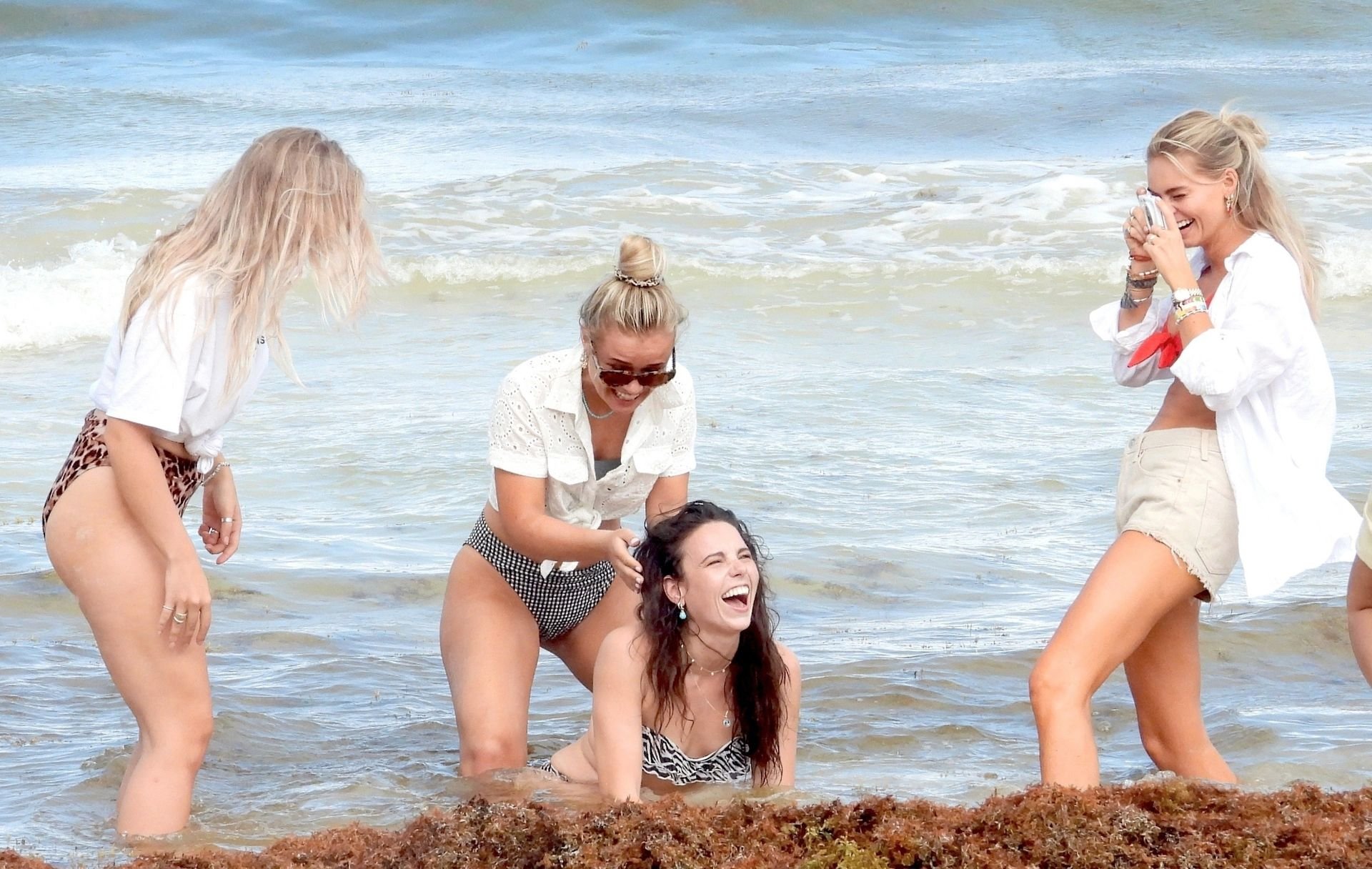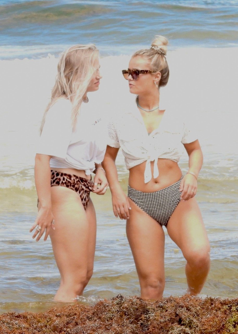 AnneKee Molenaar et Mikky Kiemeney font partie d’un groupe de mannequins sur la plage de Tulum réalisant une séance photo pour Catarina Martina Shoes, le 31/05/2019. On pouvait voir les mannequins faire du vélo puis jouer dans l’océan, tout cela dans le cadre de la séance d’été amusante et à thème plage. Molenaar et Kiemeney sont les compagnes des joueurs de football de l’Ajax Matthijs de Ligt et Frankie de Jong.