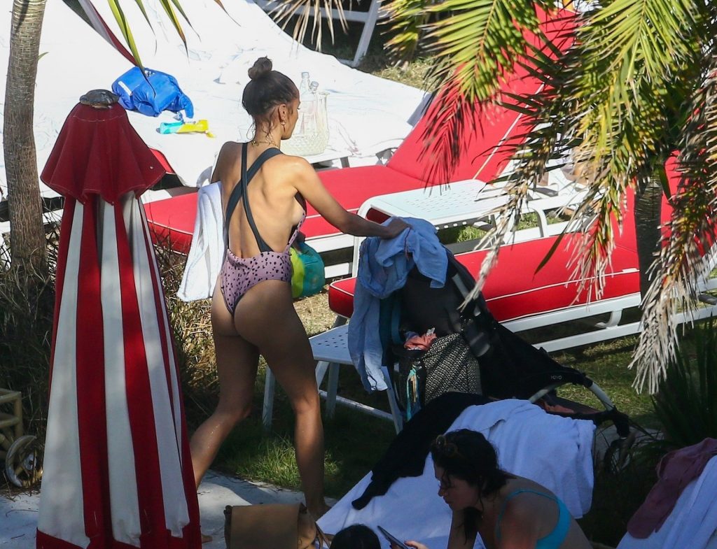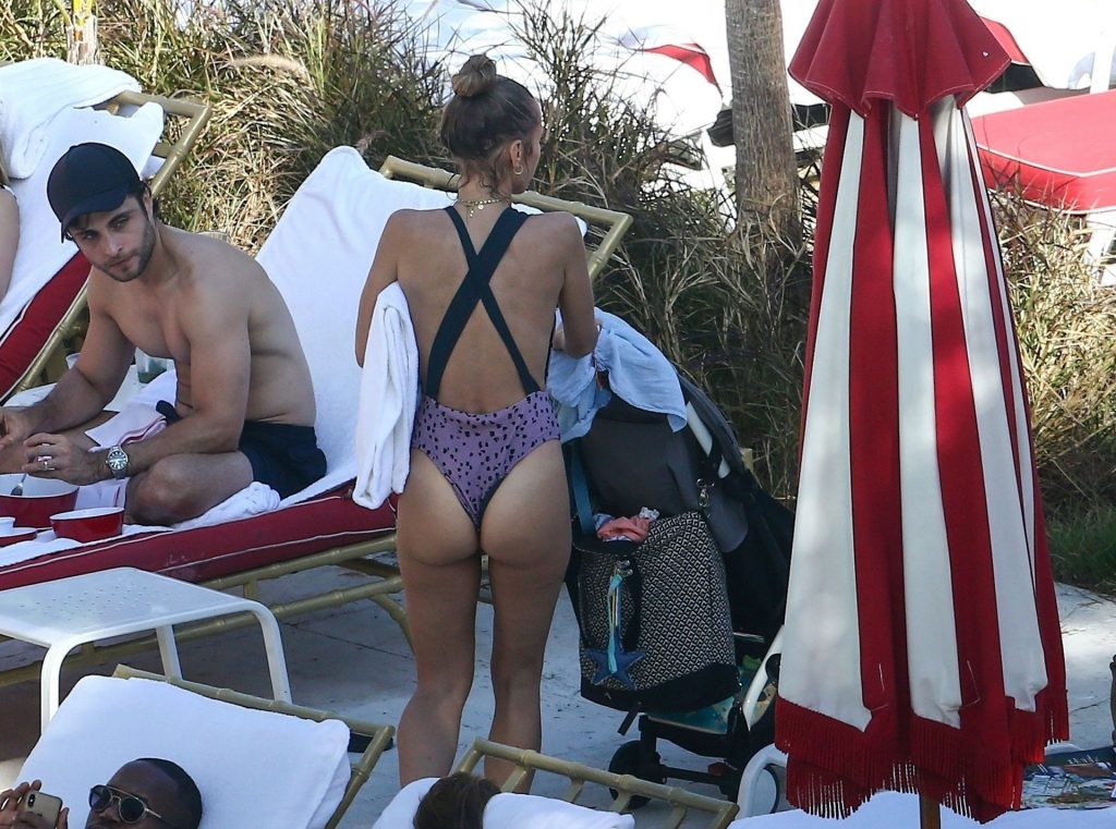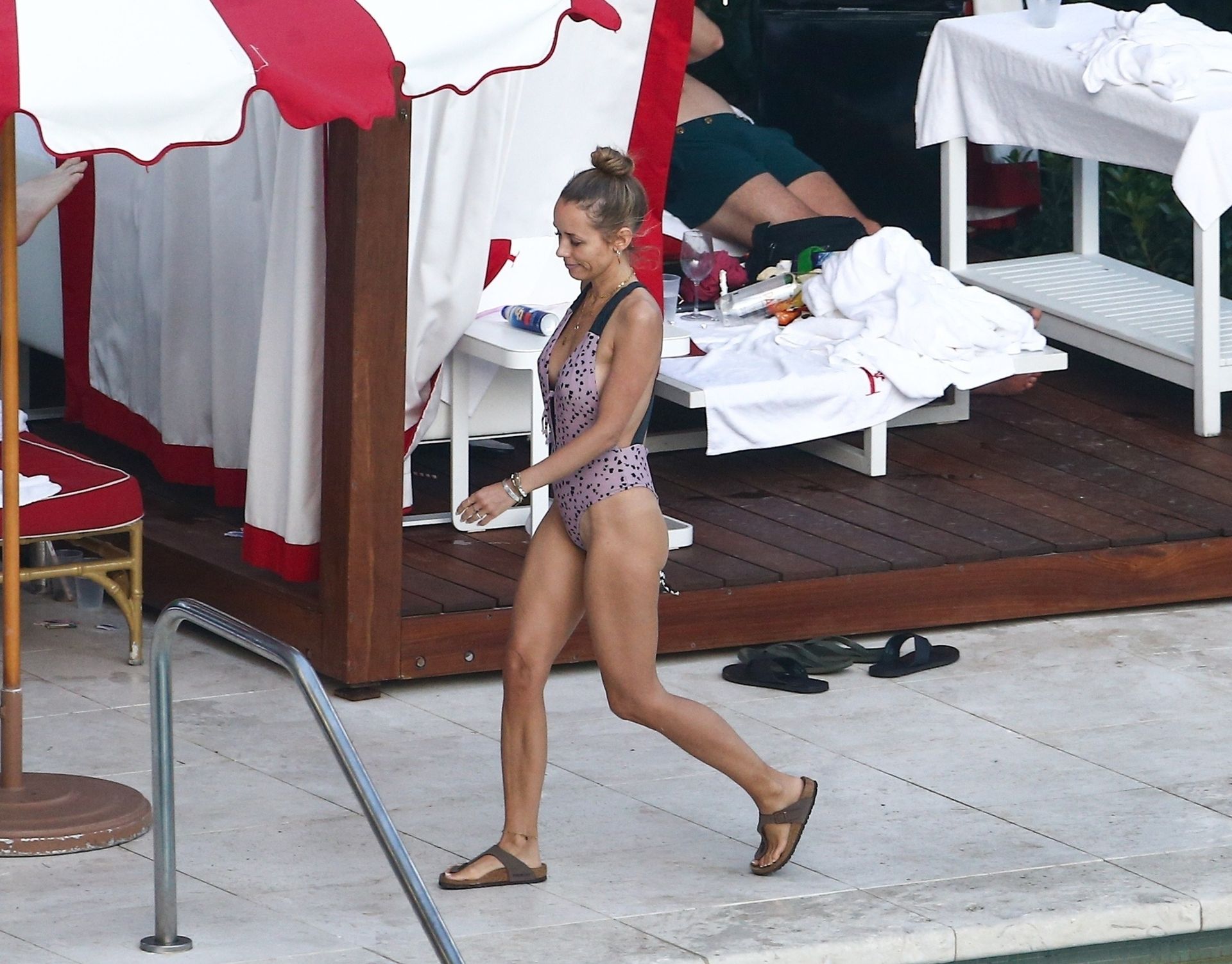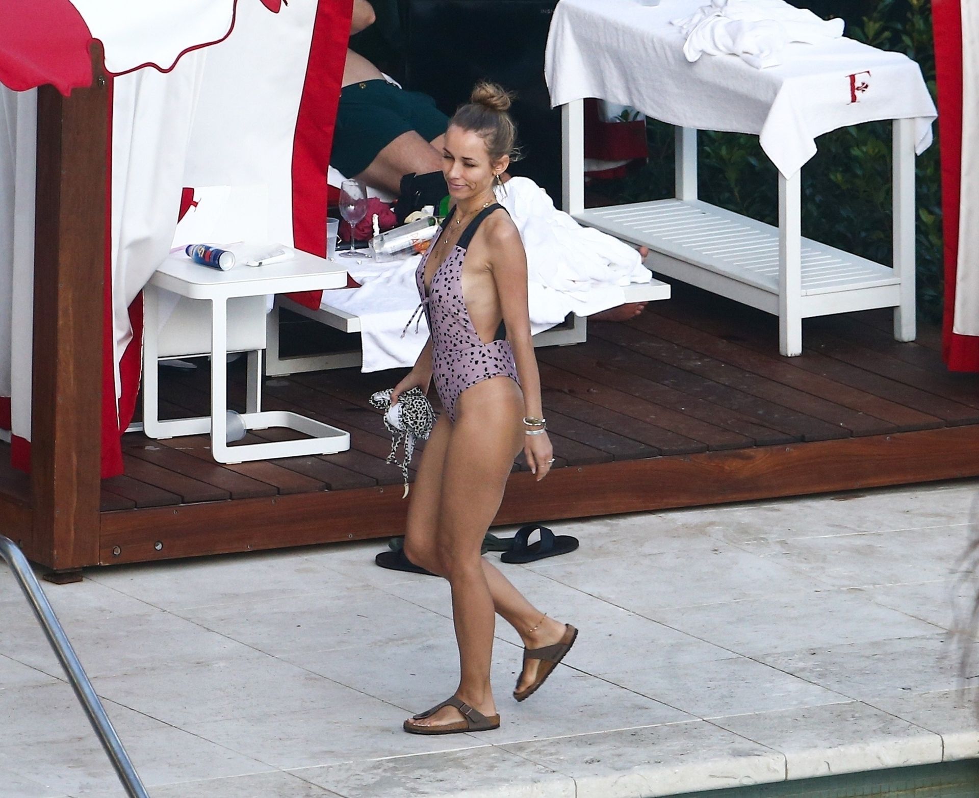 La présentatrice de télévision allemande en forme Annemarie Carpendale et son mari acteur Wayne Carpendale profitent de leurs vacances à la piscine de l’hôtel à Miami Beach, 01/03/2020.