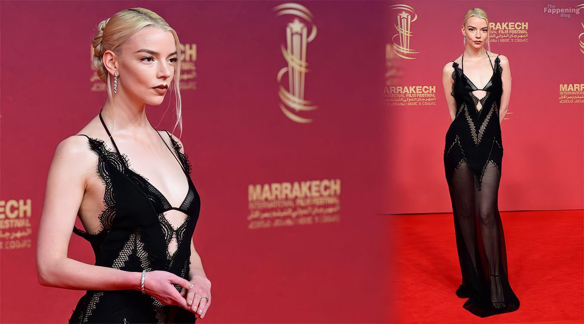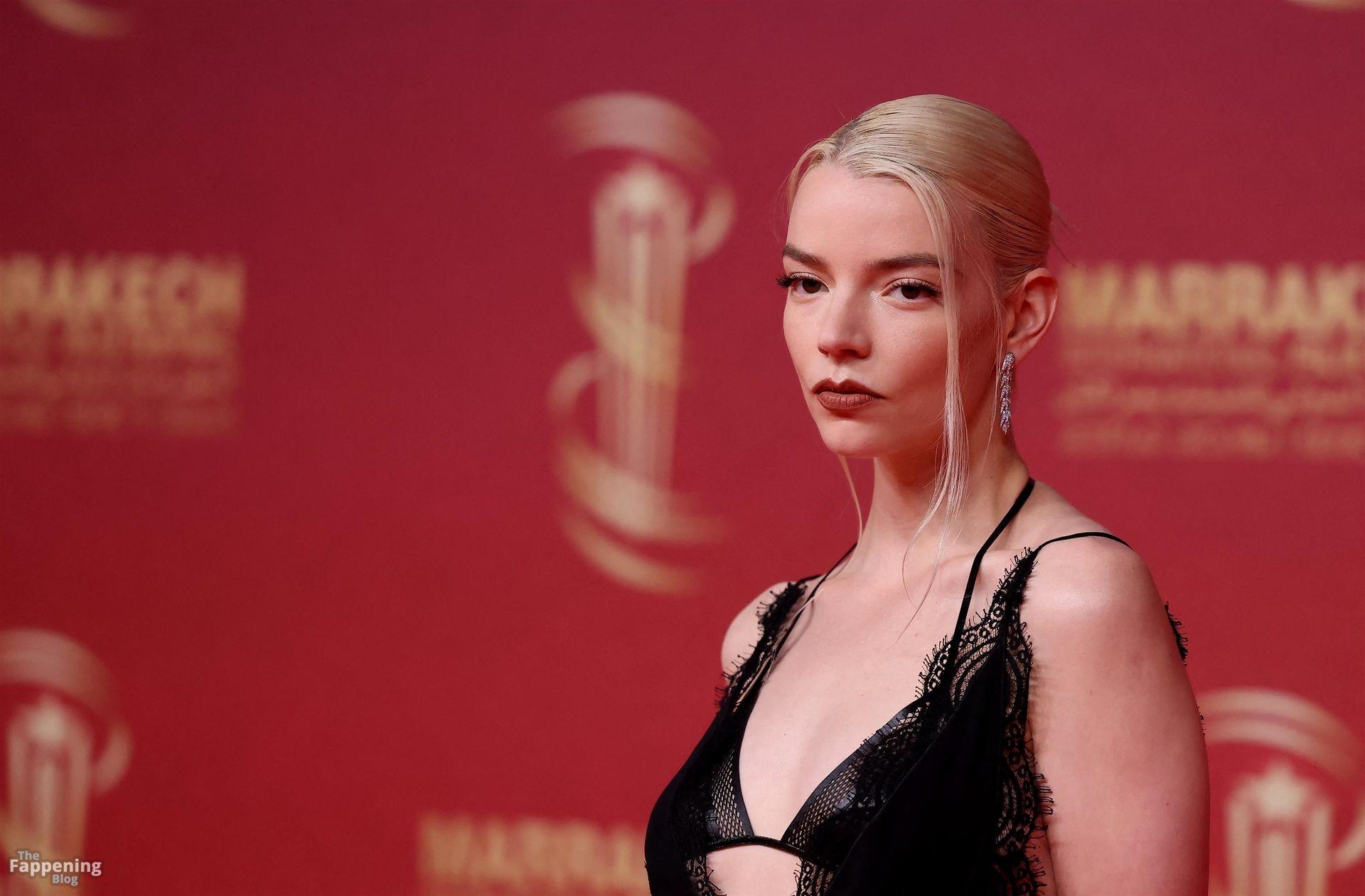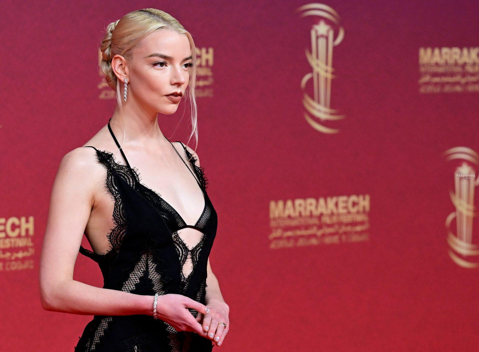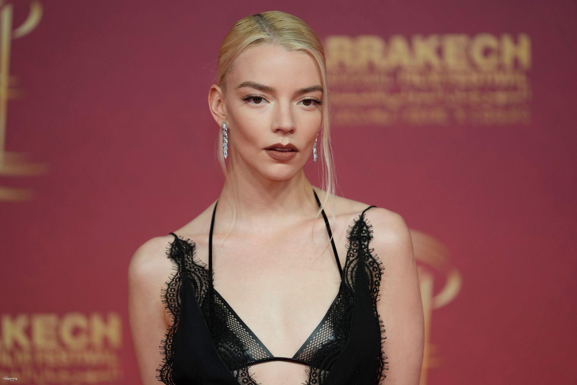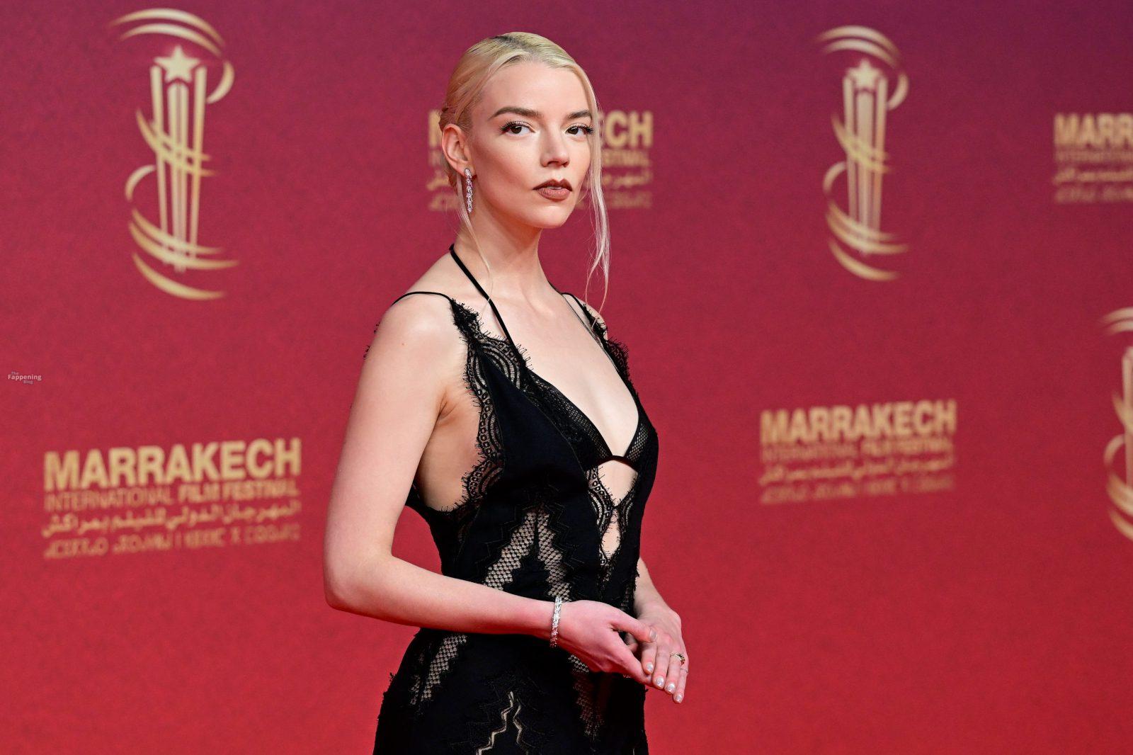 L’actrice américaine Anya Taylor-Joy pose dans une robe en dentelle transparente laissant voir ses jambes sur le tapis rouge alors qu’elle arrive pour la cérémonie de clôture du 22e Festival du Film de Marrakech (FIFM) à Marrakech.