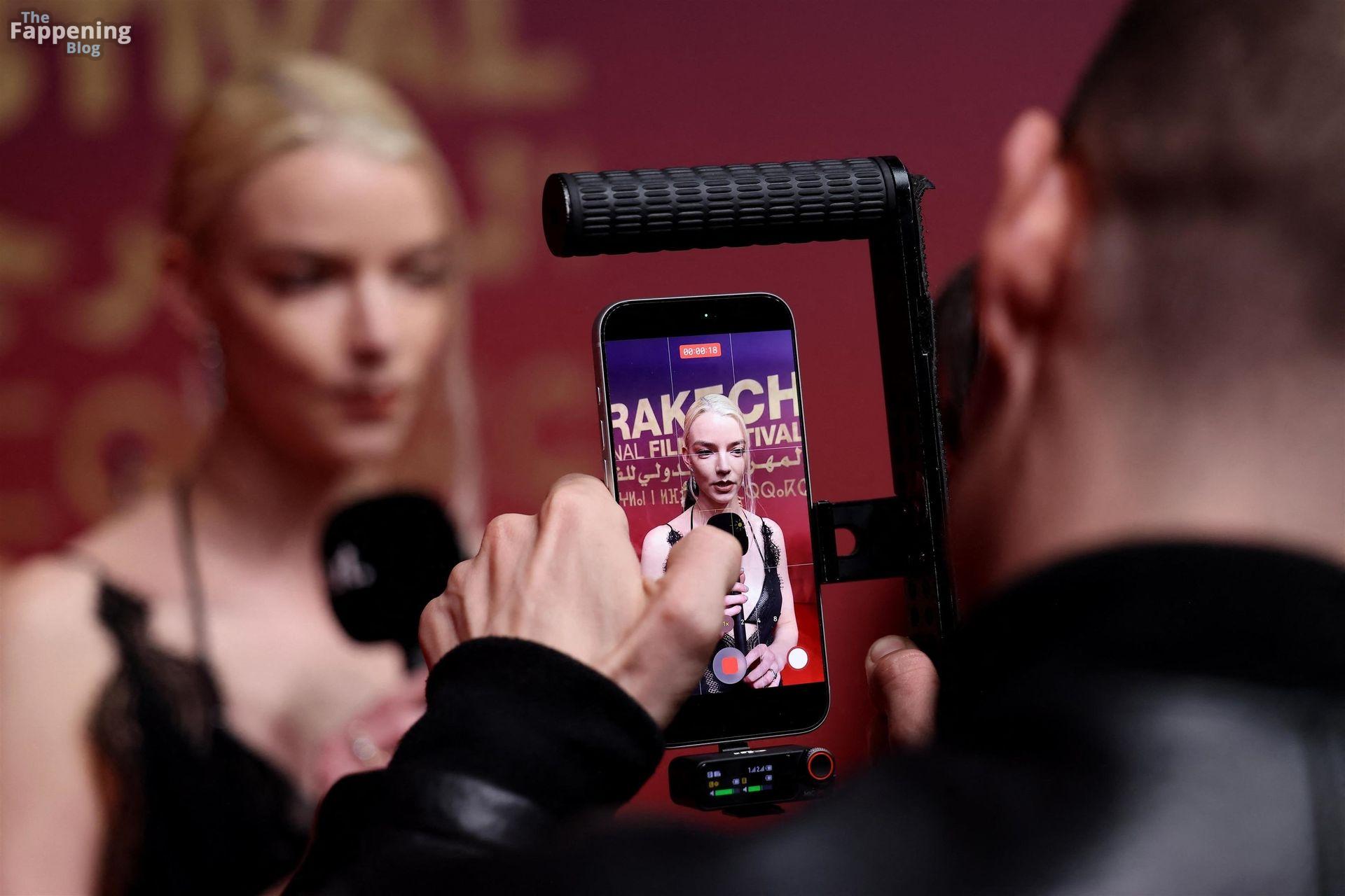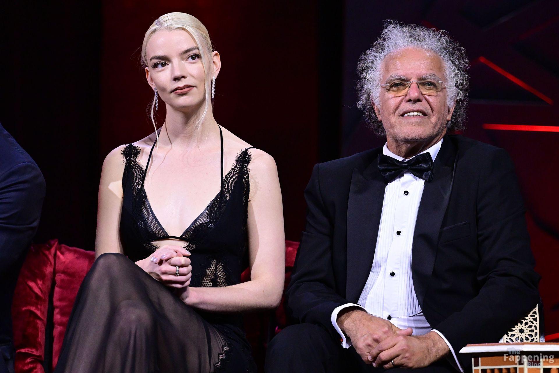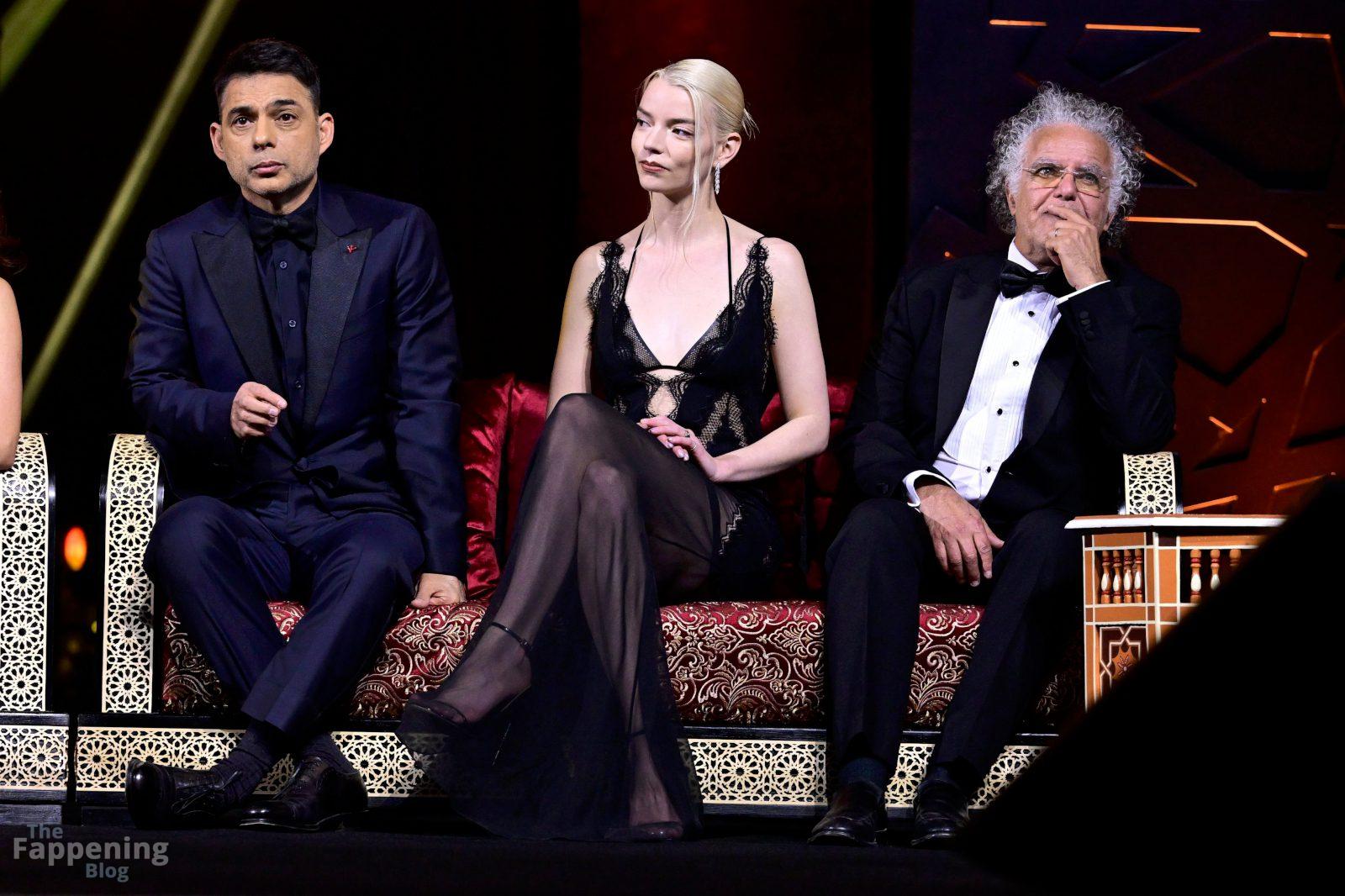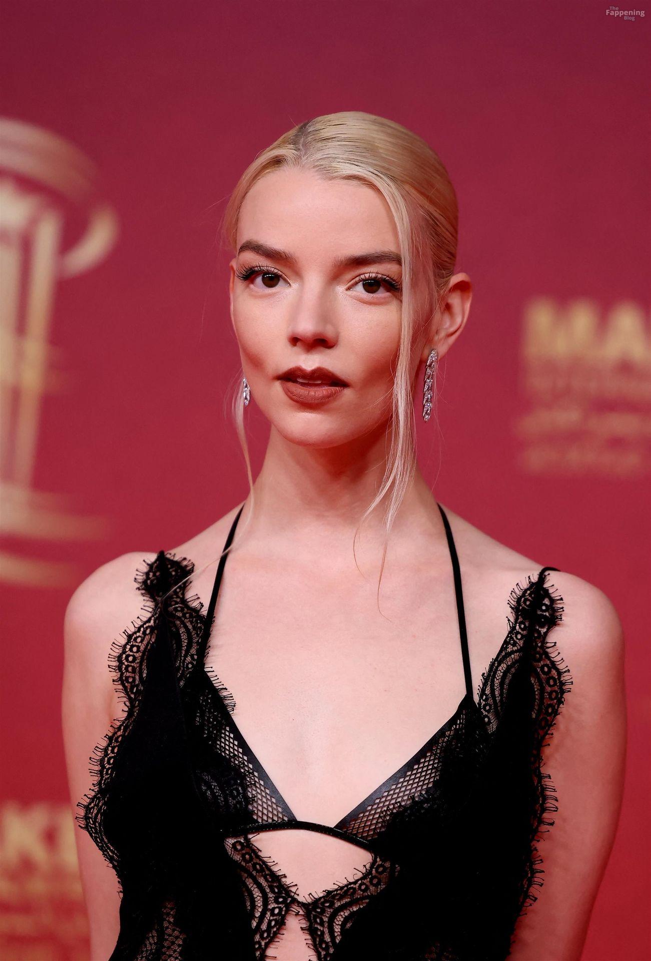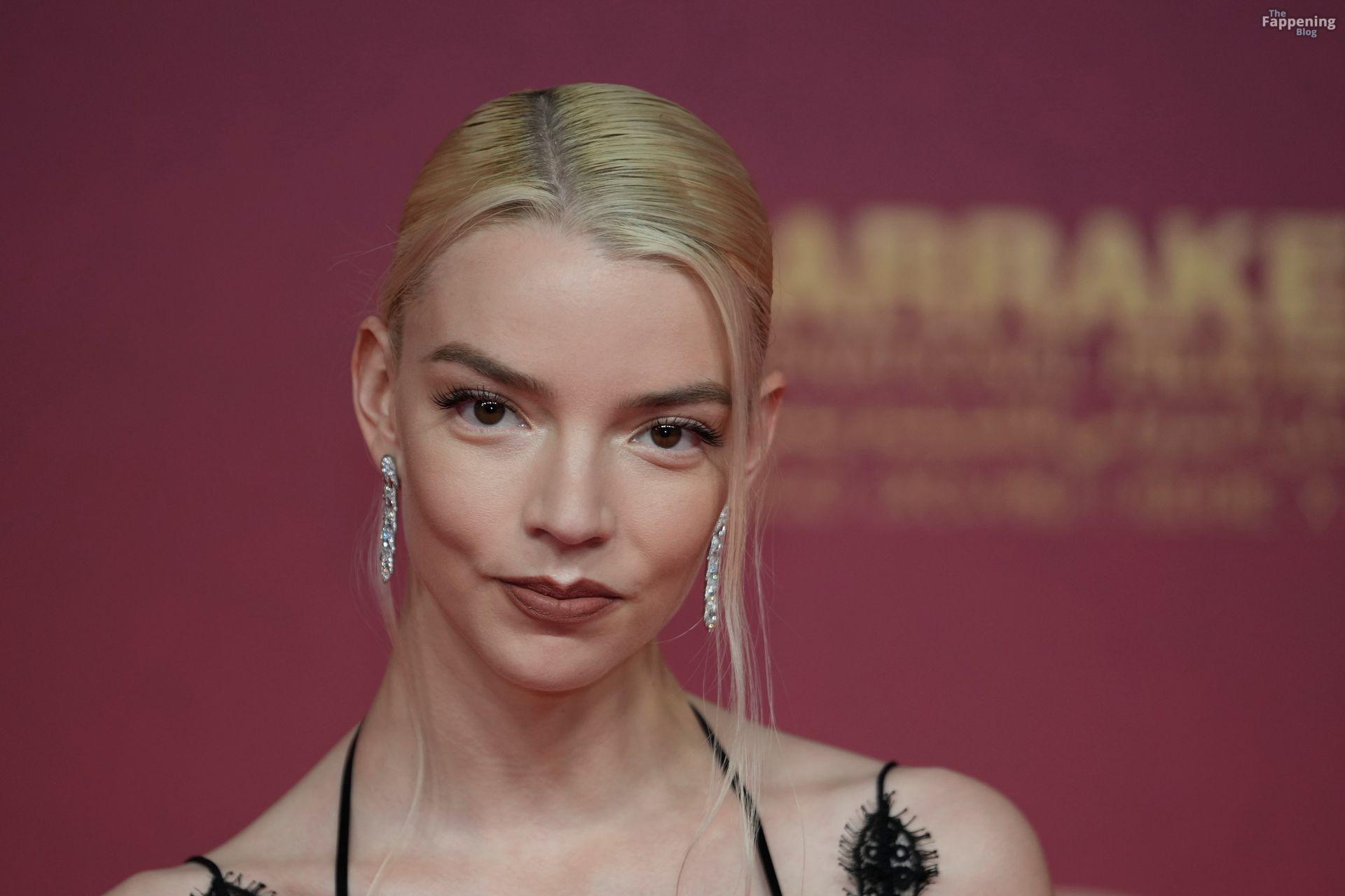 L’actrice américaine Anya Taylor-Joy pose dans une robe en dentelle transparente laissant voir ses jambes sur le tapis rouge alors qu’elle arrive pour la cérémonie de clôture du 22e Festival du Film de Marrakech (FIFM) à Marrakech.