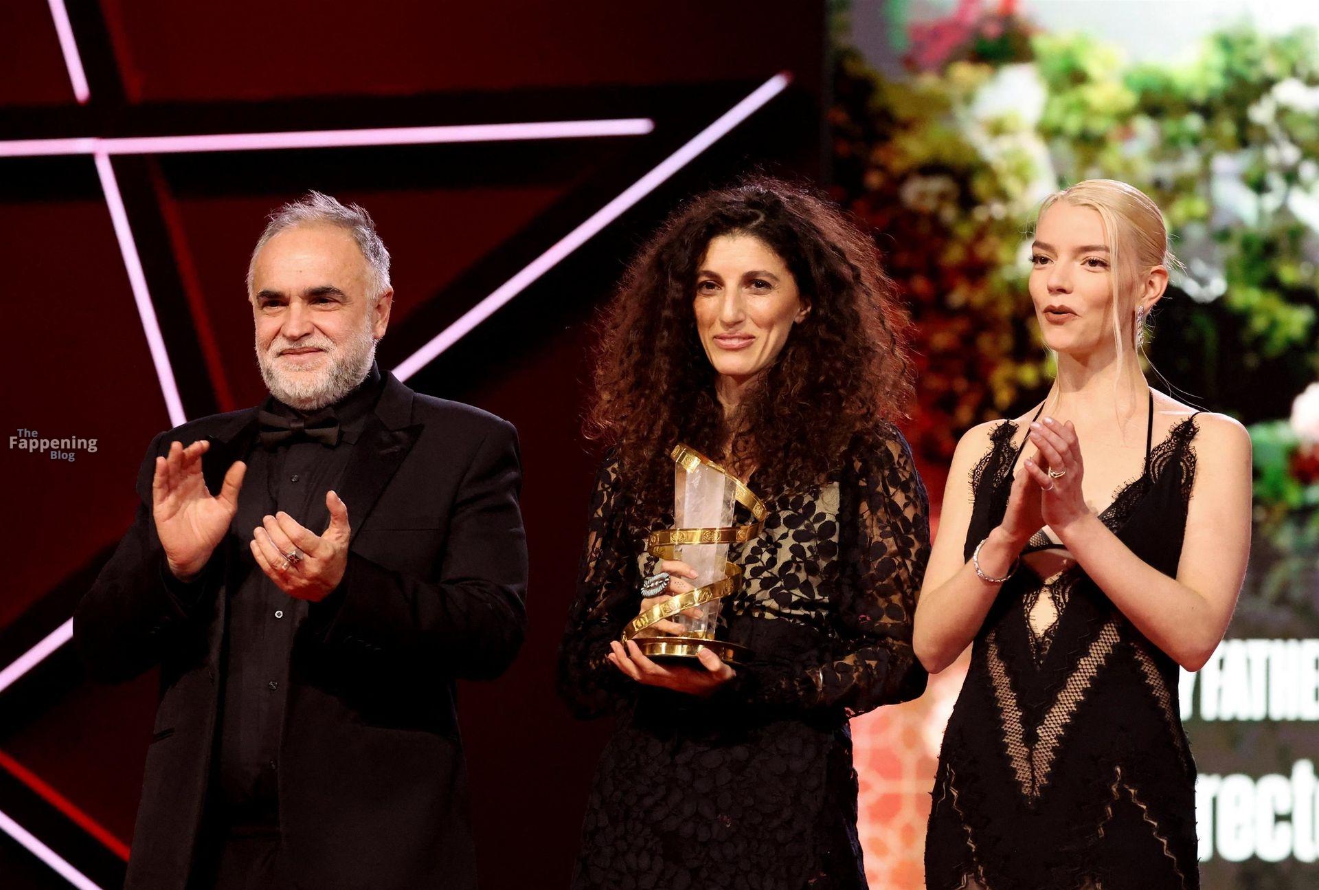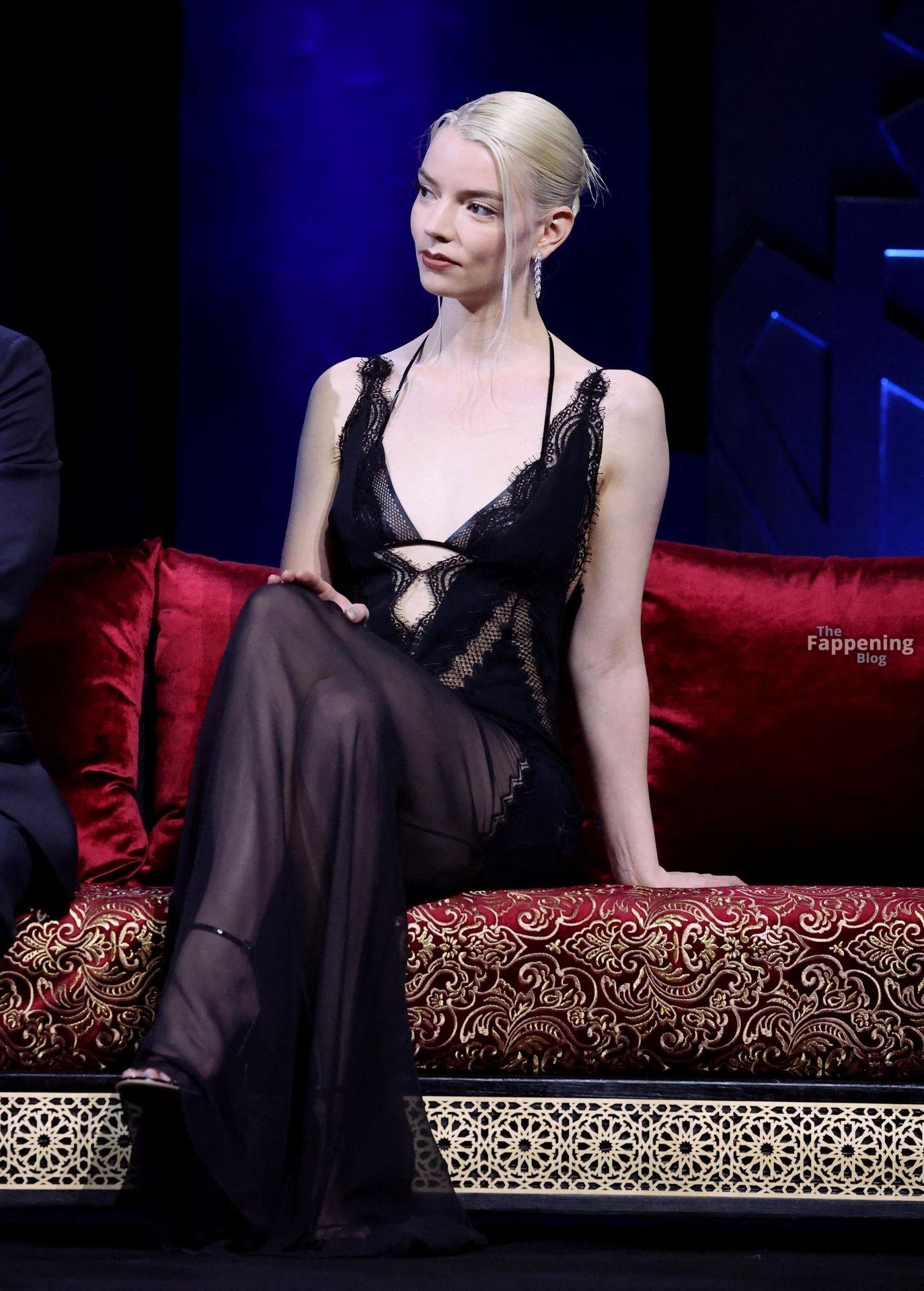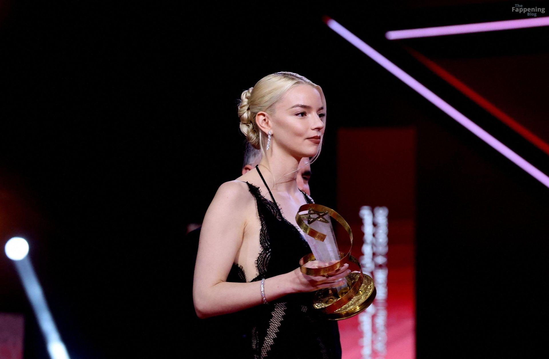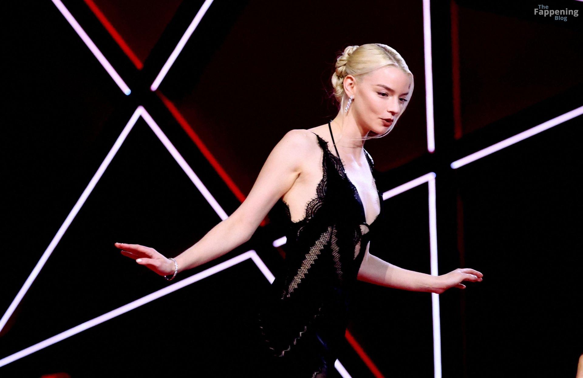 L’actrice américaine Anya Taylor-Joy pose dans une robe en dentelle transparente laissant voir ses jambes sur le tapis rouge alors qu’elle arrive pour la cérémonie de clôture du 22e Festival du Film de Marrakech (FIFM) à Marrakech.