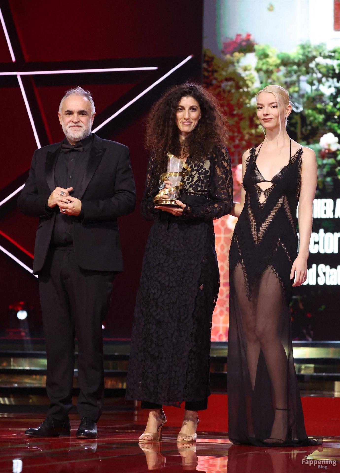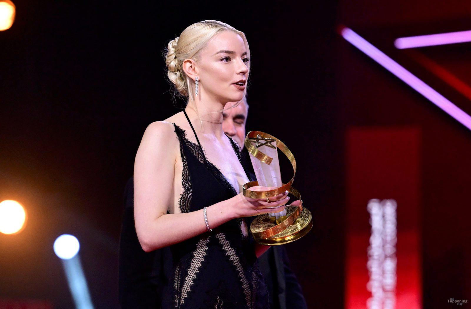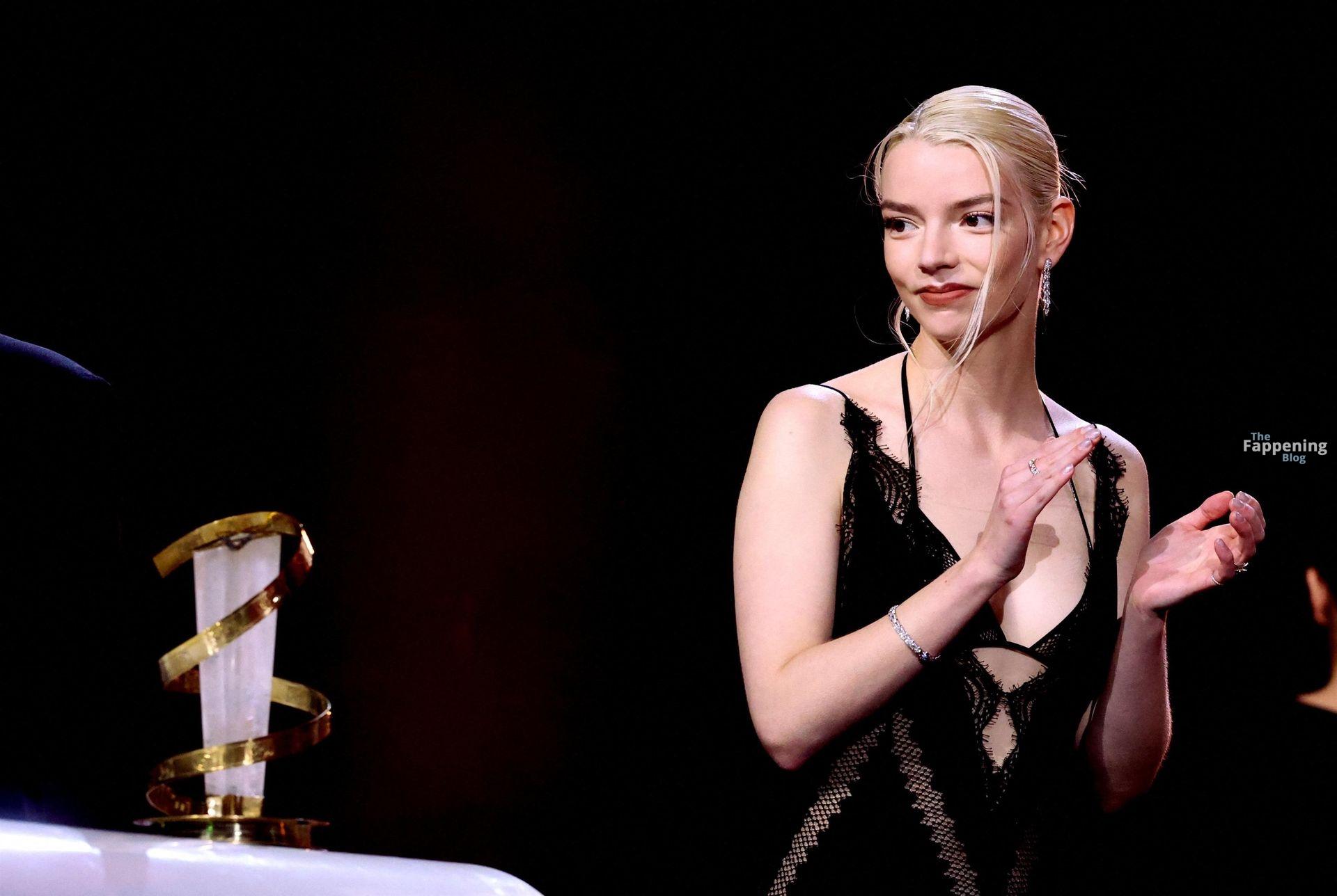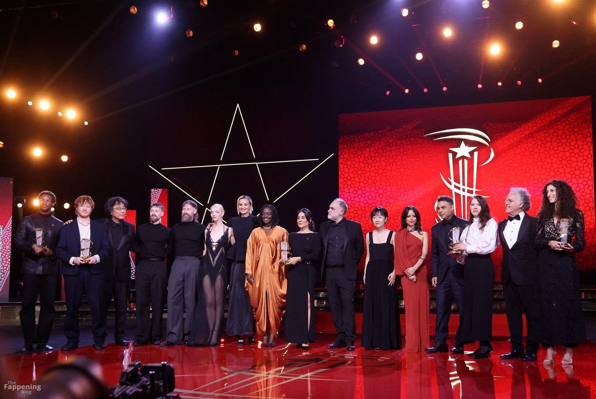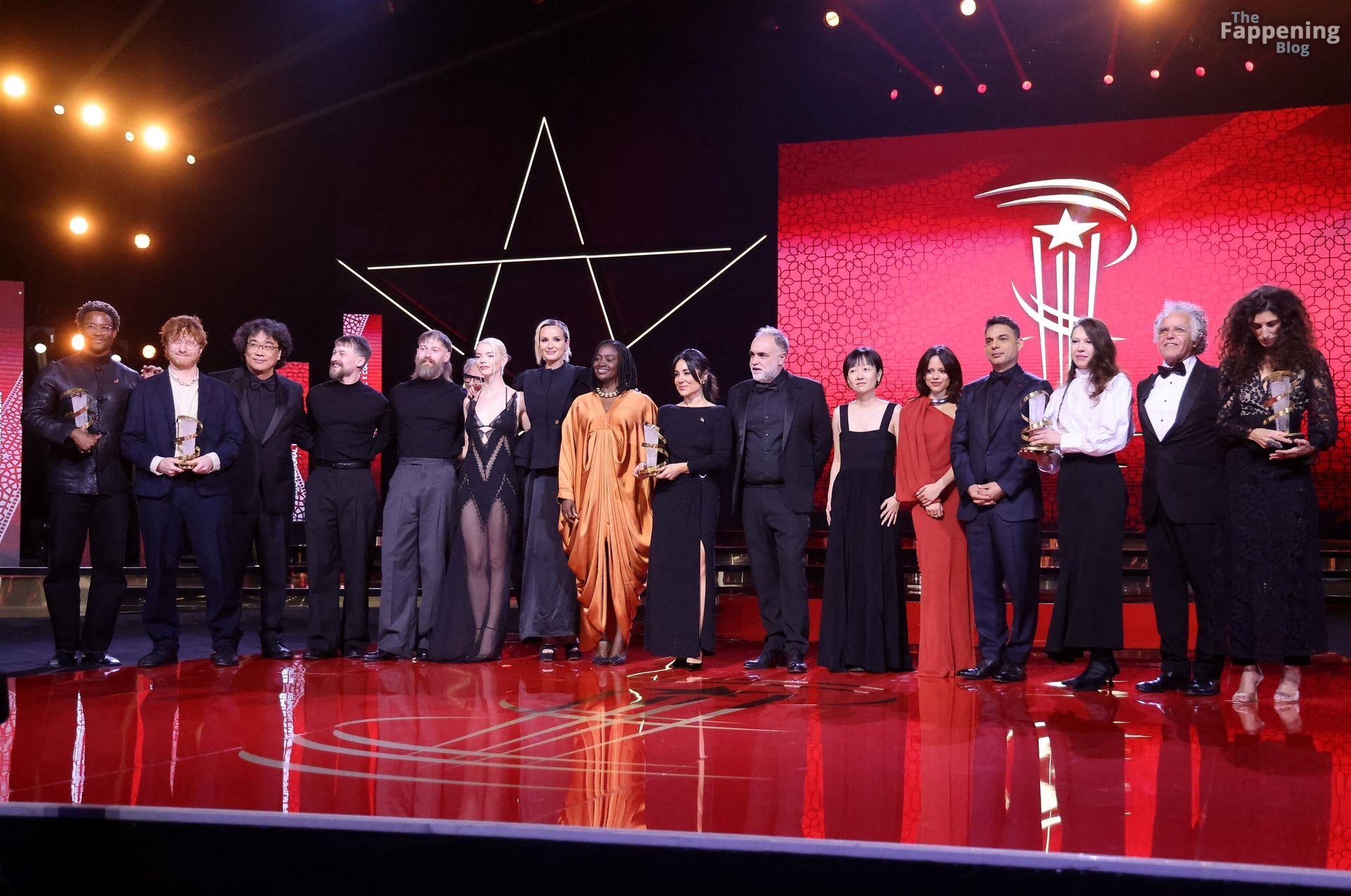 L’actrice américaine Anya Taylor-Joy pose dans une robe en dentelle transparente laissant voir ses jambes sur le tapis rouge alors qu’elle arrive pour la cérémonie de clôture du 22e Festival du Film de Marrakech (FIFM) à Marrakech.