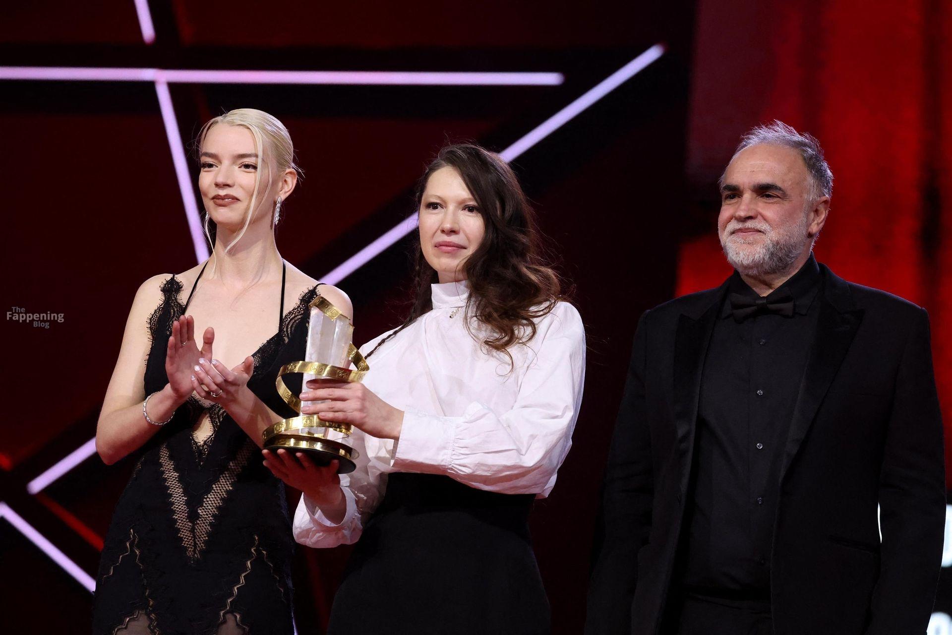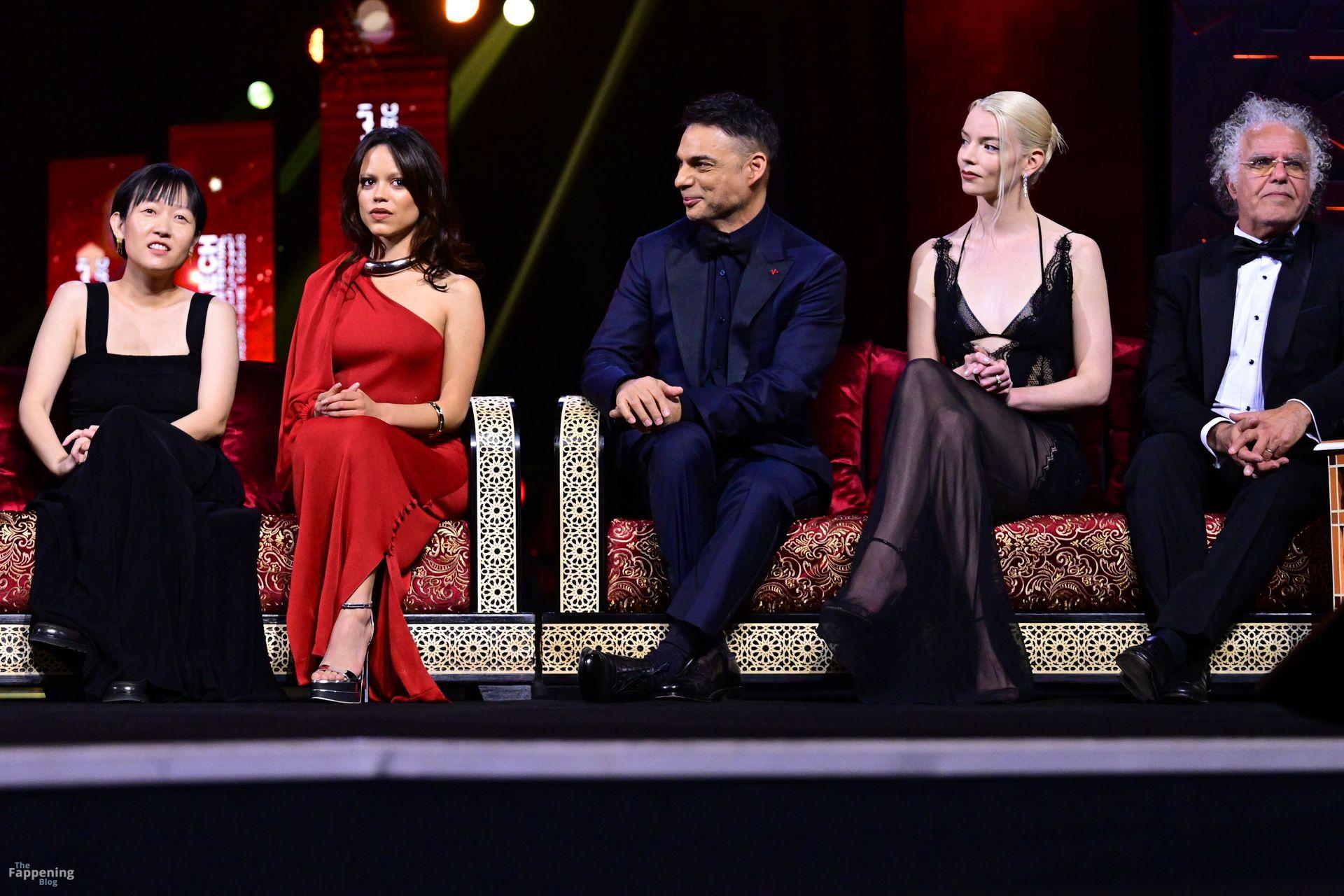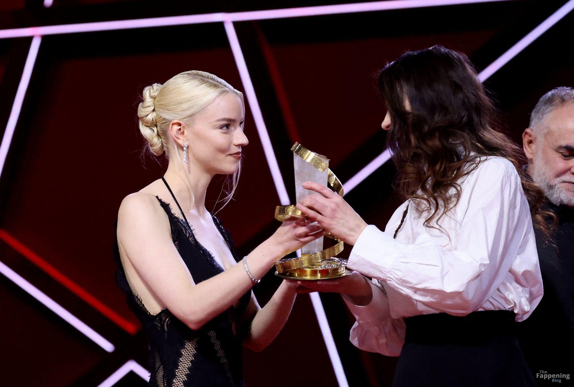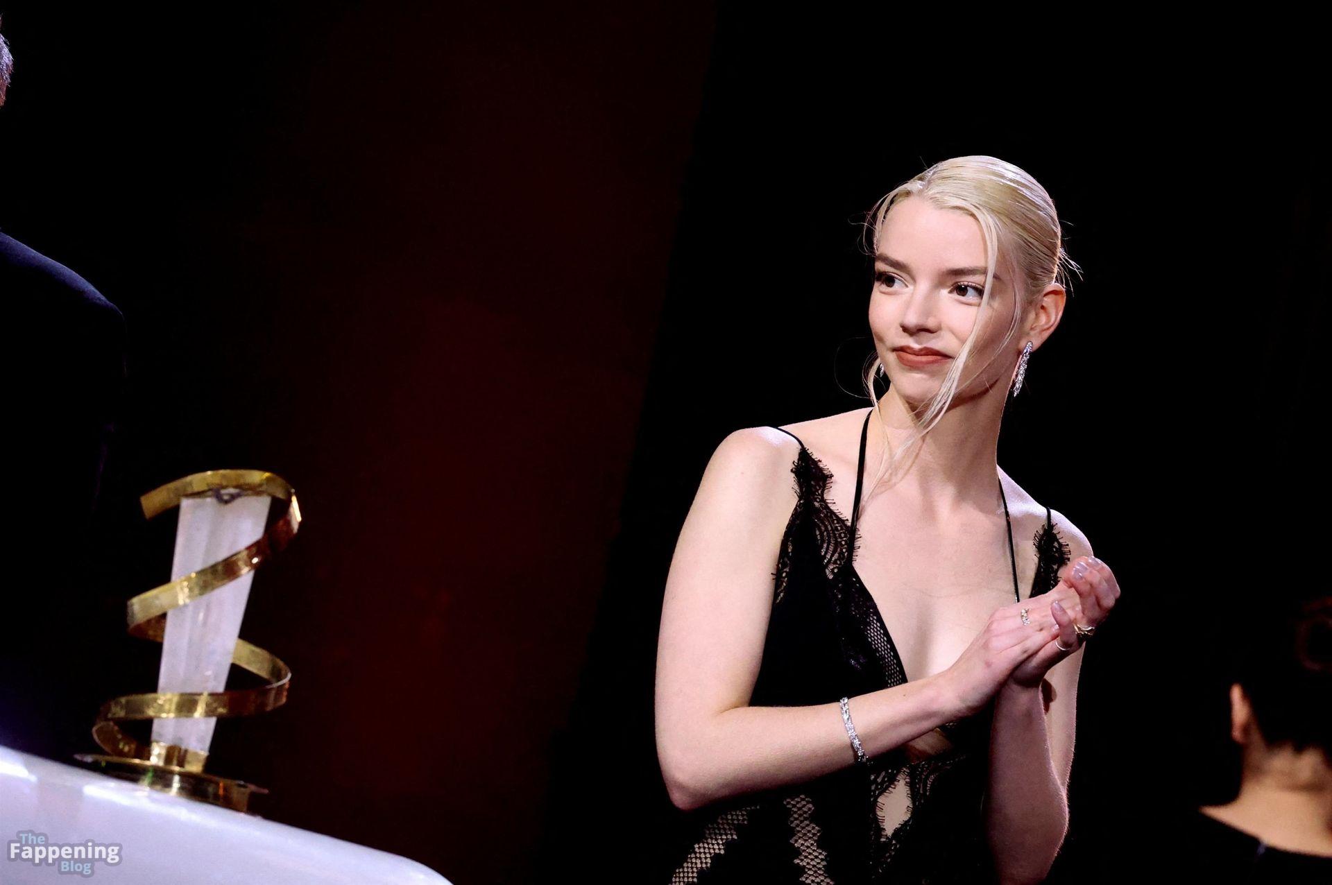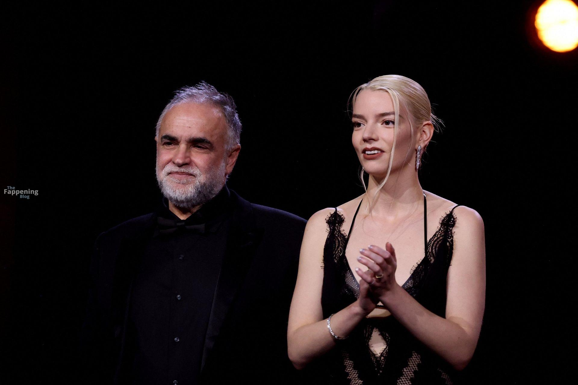 L’actrice américaine Anya Taylor-Joy pose dans une robe en dentelle transparente laissant voir ses jambes sur le tapis rouge alors qu’elle arrive pour la cérémonie de clôture du 22e Festival du Film de Marrakech (FIFM) à Marrakech.