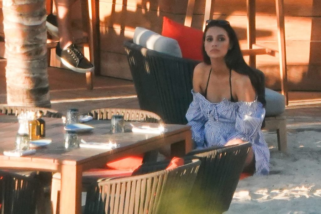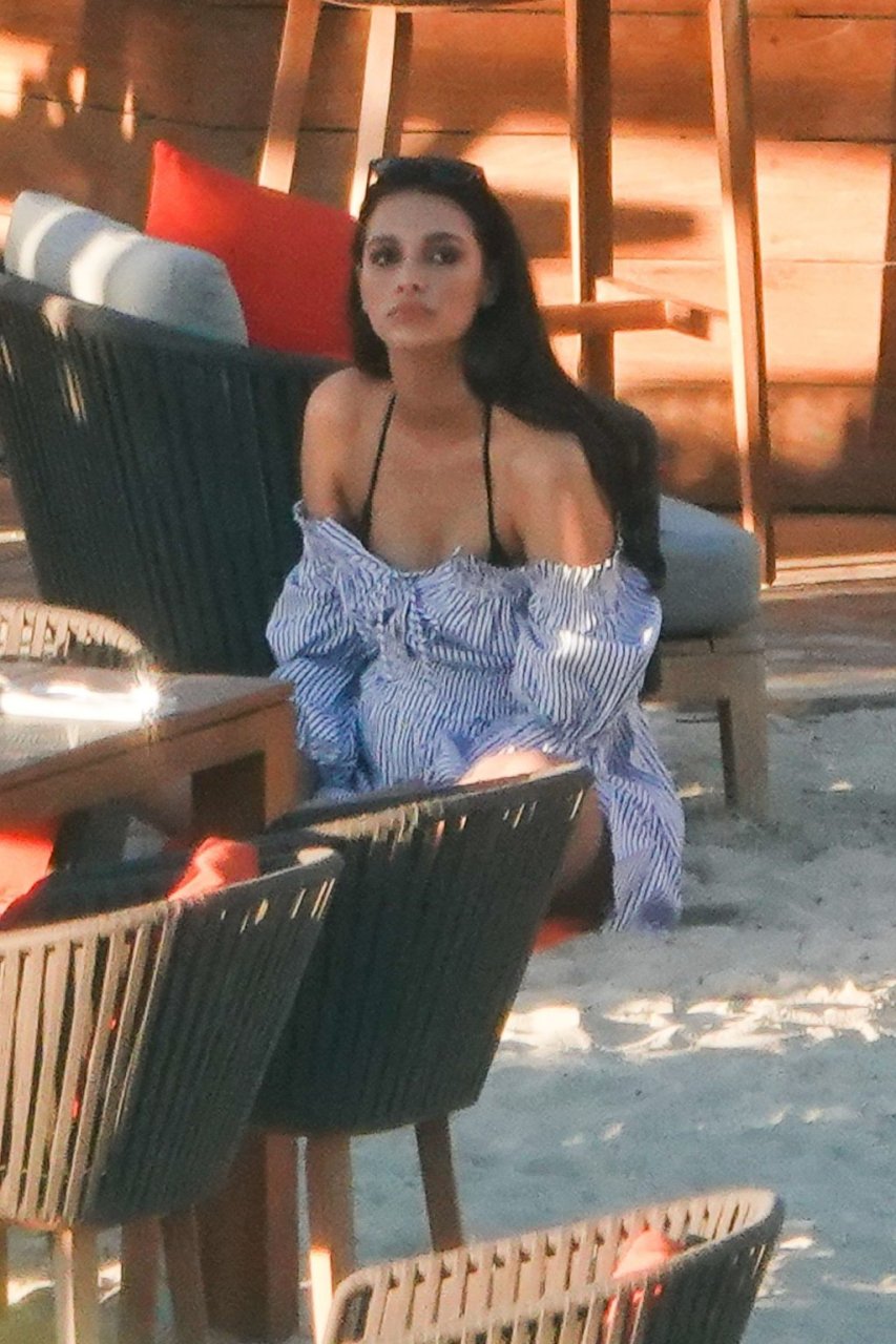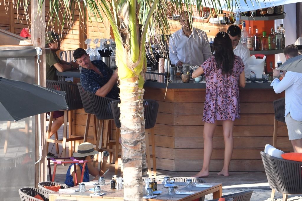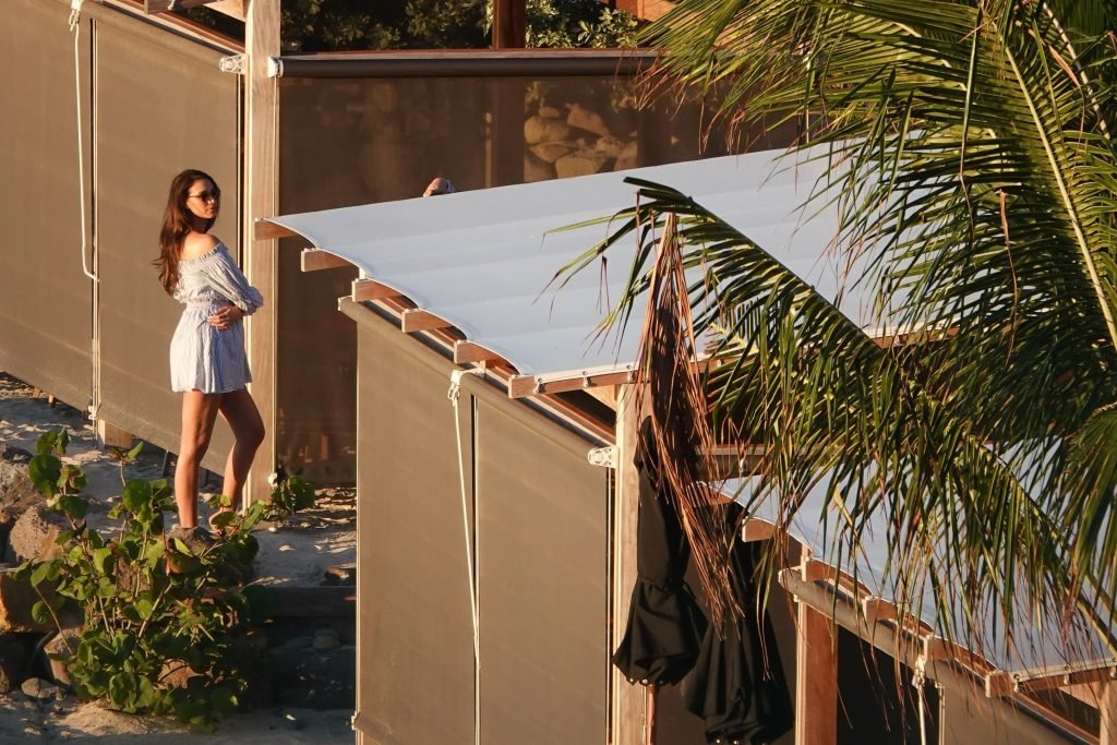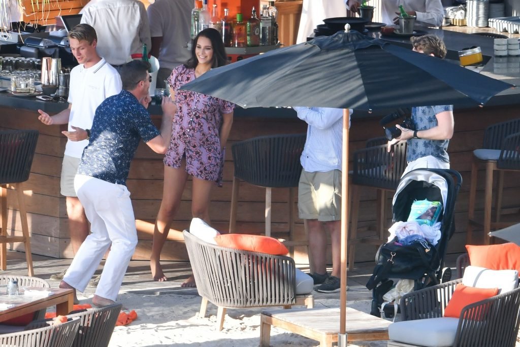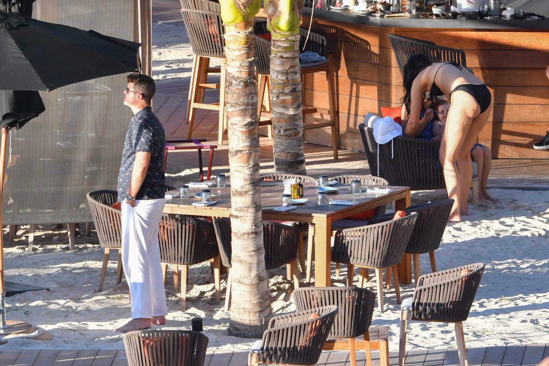 Robin Thicke pose avec sa partenaire enceinte April Love Geary (23 ans) pour une séance photo tropicale à St. Barts, le 26/10/2018. On peut voir Thicke câliner April dans une pataugeoire.