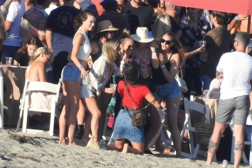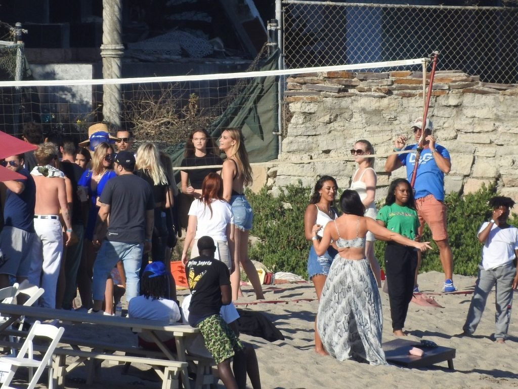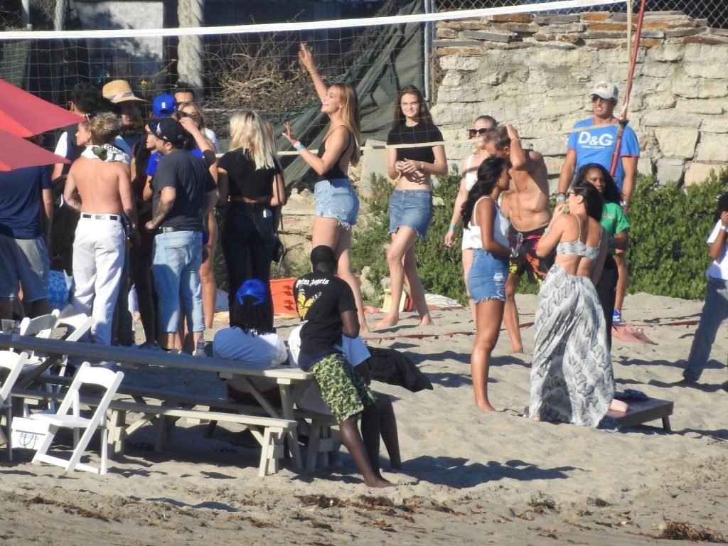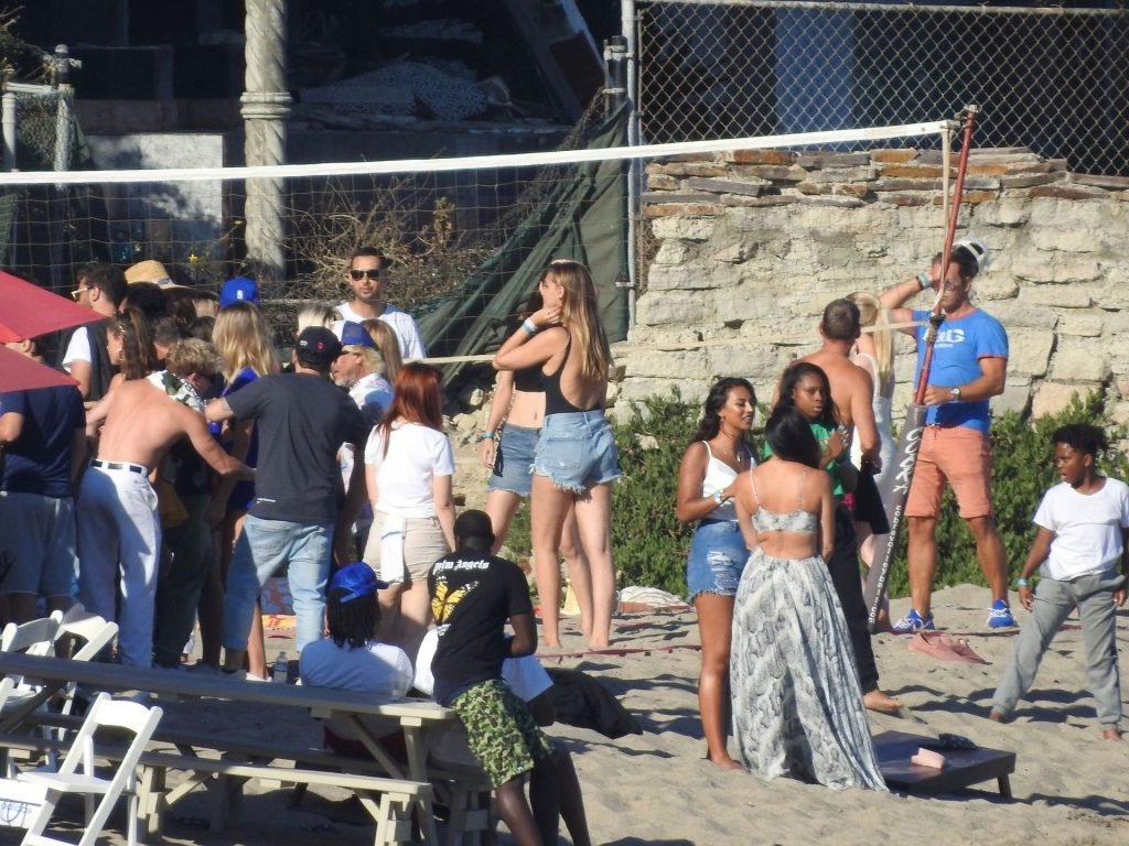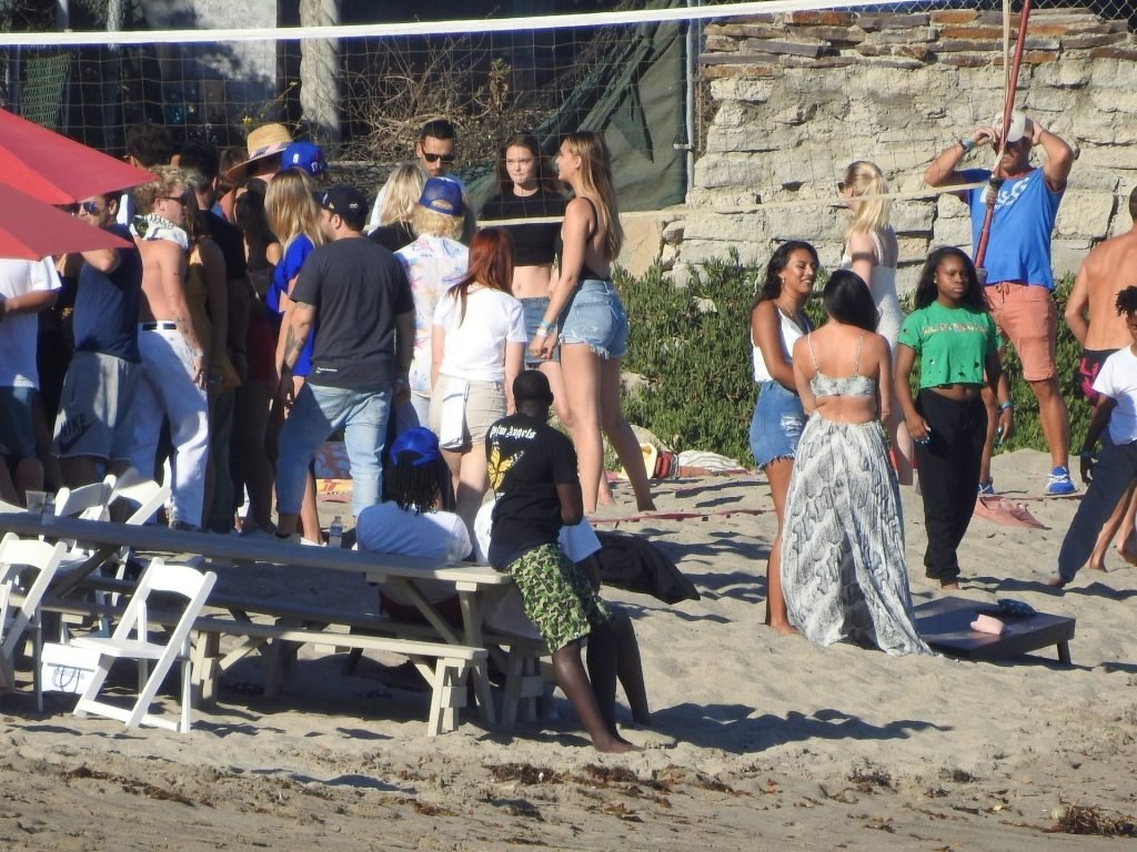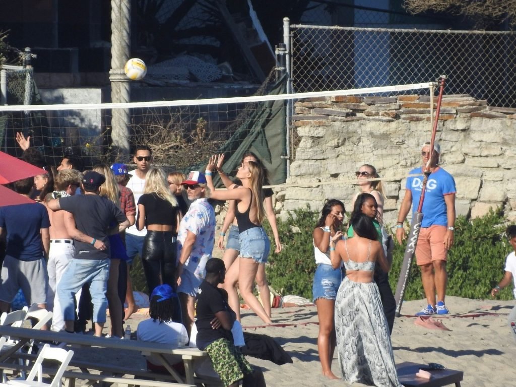 April Love Geary assiste à une fête sur la plage à Malibu où Jamie Foxx et Sean Penn sont également invités, le 25/08/2019. Le mannequin est arrivé avec quelques amies et on pouvait la voir en train de profiter d’une boisson fraîche sur la plage.