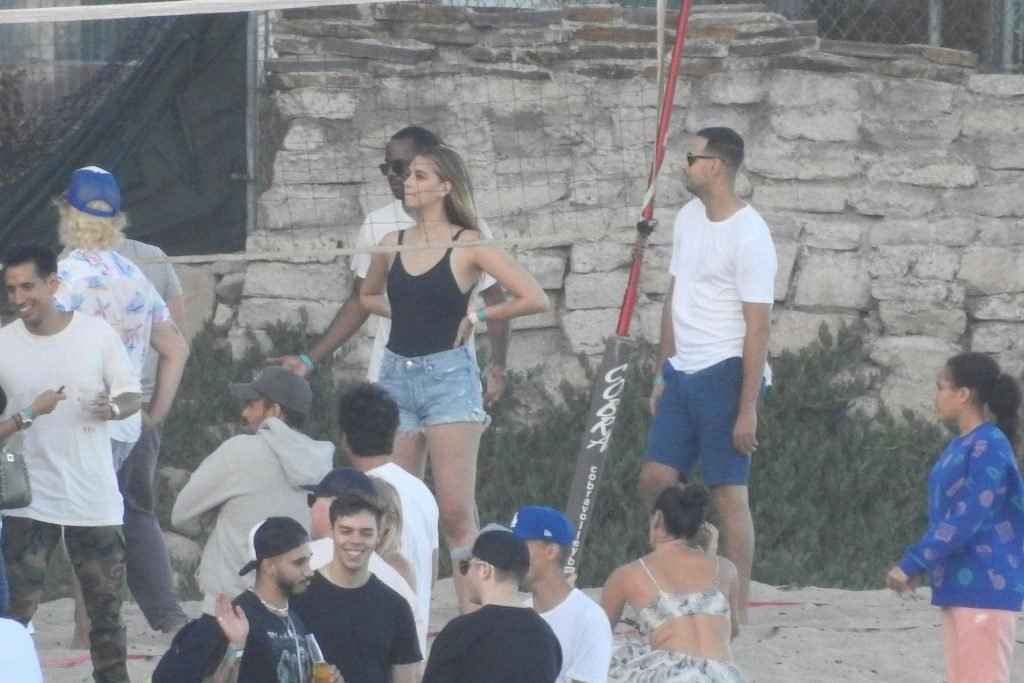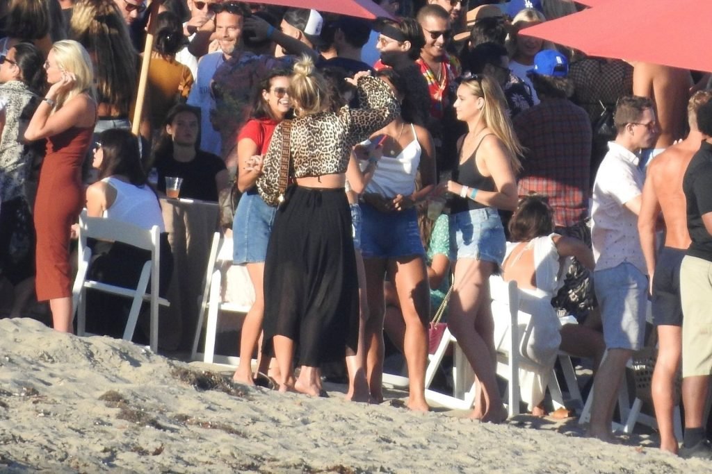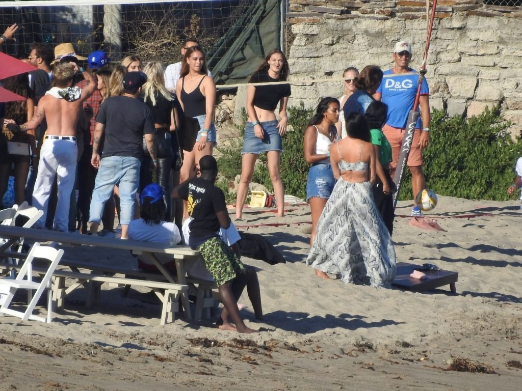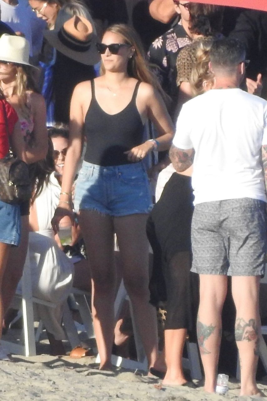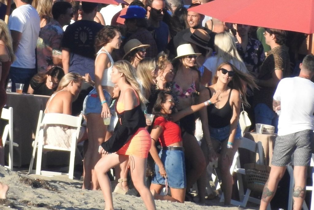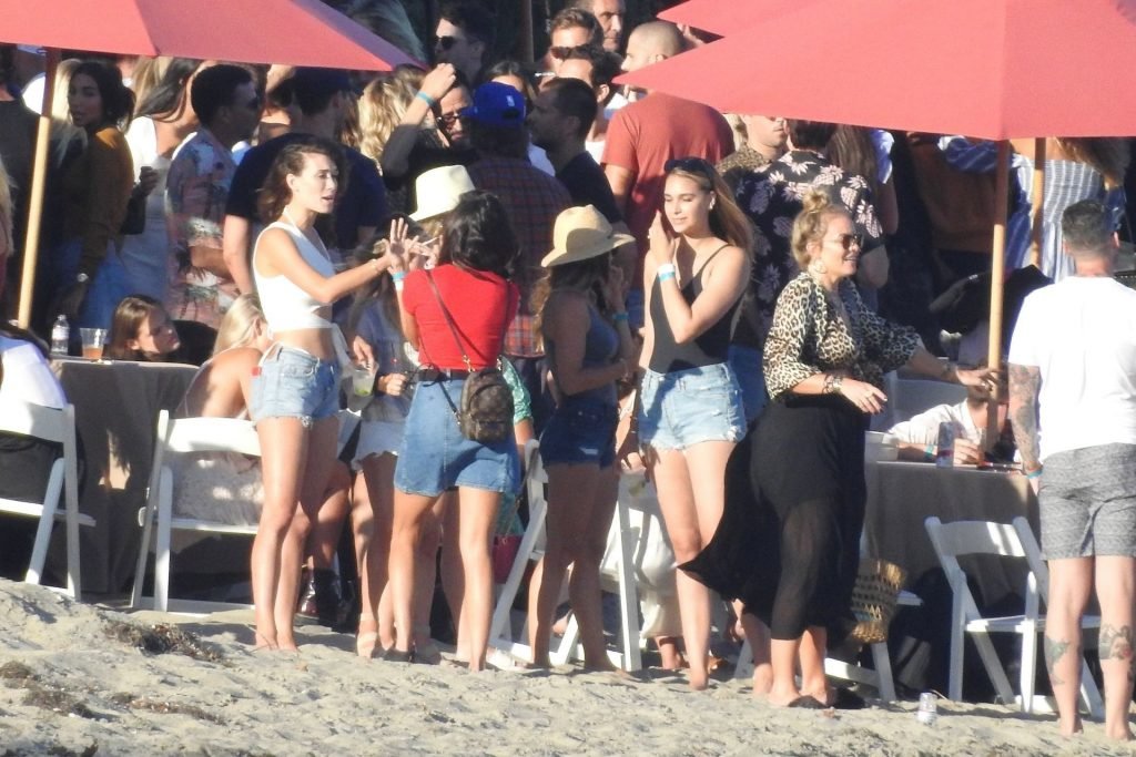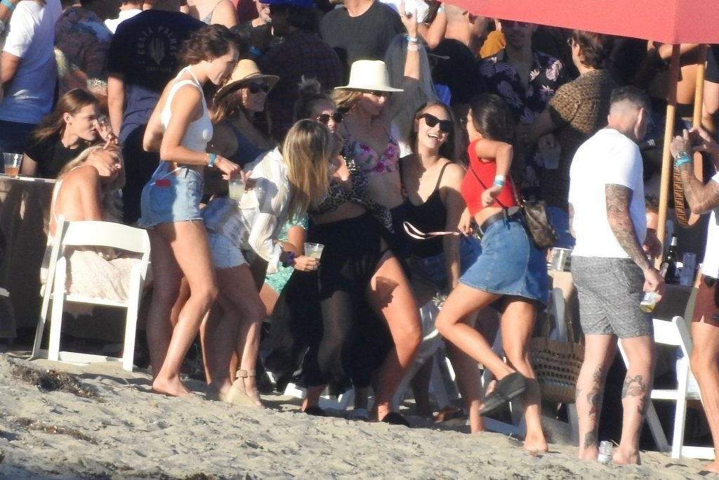April Love Geary assiste à une fête sur la plage à Malibu où Jamie Foxx et Sean Penn sont également invités, le 25/08/2019. Le mannequin est arrivé avec quelques amies et on pouvait la voir en train de profiter d’une boisson fraîche sur la plage.