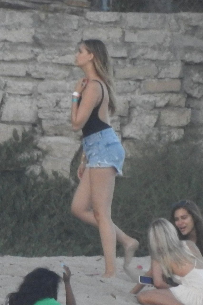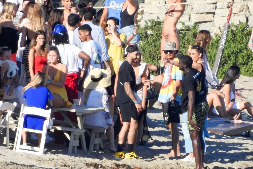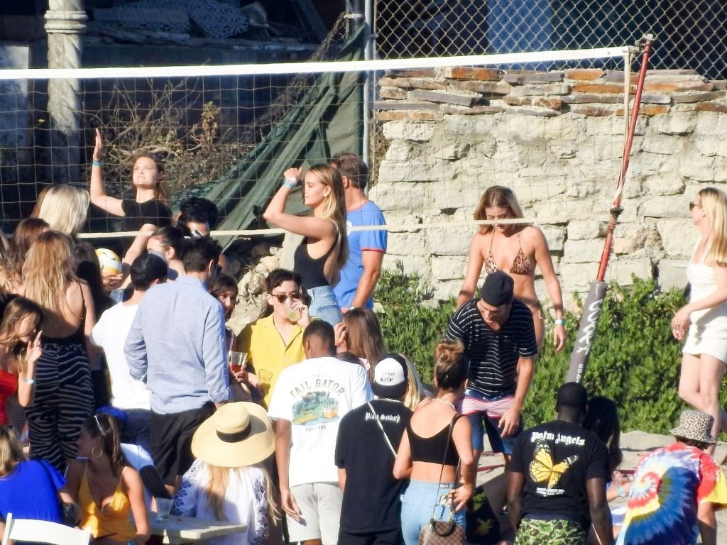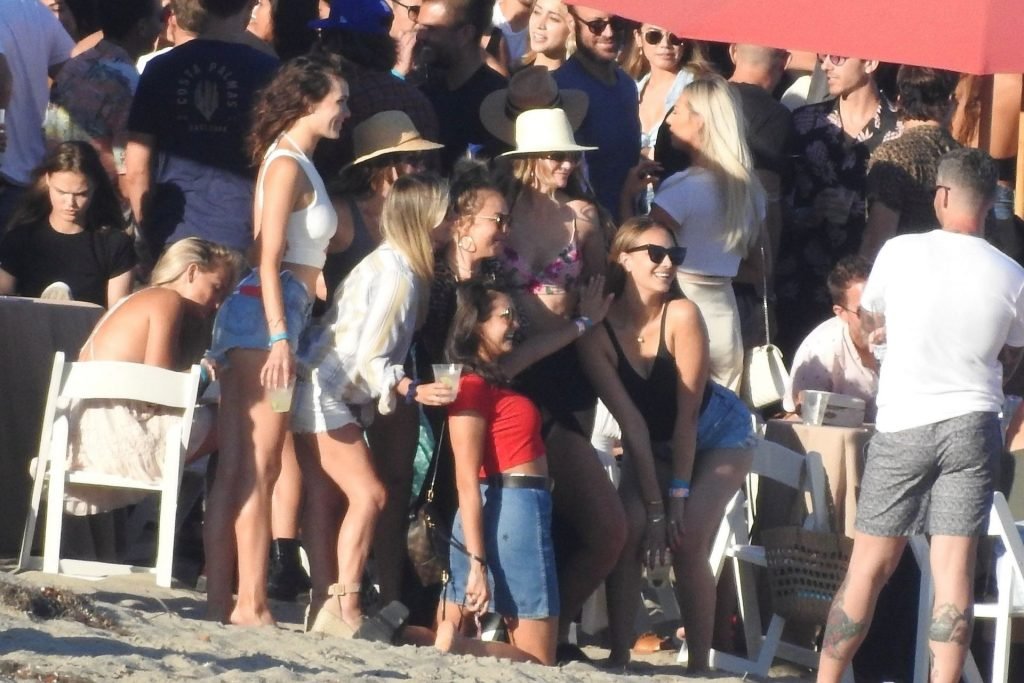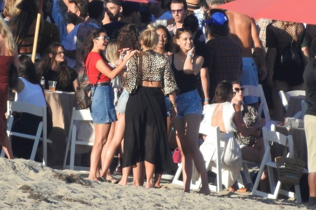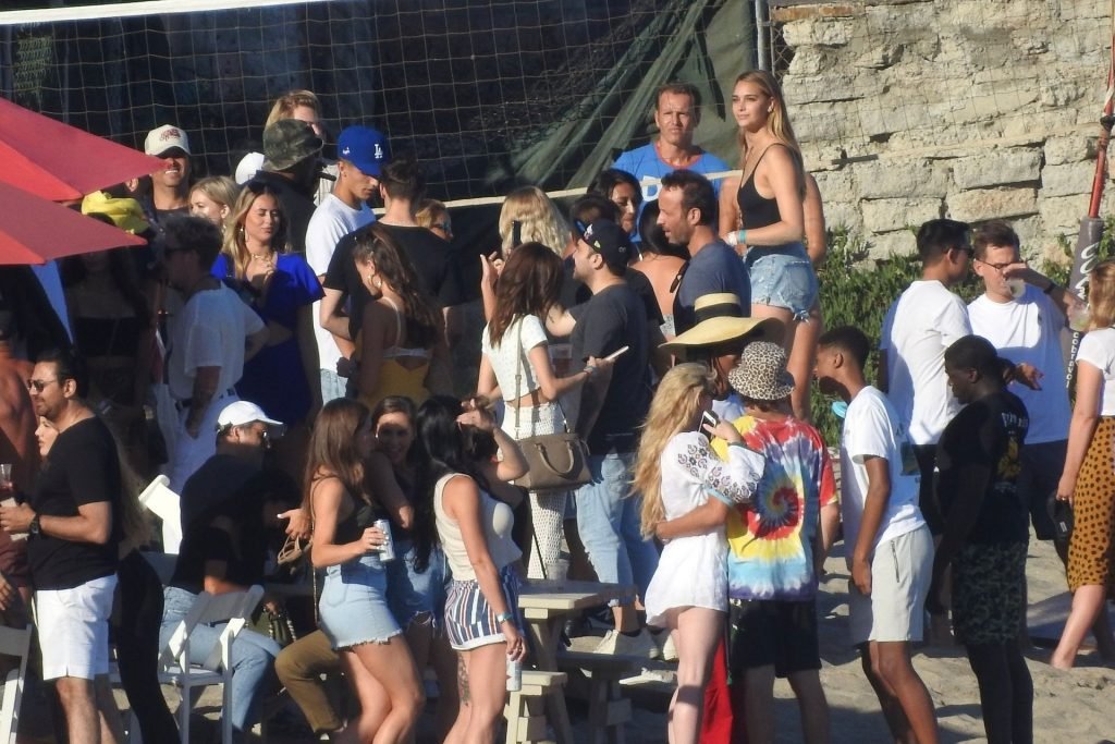 April Love Geary assiste à une fête sur la plage à Malibu où Jamie Foxx et Sean Penn sont également invités, le 25/08/2019. Le mannequin est arrivé avec quelques amies et on pouvait la voir en train de profiter d’une boisson fraîche sur la plage.