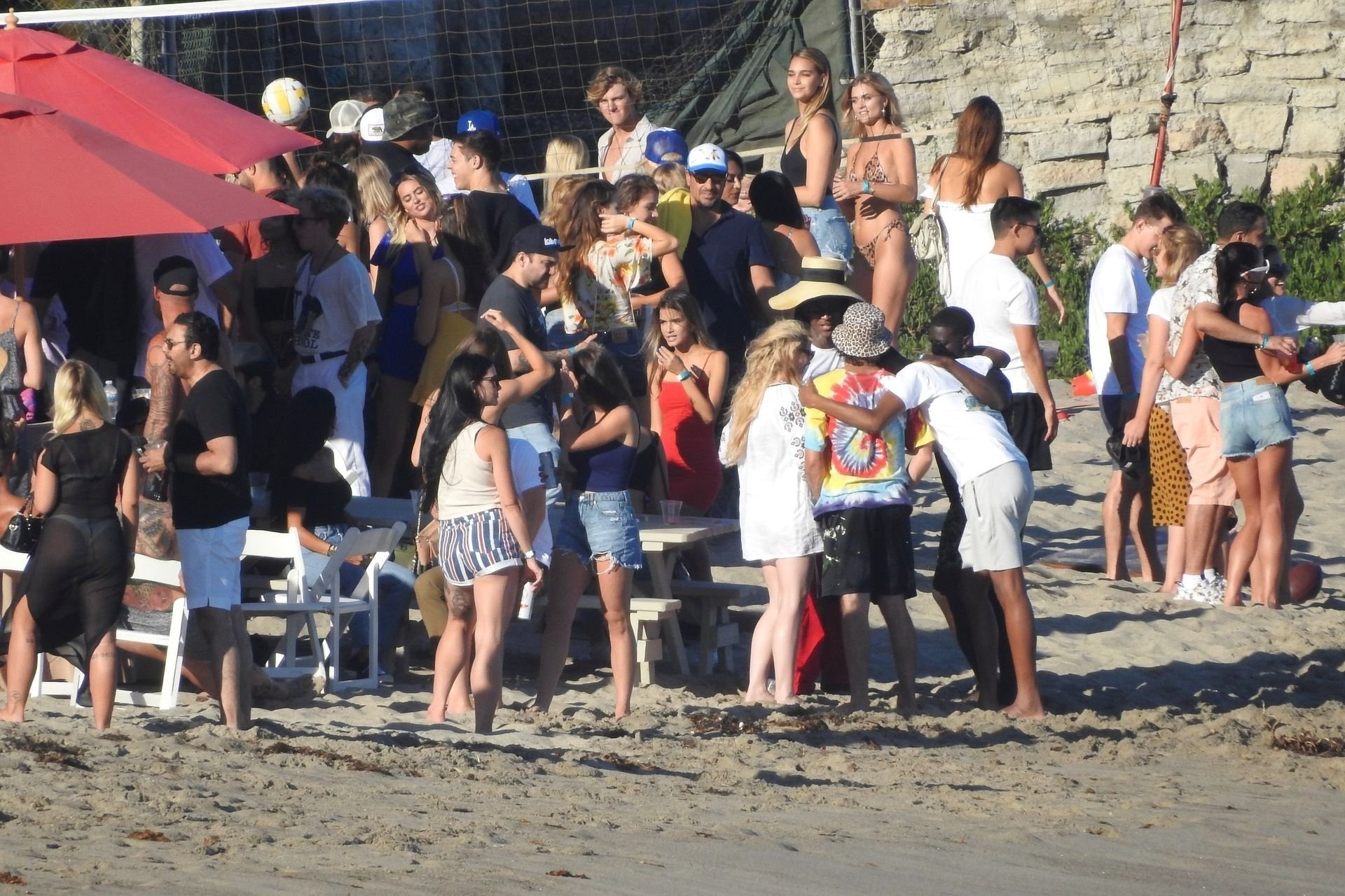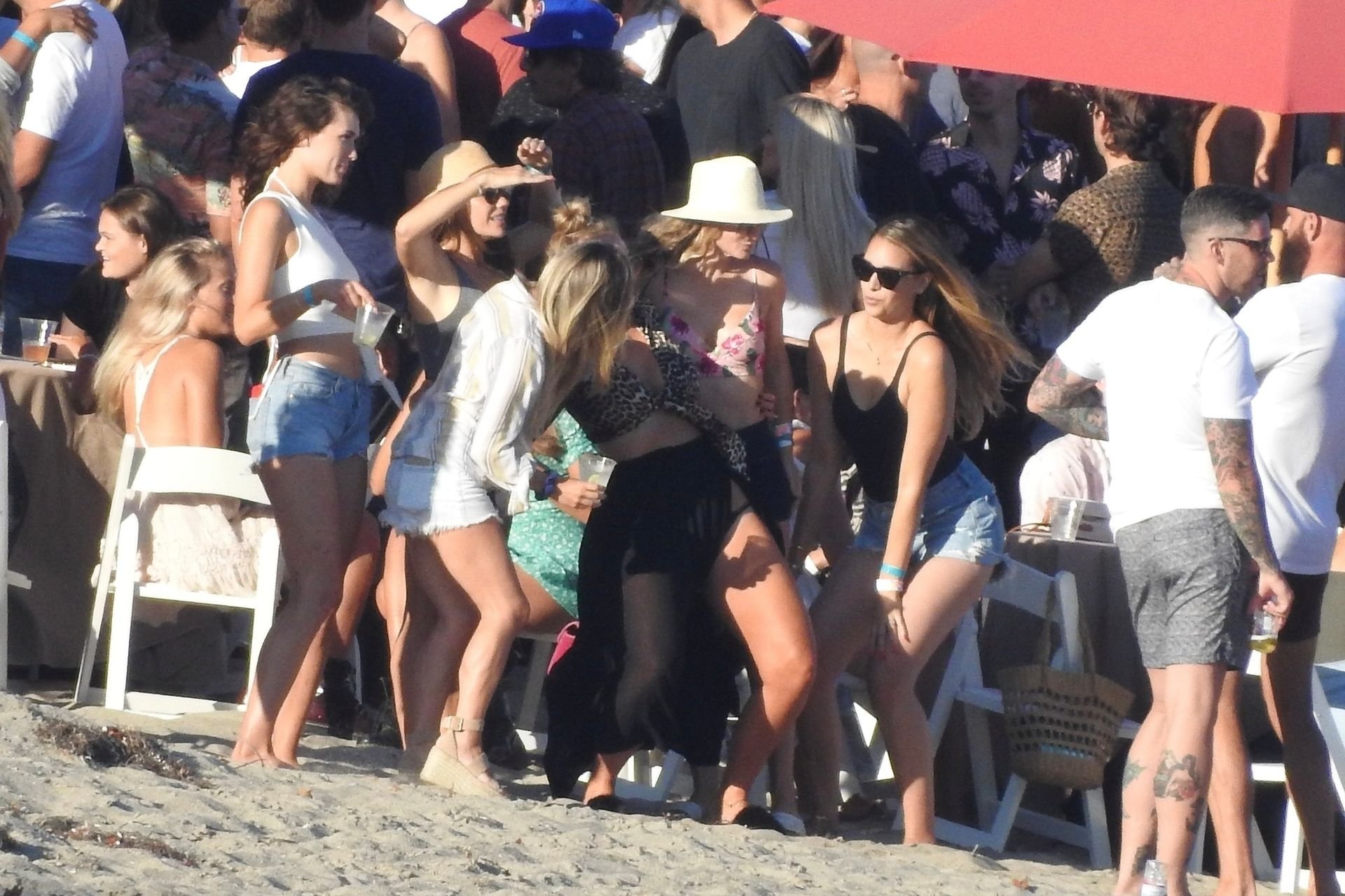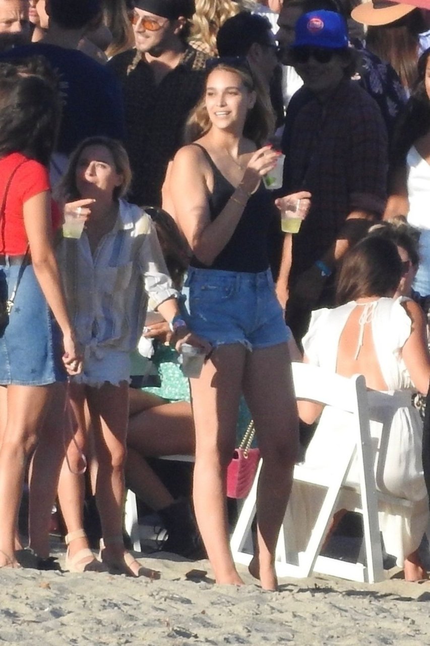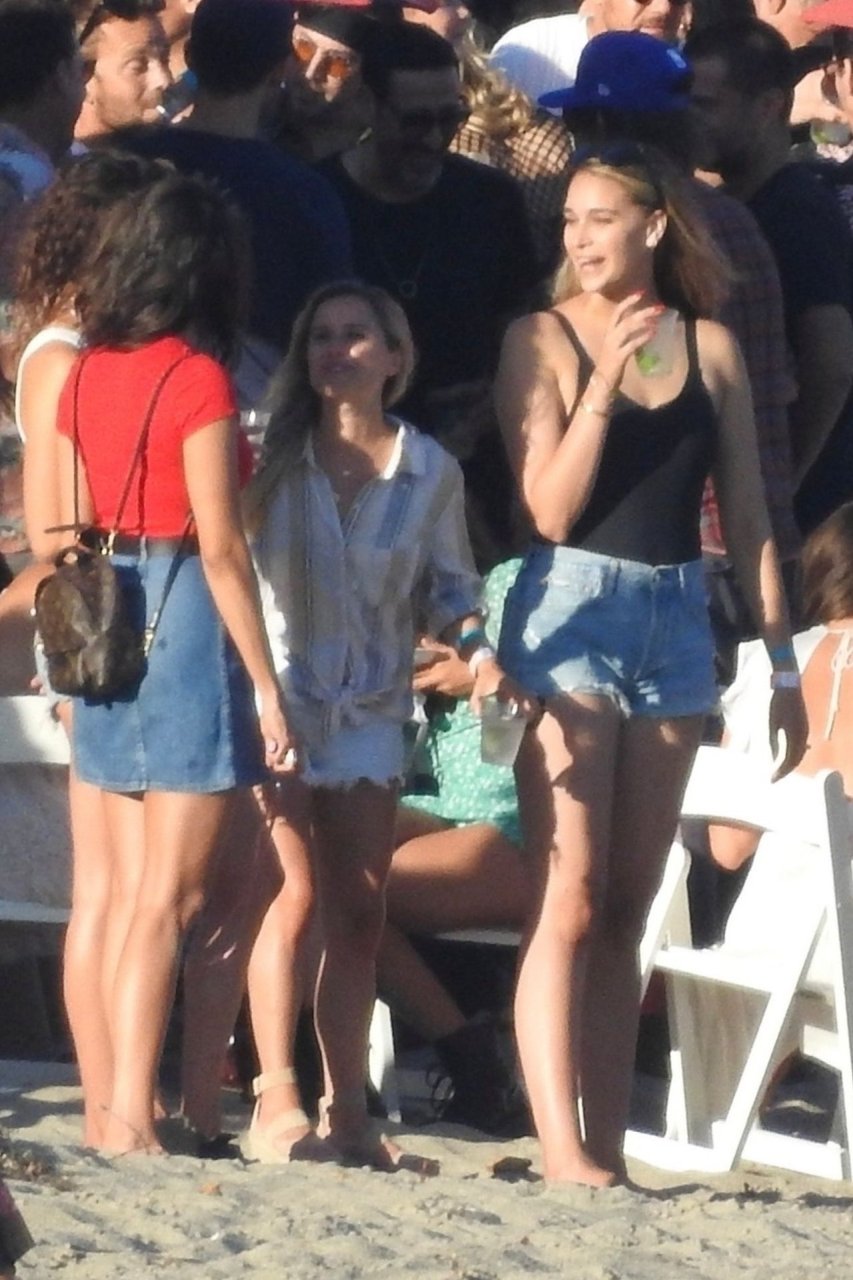 April Love Geary assiste à une fête sur la plage à Malibu où Jamie Foxx et Sean Penn sont également invités, le 25/08/2019. Le mannequin est arrivé avec quelques amies et on pouvait la voir en train de profiter d’une boisson fraîche sur la plage.