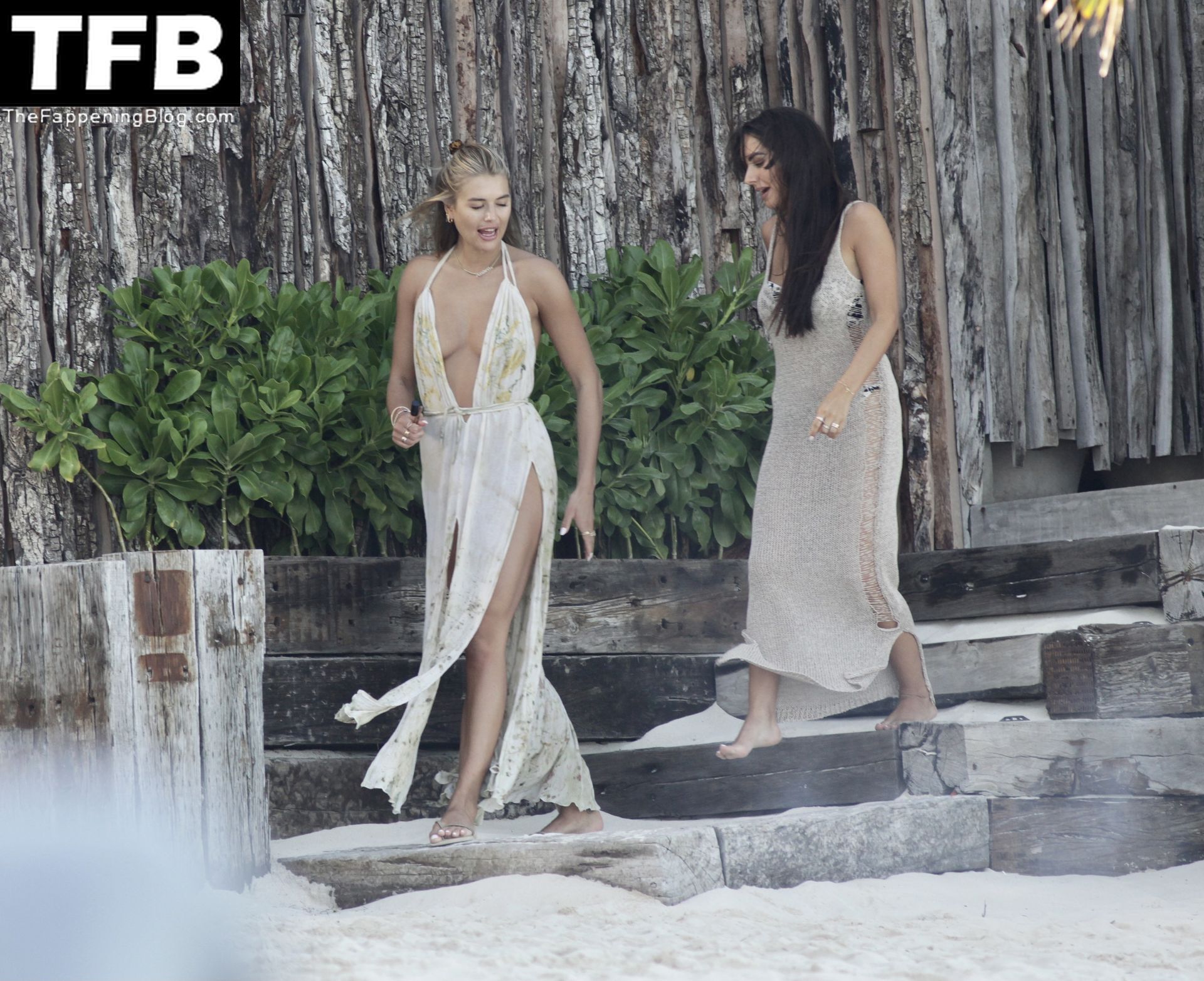 La star de la télé-réalité Arabella Chi est aperçue avec son amie sur la plage à Tulum, Mexique, 17/02/2022.