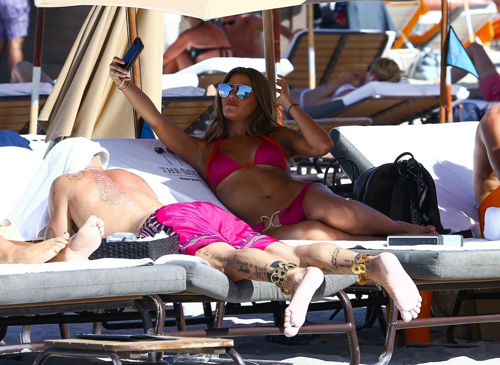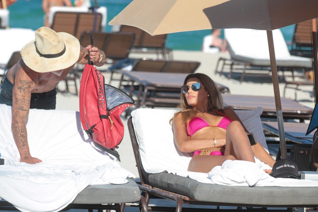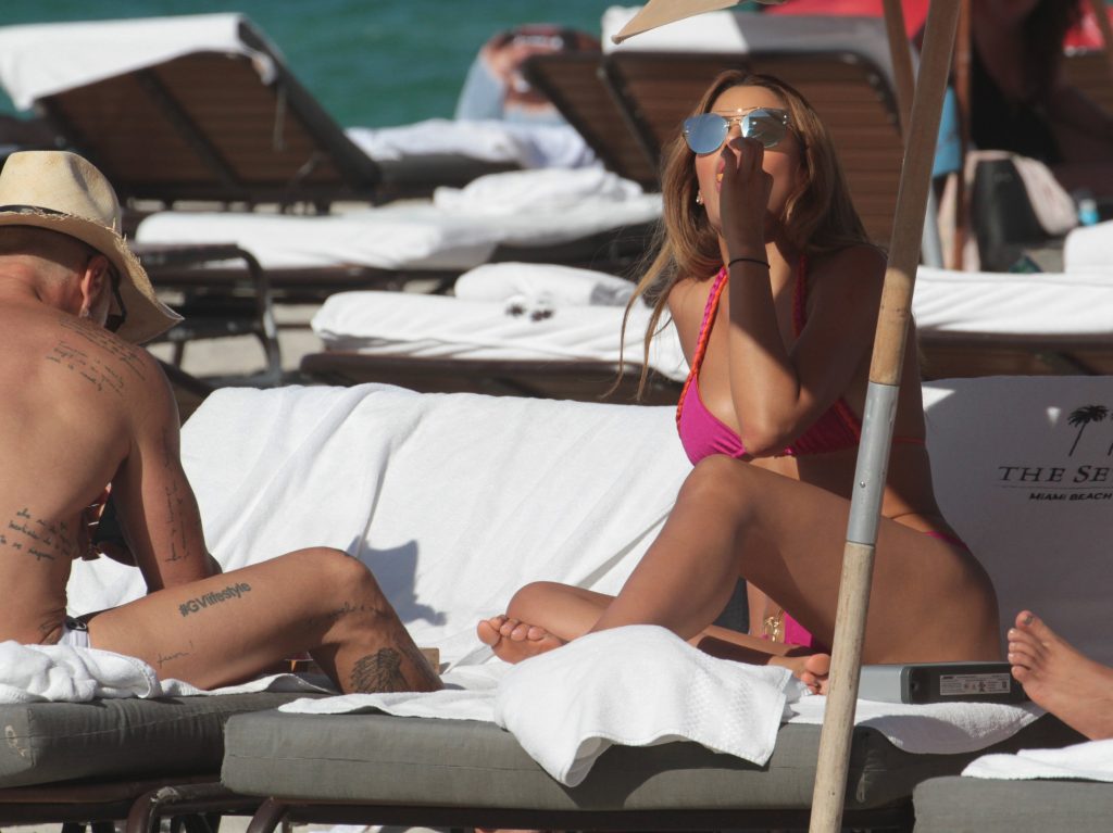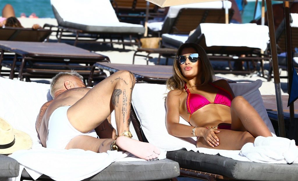 Actrice, mannequin et reine de beauté colombienne de 23 ans, qui a remporté Miss Colombie 2014 et s’est classée 1ère dauphine à Miss Univers 2015, Ariadna Gutiérrez, passe un après-midi ensoleillé avec le millionnaire italien Gianluca Vacchi, lors de ses vacances à Miami, 07/03/2017.