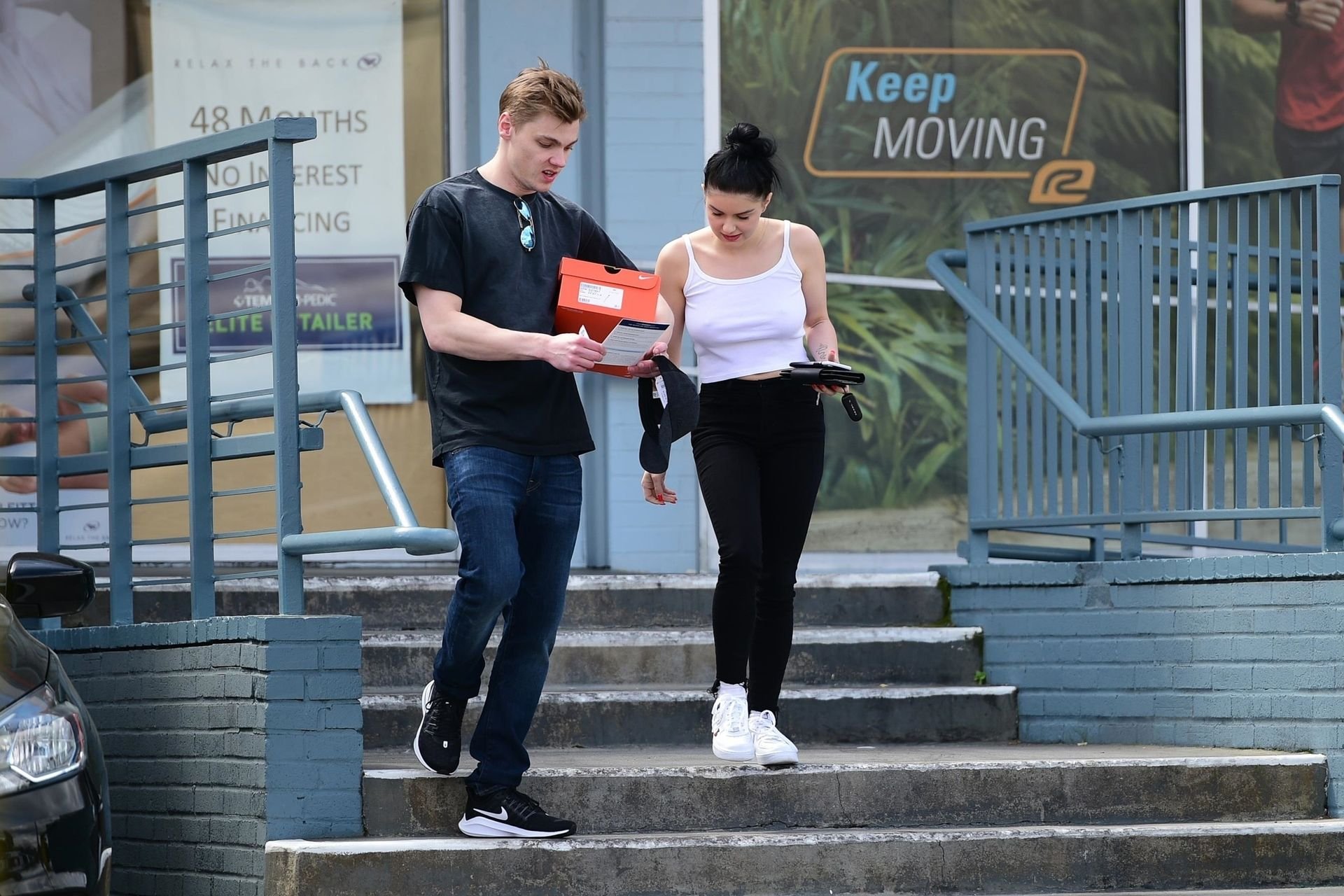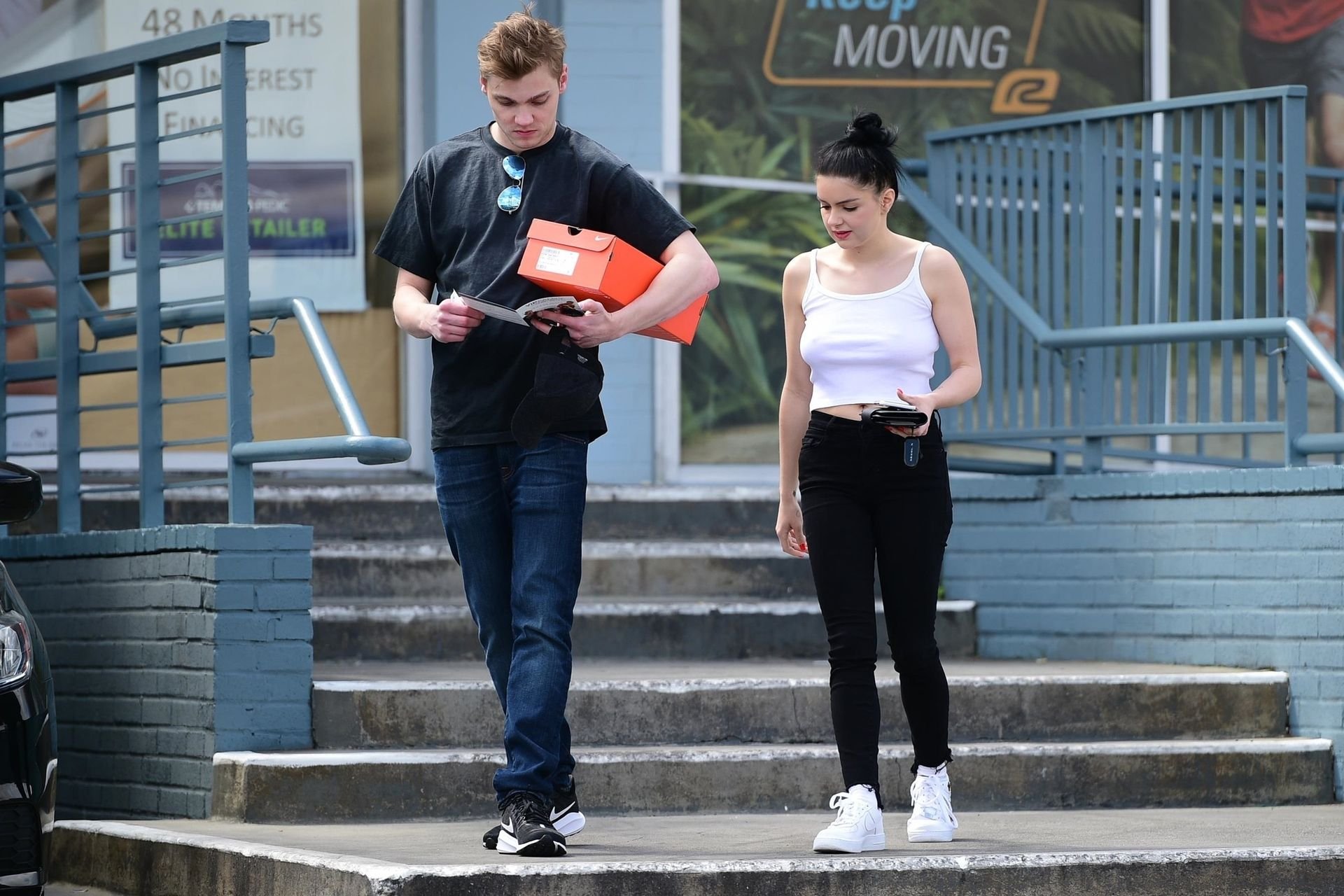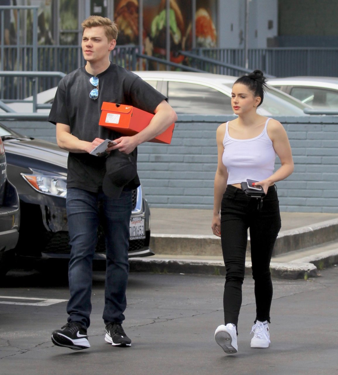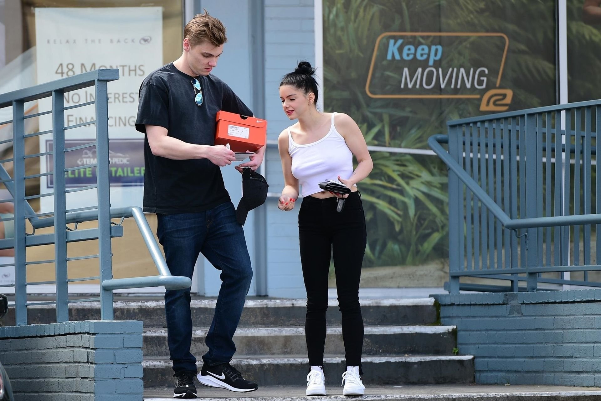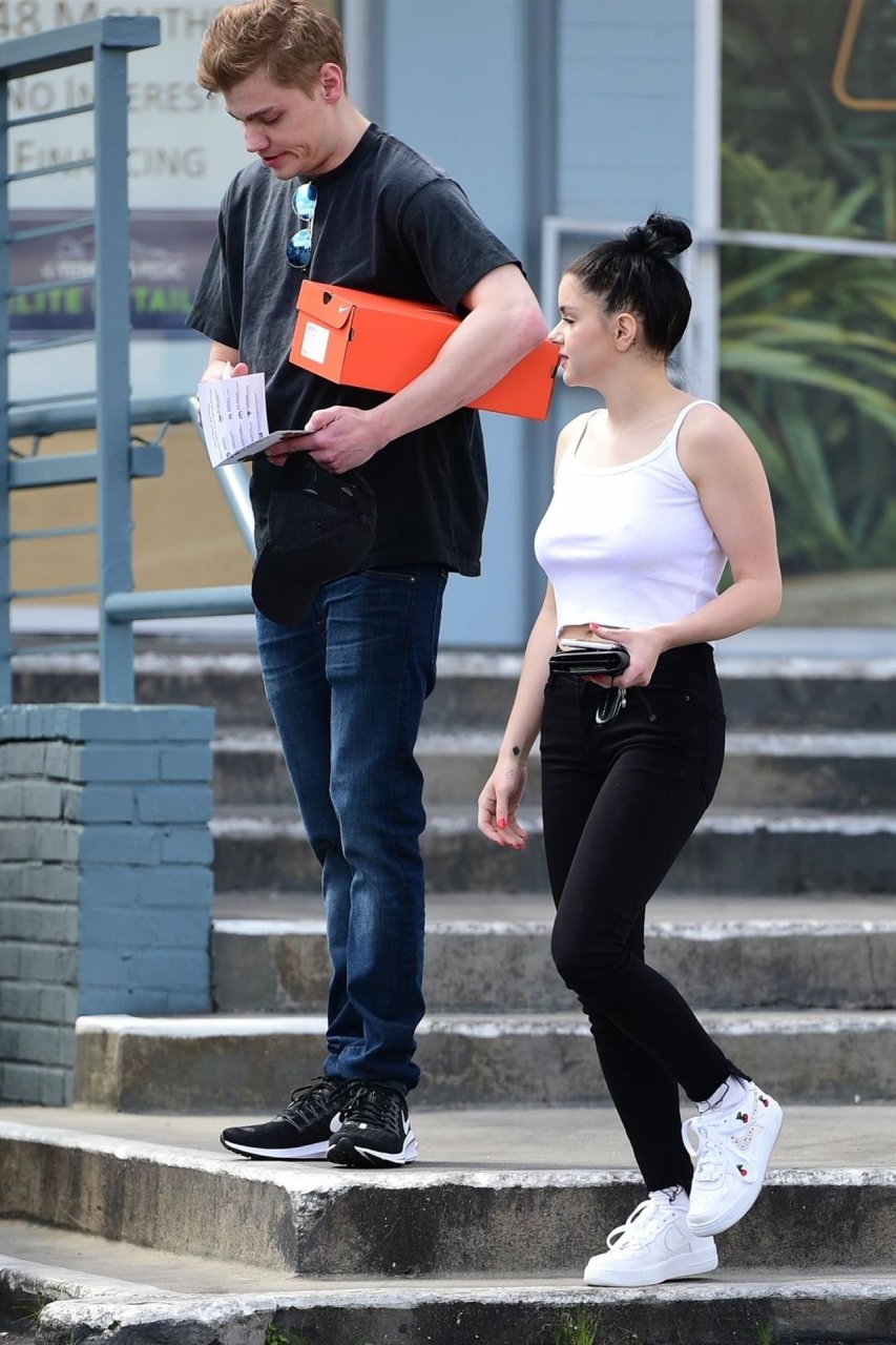Ariel Winter a choisi de ne pas porter de soutien-gorge vendredi avec son compagnon lors d’une virée shopping de chaussures à Studio City, Californie, le 05/04/2019.