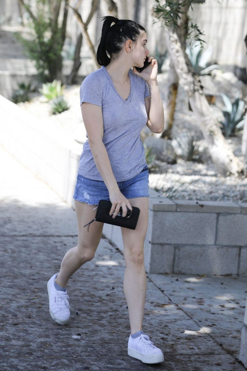 Ariel Winter sort sans soutien-gorge et porte un short très court, lors d’une sortie en solo à Los Angeles, le 23/04/2019. L’actrice de 21 ans répond à un appel téléphonique en se promenant dans les rues.