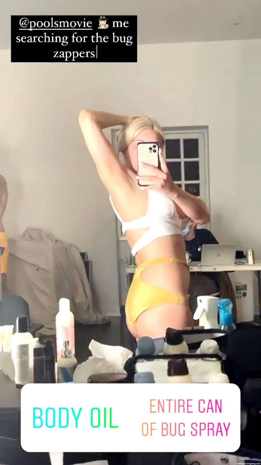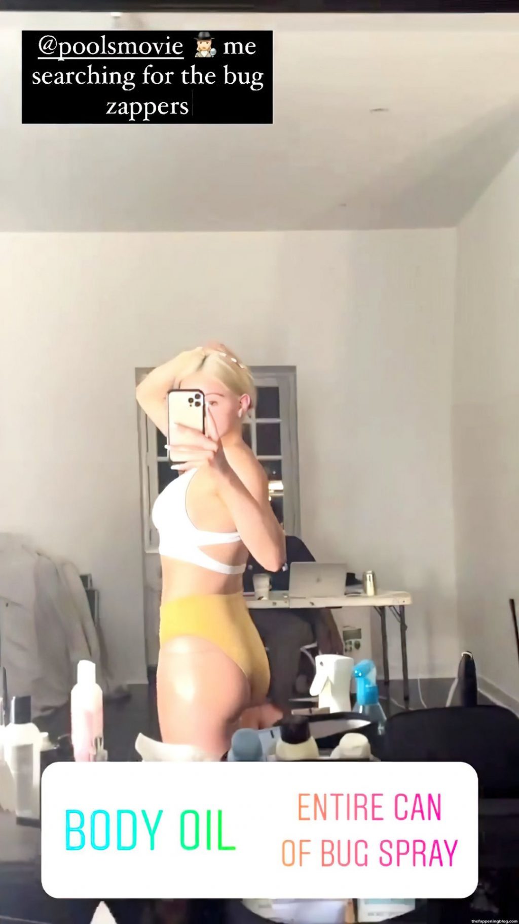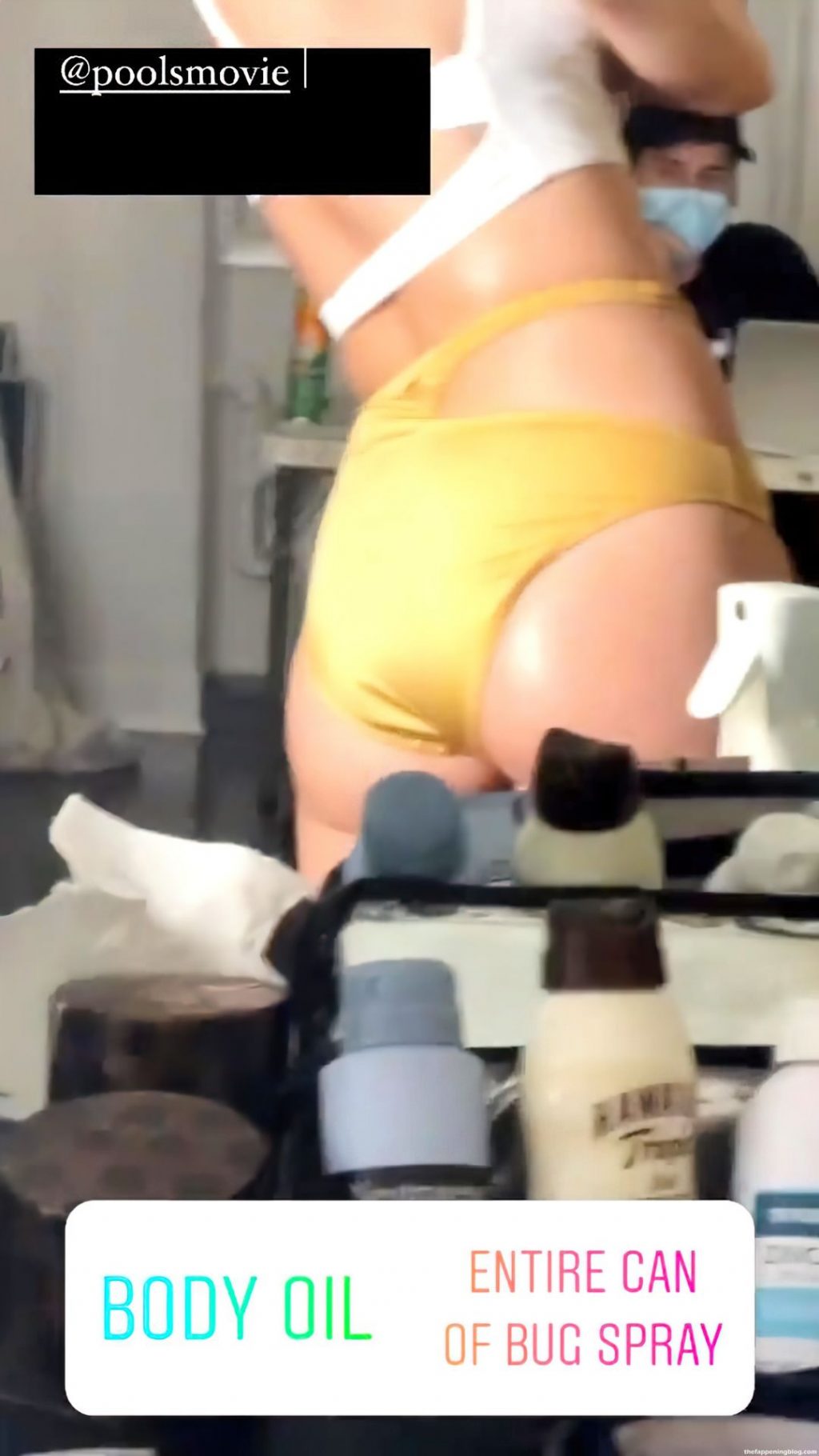 L’actrice Ariel Winter exhibe son corps huilé, un joli cameltoe et ses fesses, posant en bikini deux pièces dans la vidéo selfie Instagram ci-dessous, 25/06/2021.