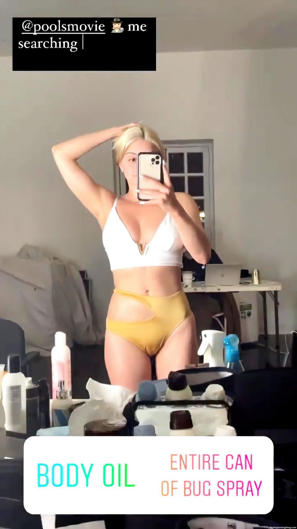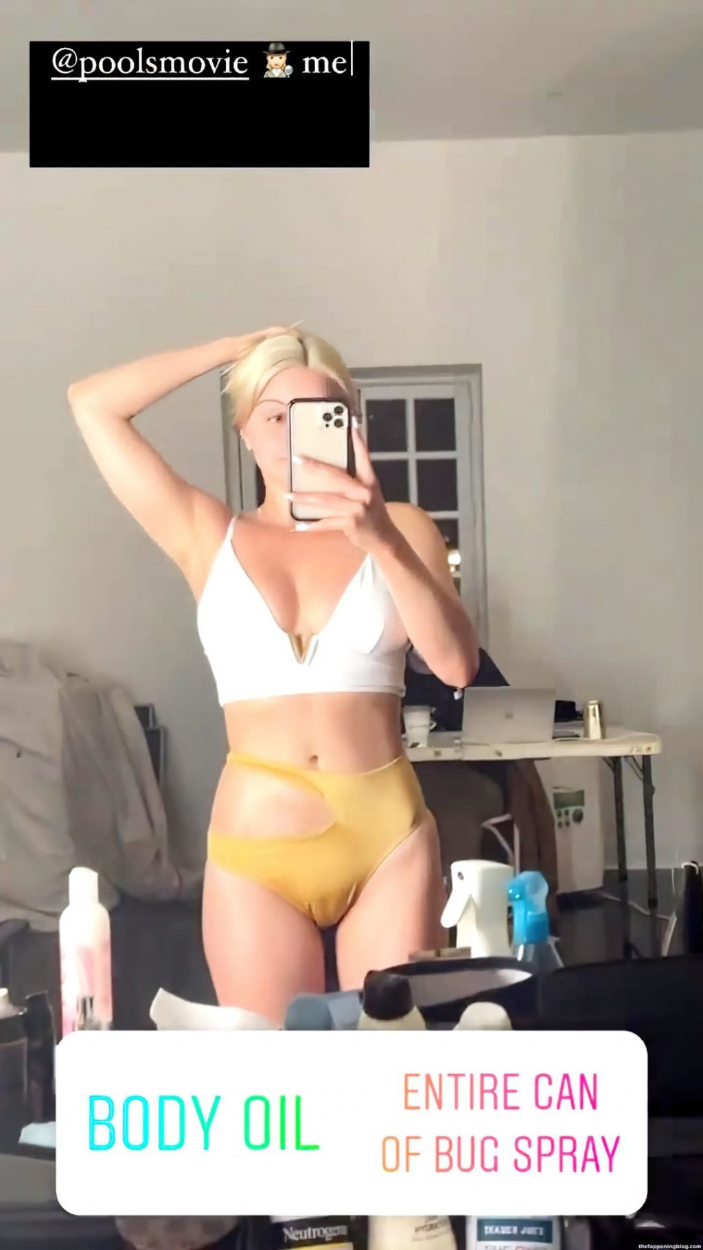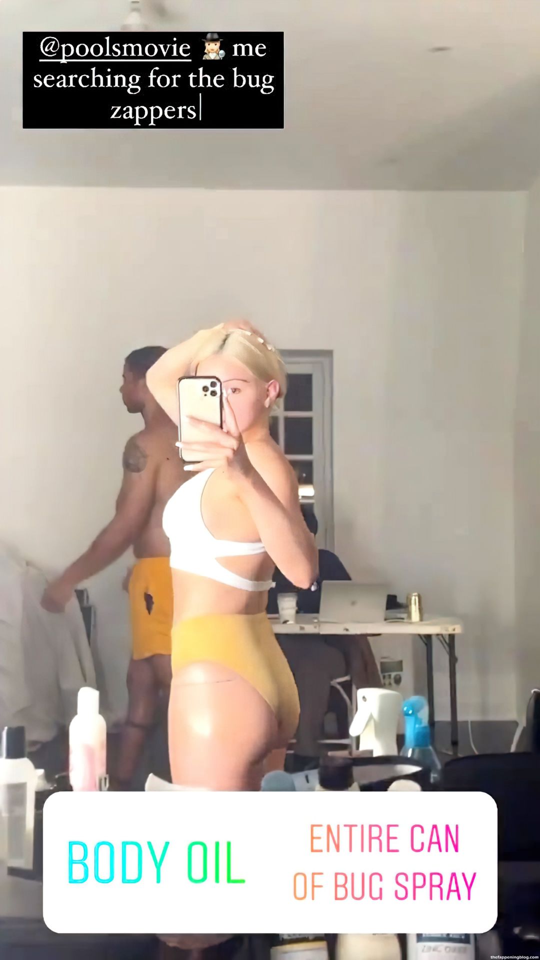 L’actrice Ariel Winter exhibe son corps huilé, un joli cameltoe et ses fesses, posant en bikini deux pièces dans la vidéo selfie Instagram ci-dessous, 25/06/2021.