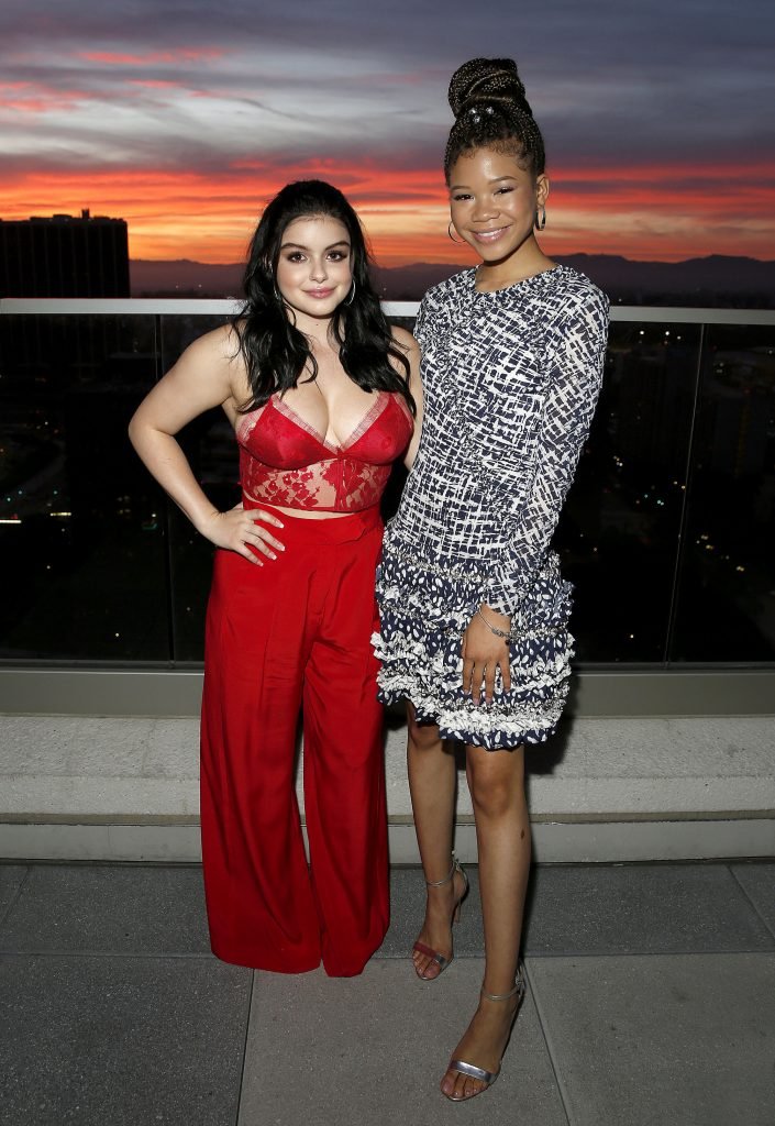 Ariel Winter, au physique voluptueux, assiste à la fête du magazine La Palme dans le centre-ville de Los Angeles avec Levi Madden et Danielle Savre, le 21/04/2018. Ariel Winter est une actrice de cinéma (The Last Movie Star (2017)), chanteuse et mannequin originaire de Los Angeles. Âge : 20 ans.