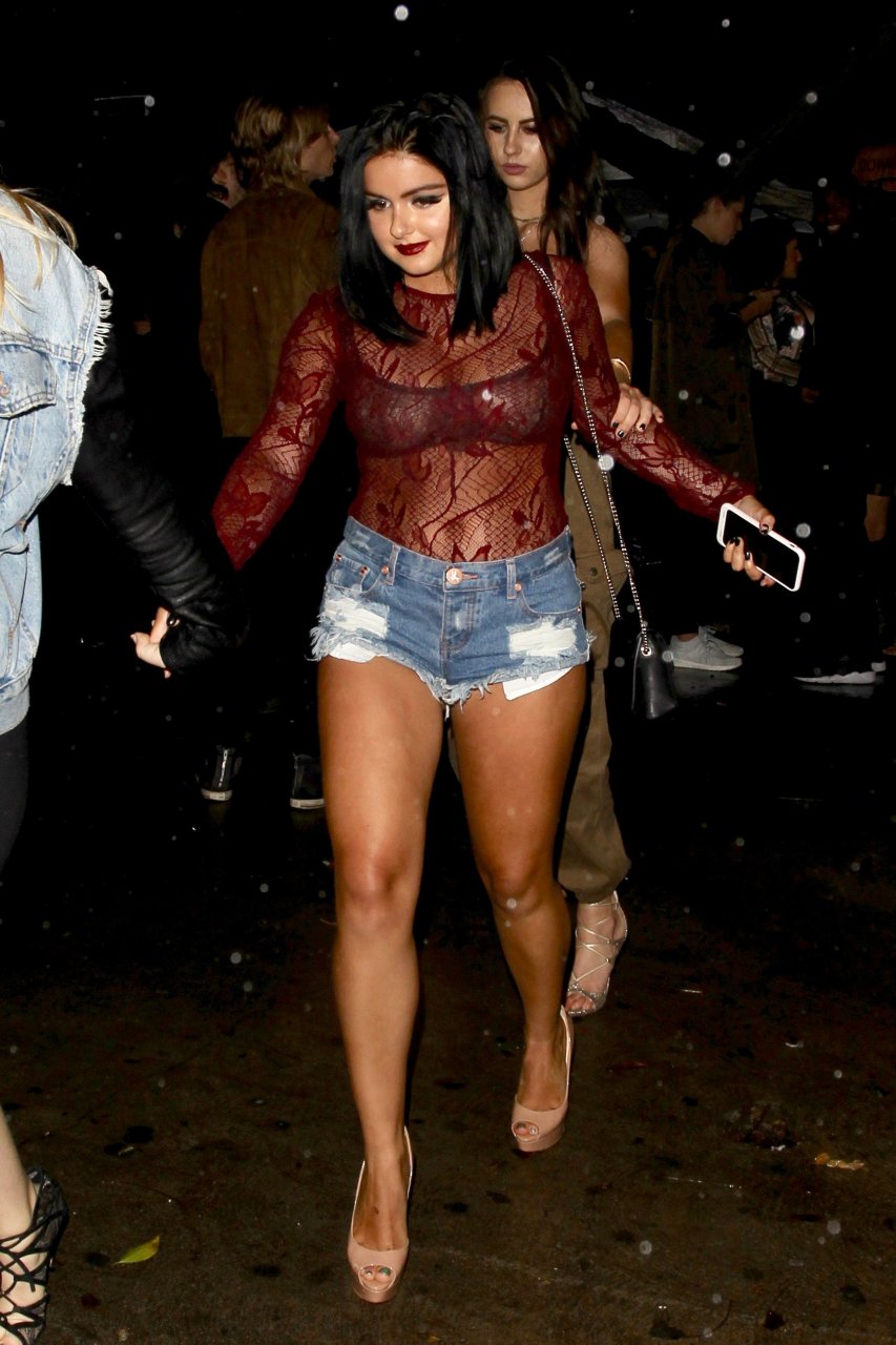 Ariel Winter porte un haut rouge transparent et un short en jean super sexy à l’extérieur du Peppermint club à West Hollywood, 01/10/2017. Ariel Winter est une actrice américaine (Sofia the First (2016-2017 (voix)), mannequin et chanteuse. Âge : 18 ans (née le 28 janvier 1998).