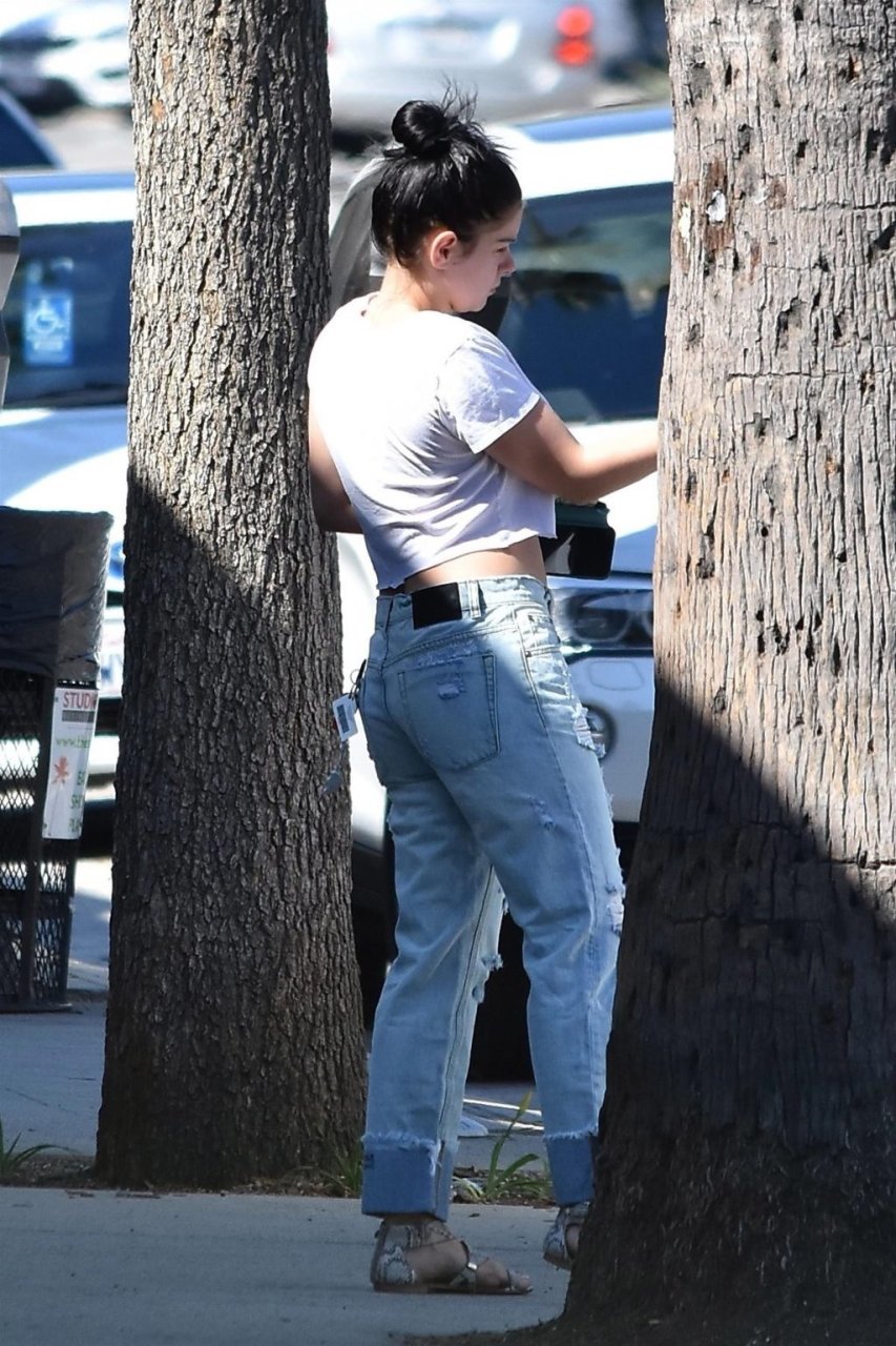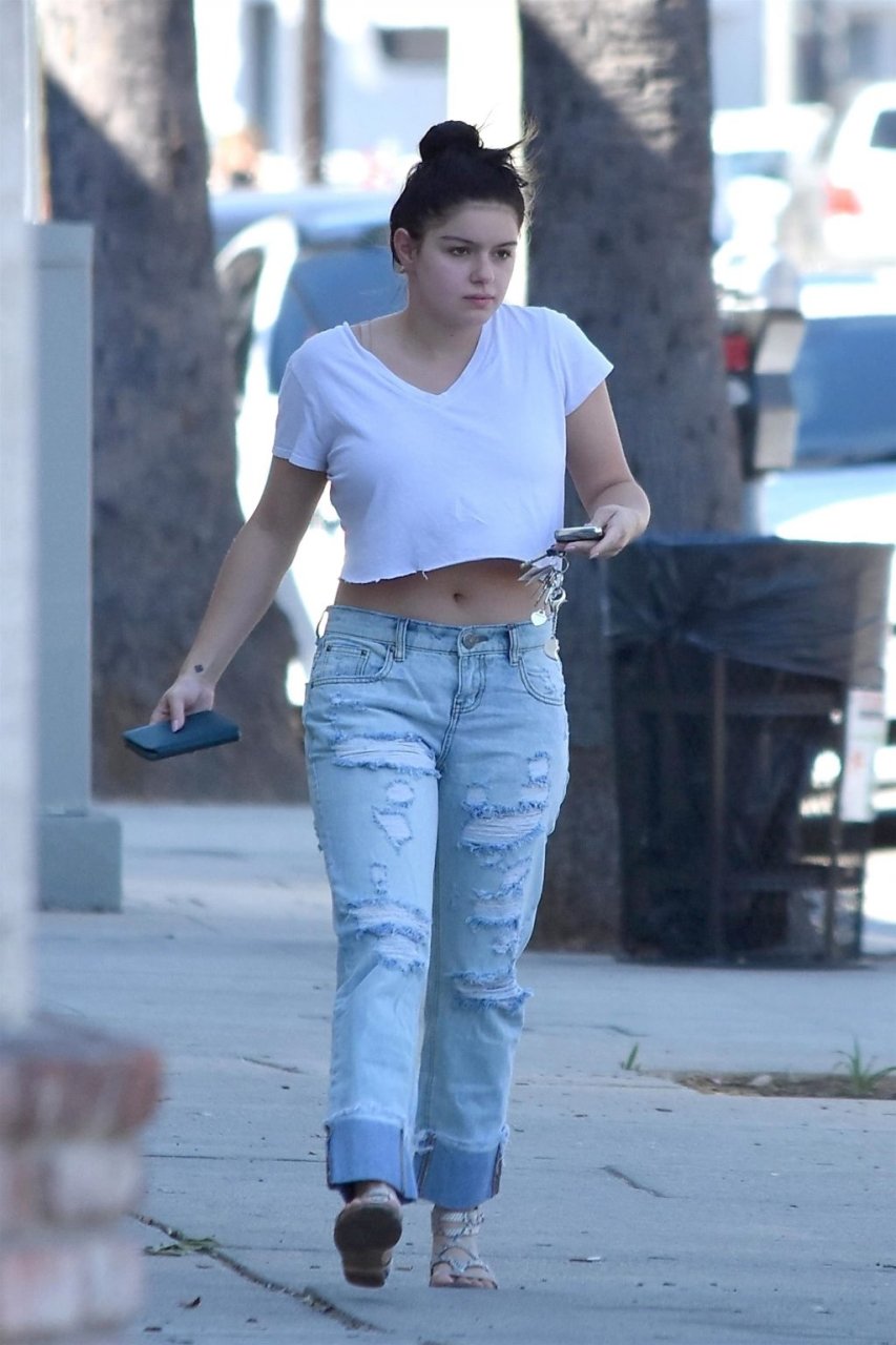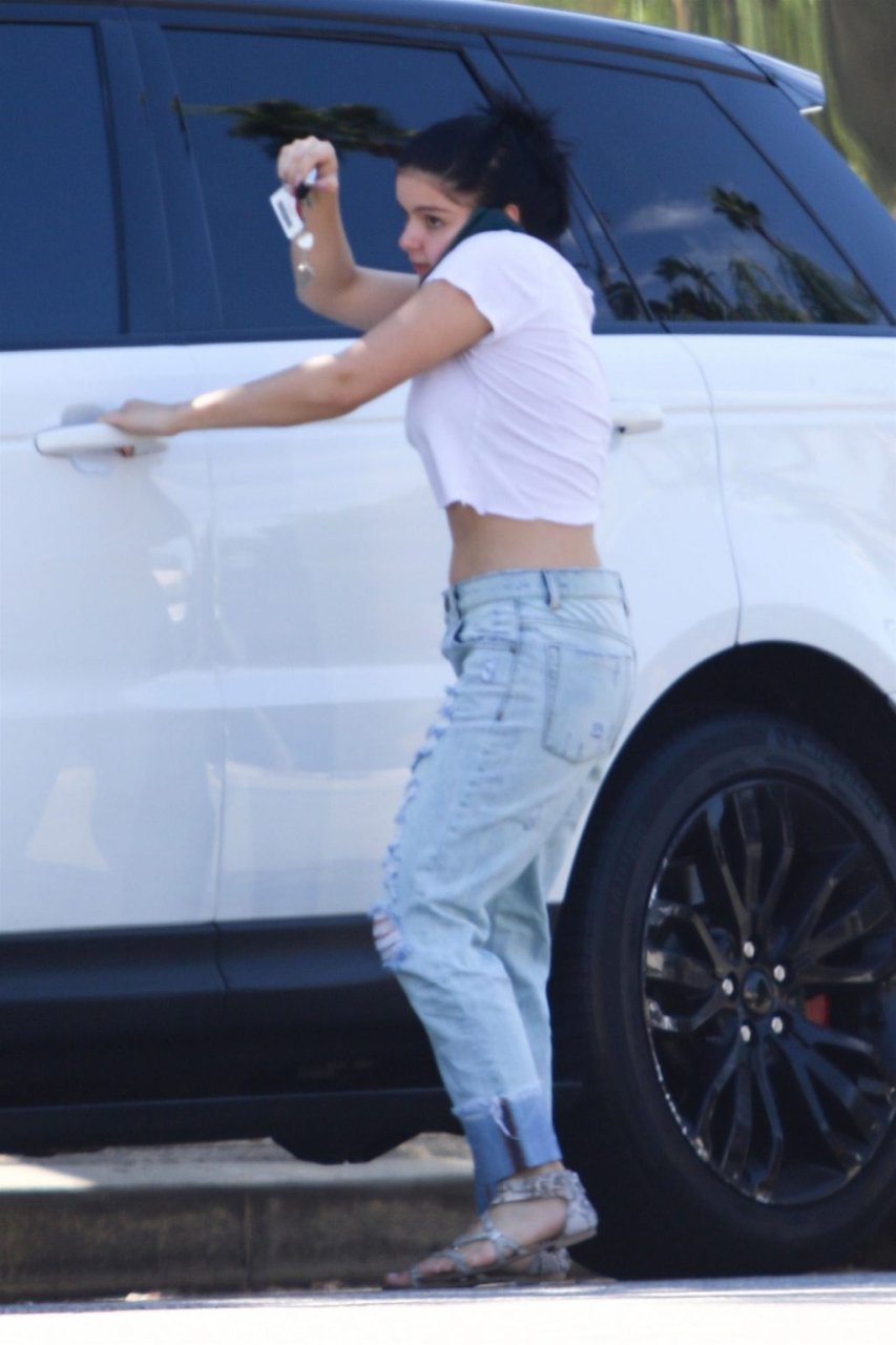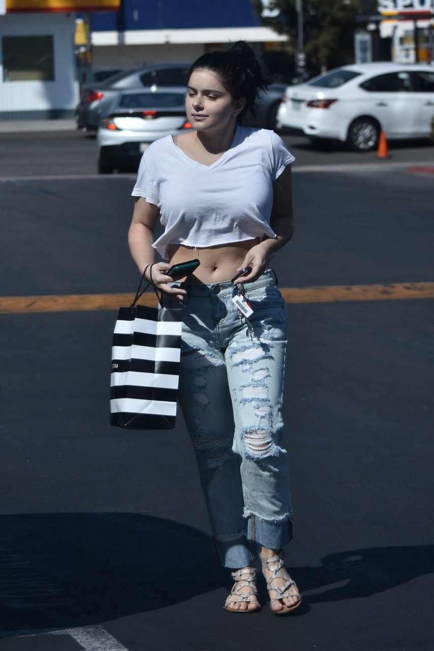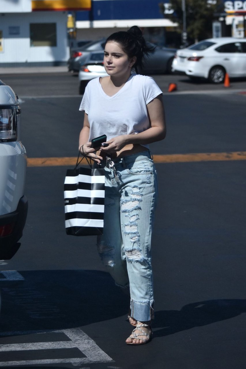 Ariel Winter montre son ventre dans un tee-shirt blanc court et un jean taille basse alors qu’elle fait du shopping chez Sephora à Los Angeles, le 05/10/2018. L’actrice de 20 ans de “Modern Family” a été vue sans maquillage, les cheveux relevés en chignon, montrant son ventre plat en marchant vers sa voiture après avoir fait du shopping chez Sephora.