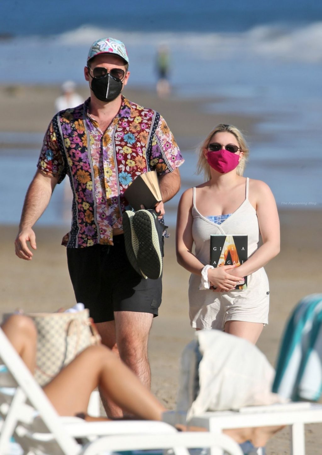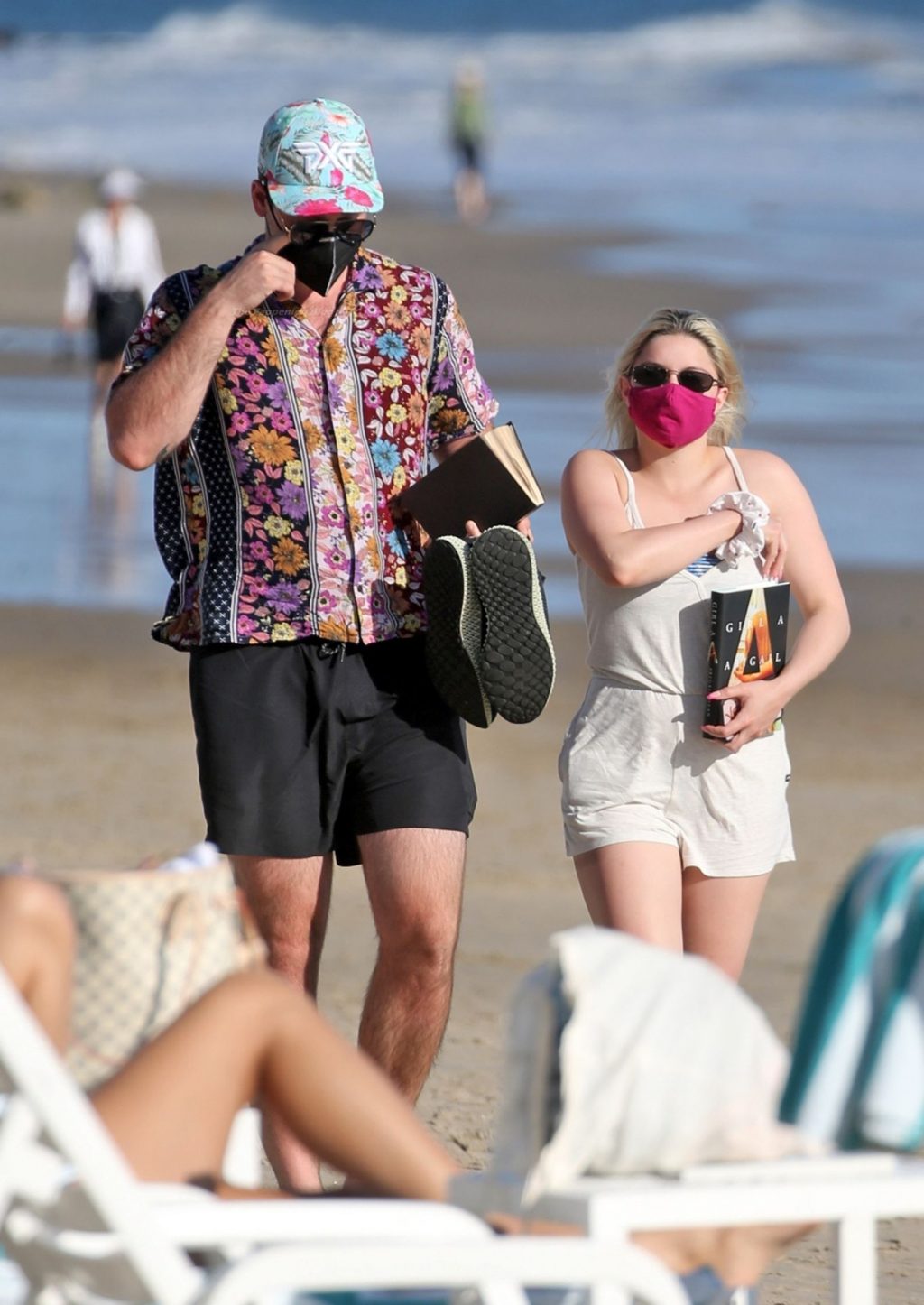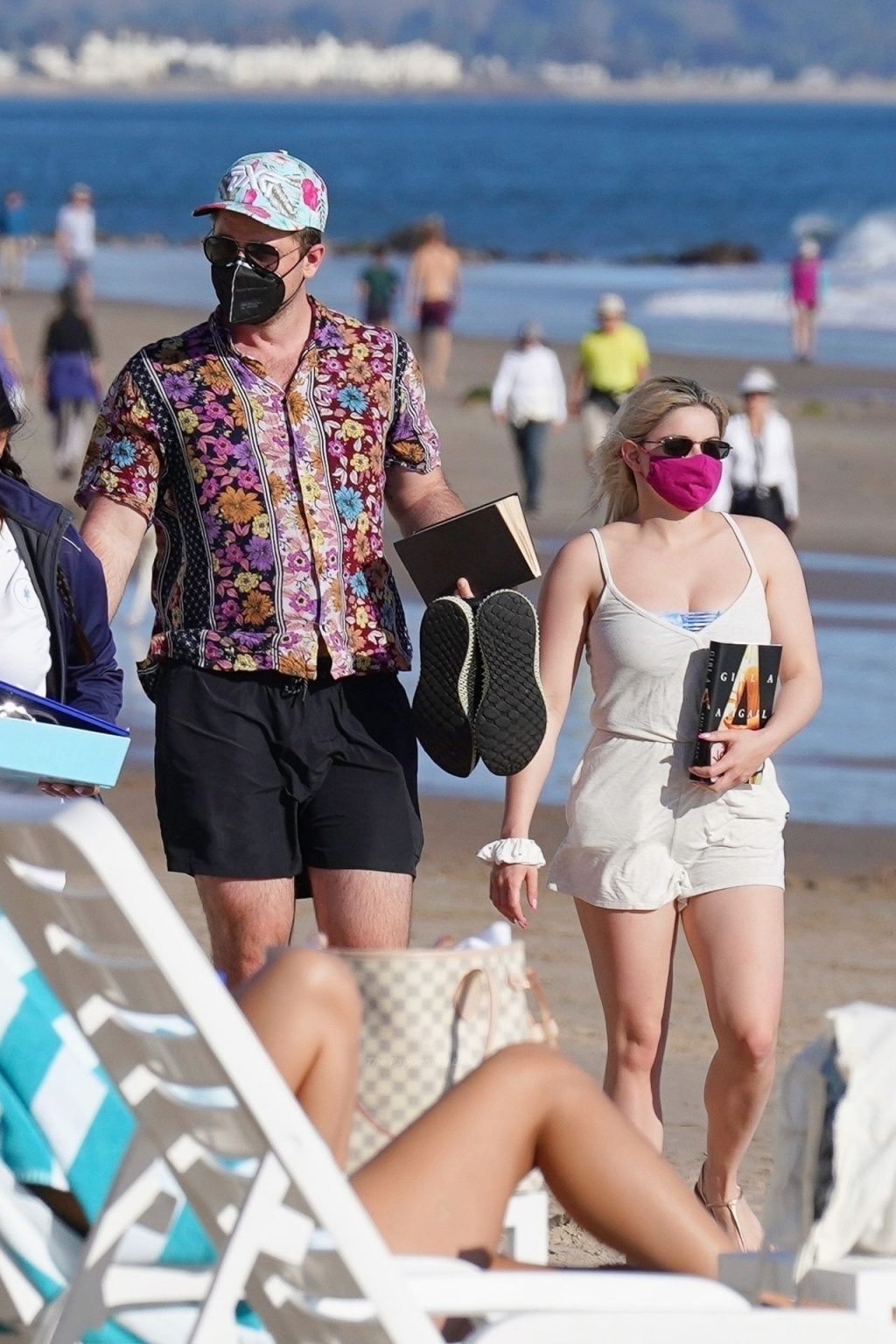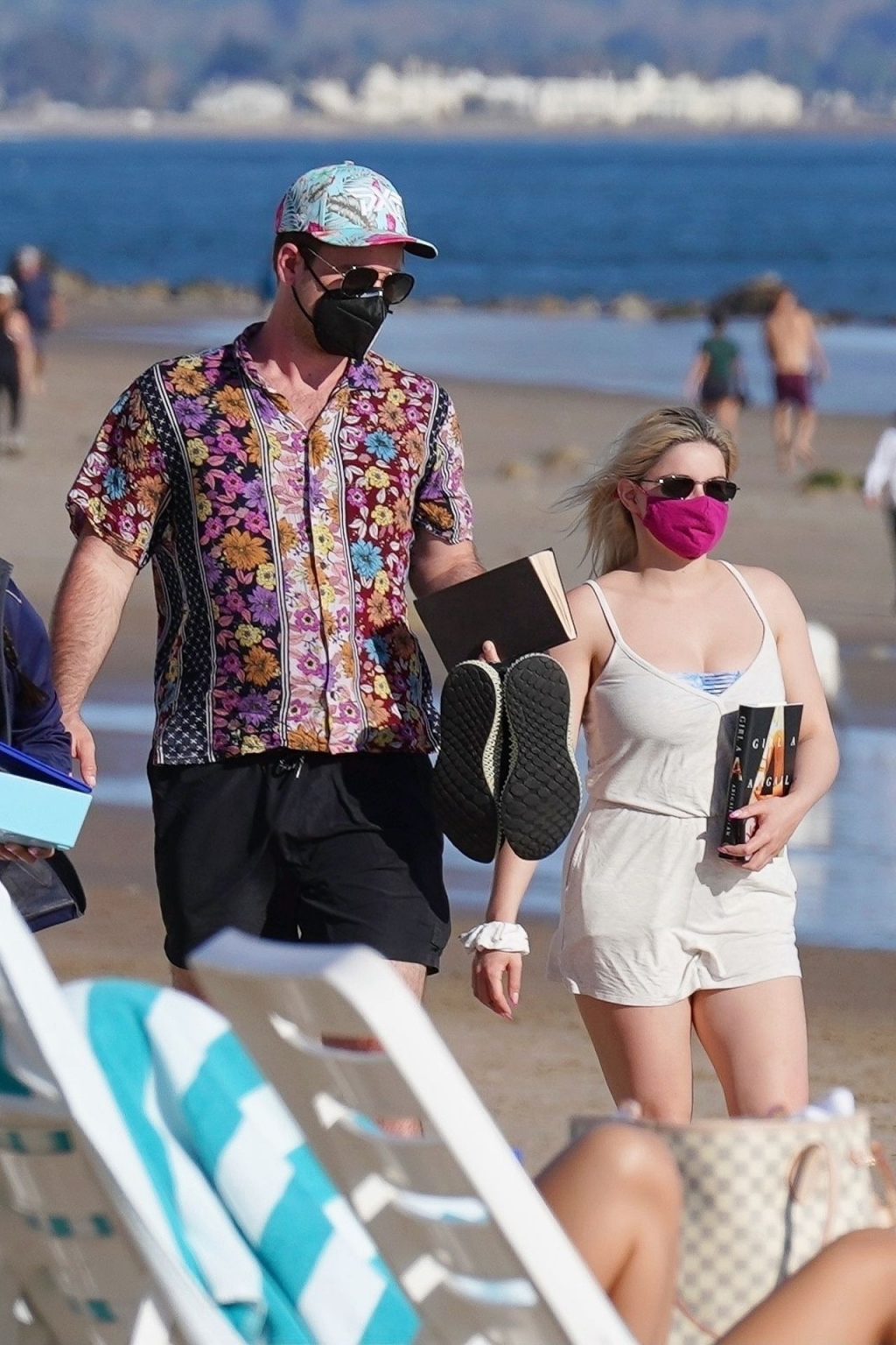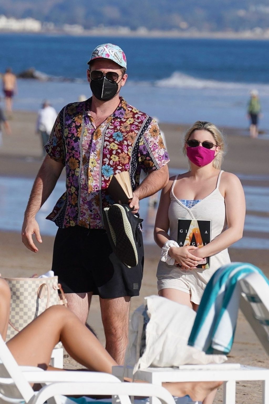 Ariel Winter et son petit ami Luke Benward font glisser des pierres sur la plage à Santa Barbara, 01/03/2021. Ariel est restée décontractée, serrant son exemplaire du best-seller d’Abigail Dean « Girl A ».