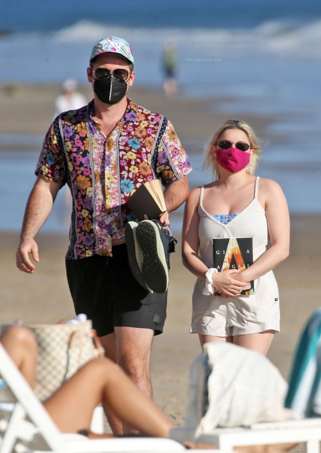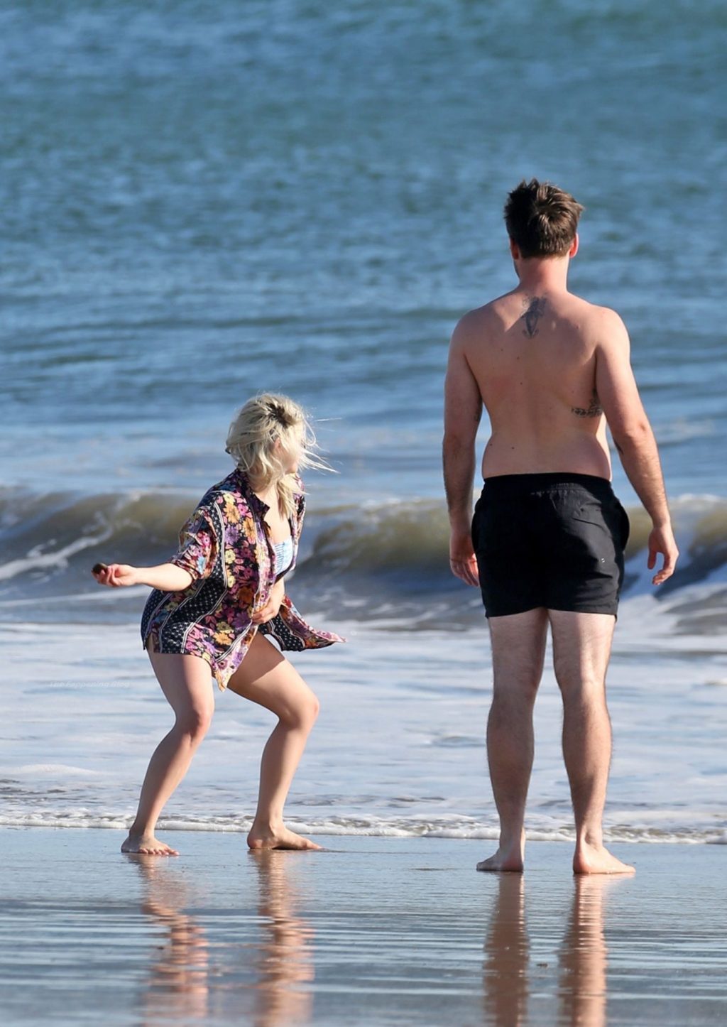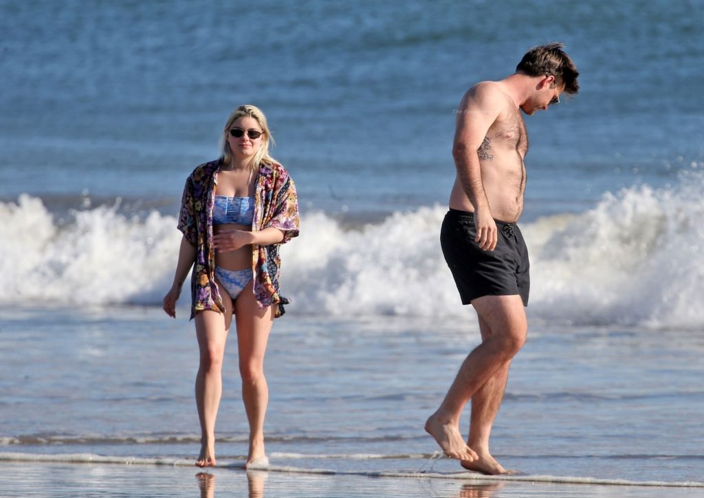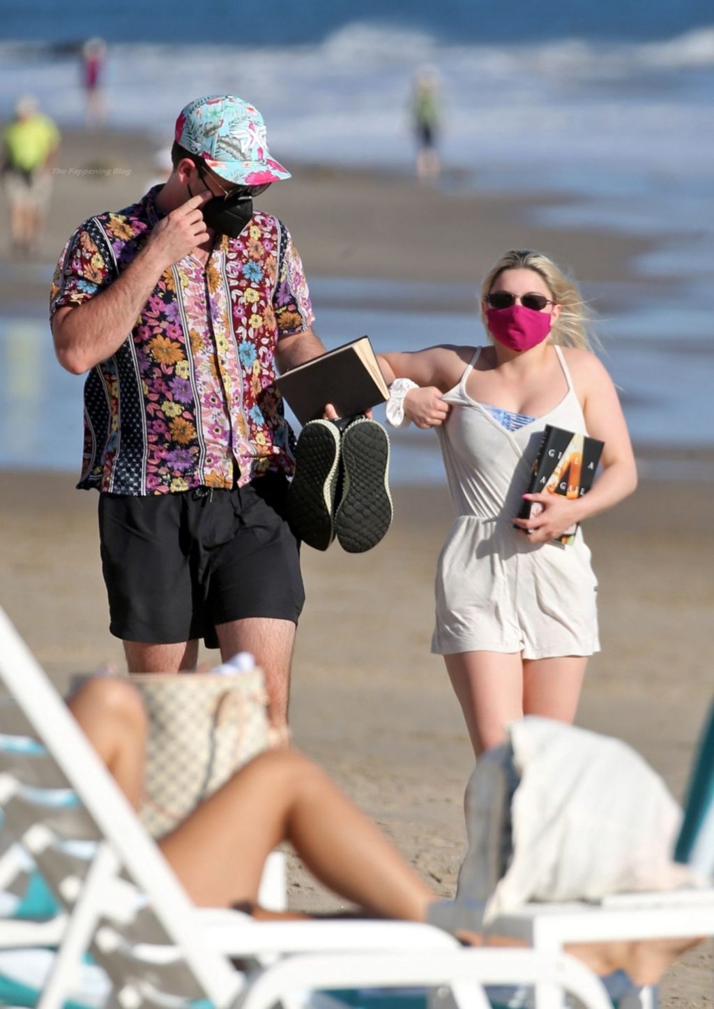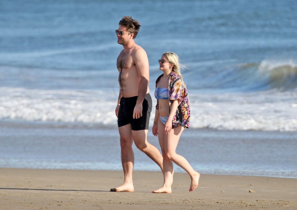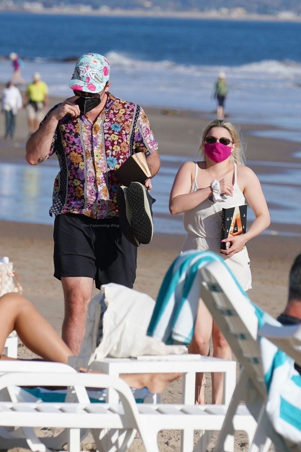 Ariel Winter et son petit ami Luke Benward font glisser des pierres sur la plage à Santa Barbara, 01/03/2021. Ariel est restée décontractée, serrant son exemplaire du best-seller d’Abigail Dean « Girl A ».