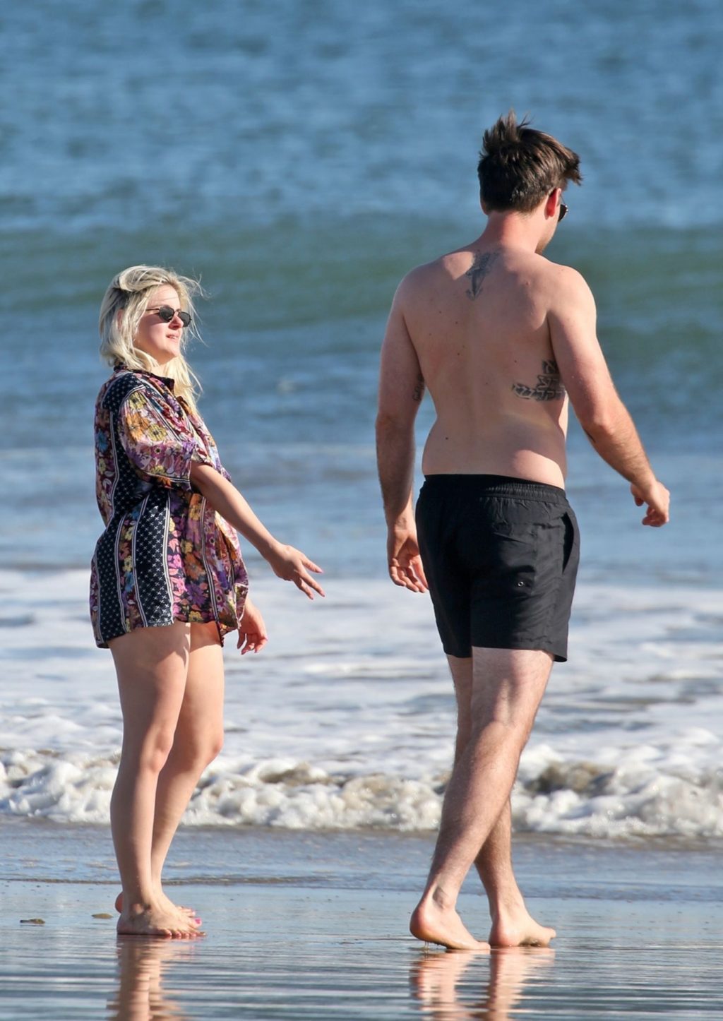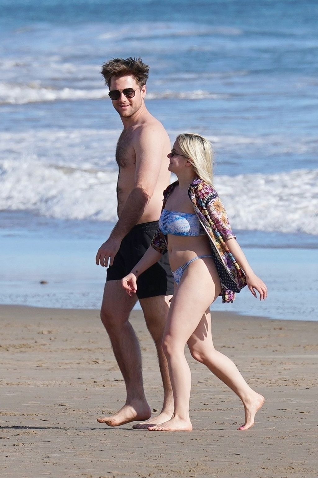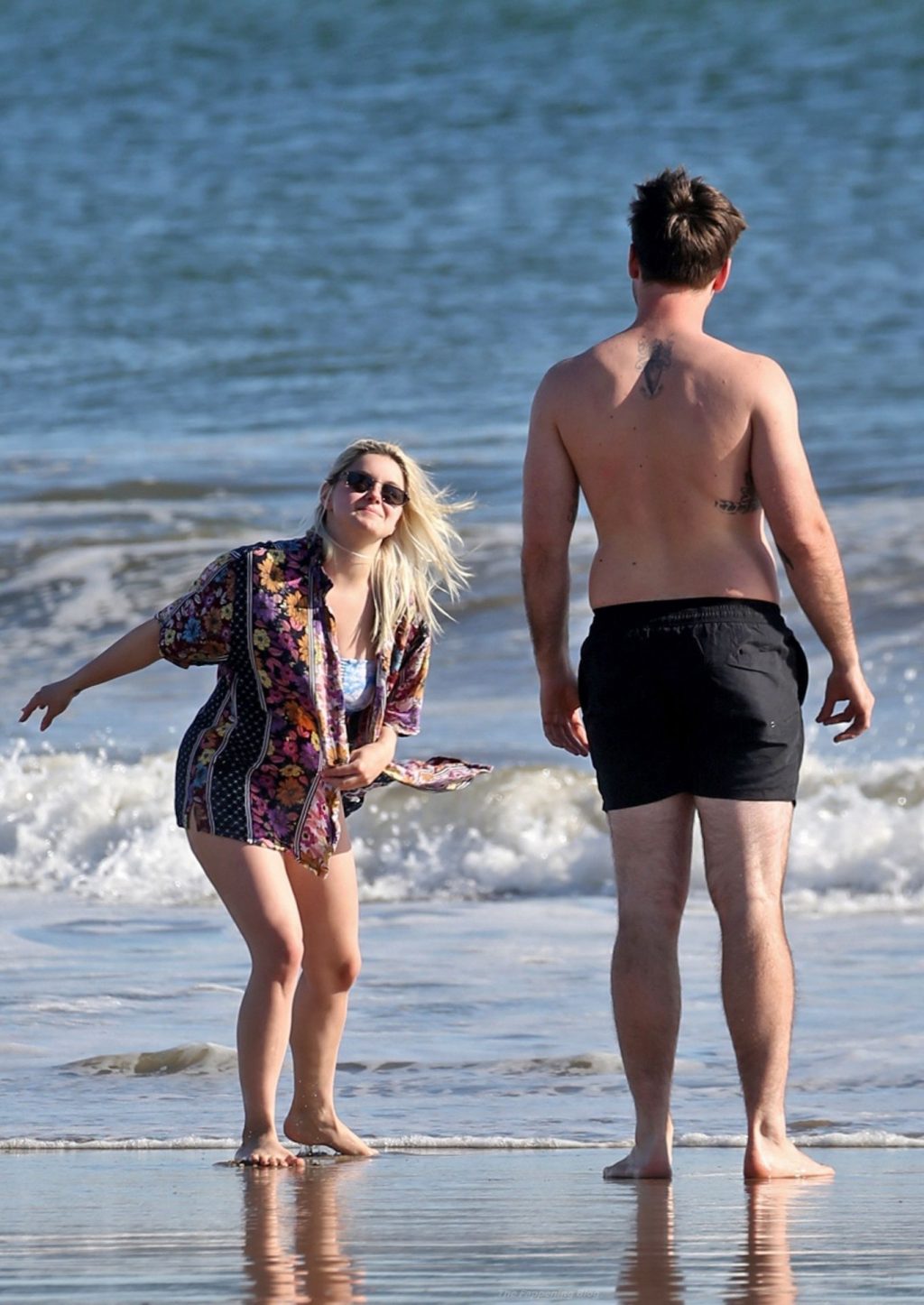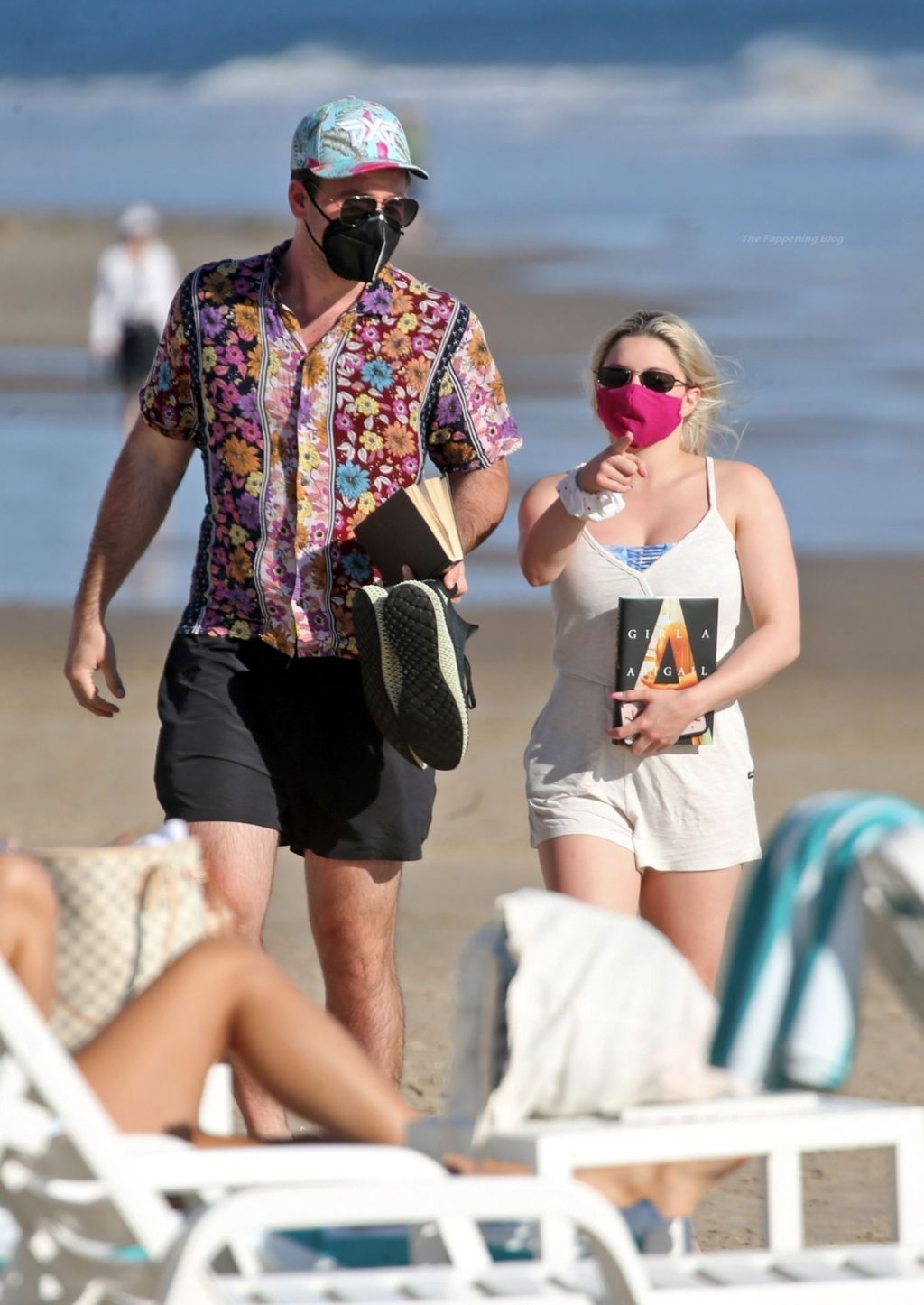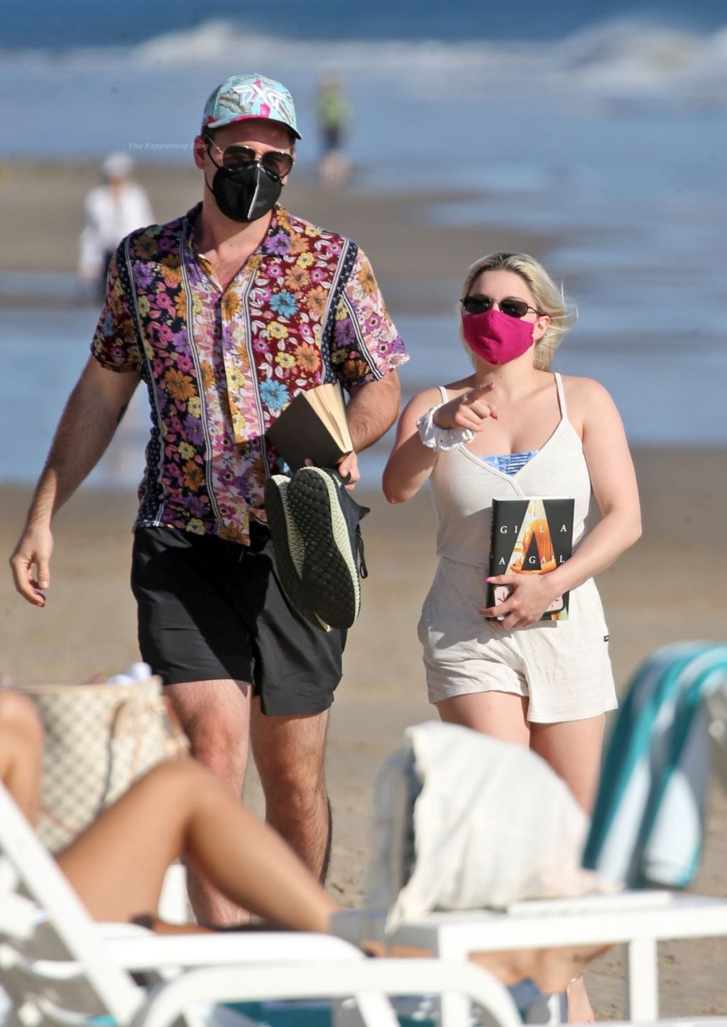 Ariel Winter et son petit ami Luke Benward font glisser des pierres sur la plage à Santa Barbara, 01/03/2021. Ariel est restée décontractée, serrant son exemplaire du best-seller d’Abigail Dean « Girl A ».