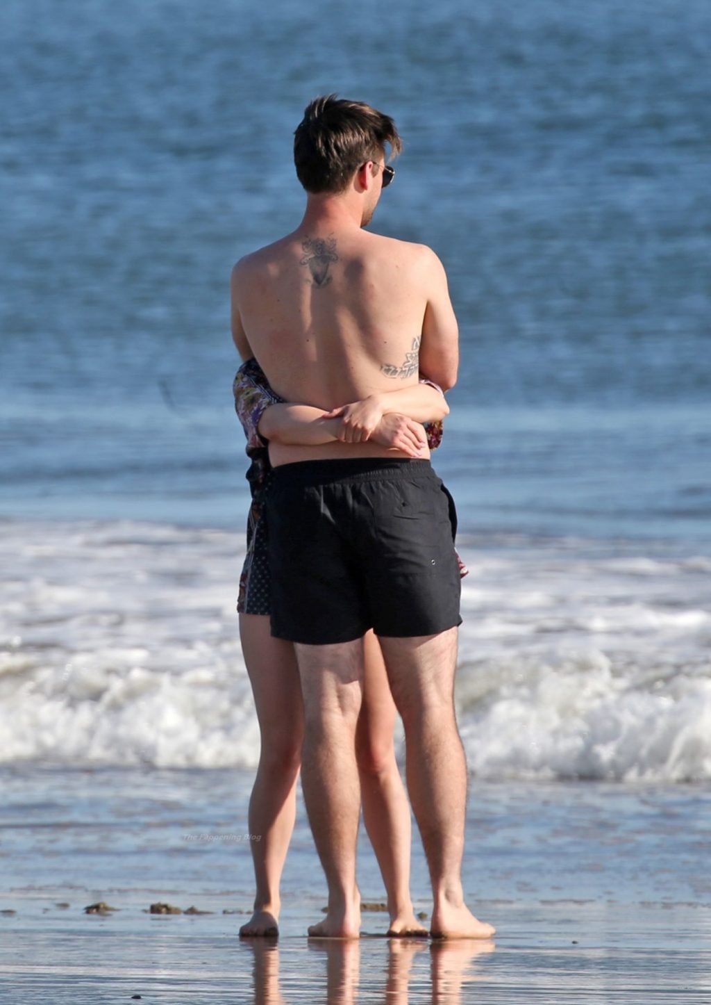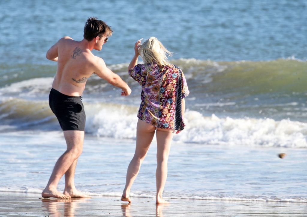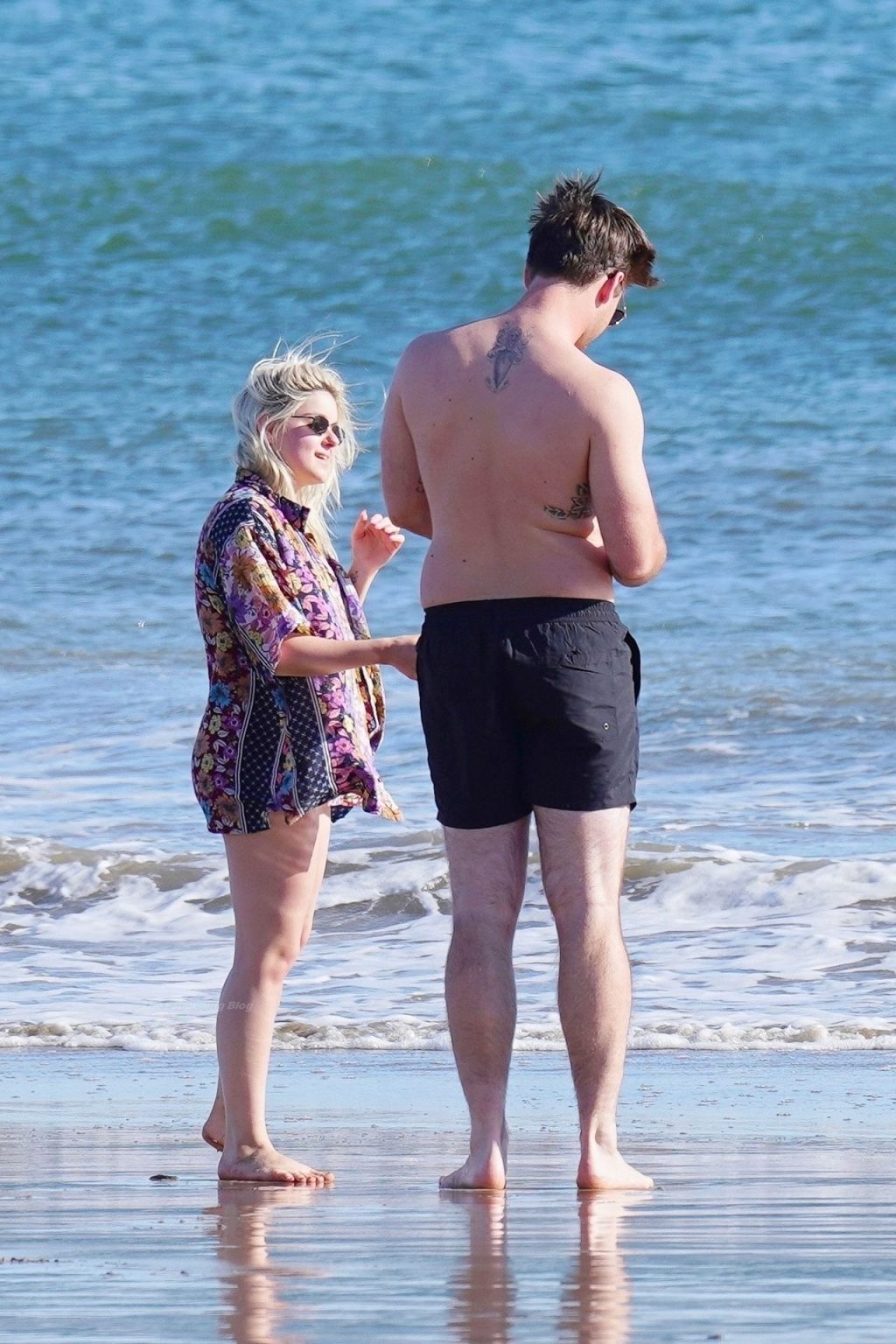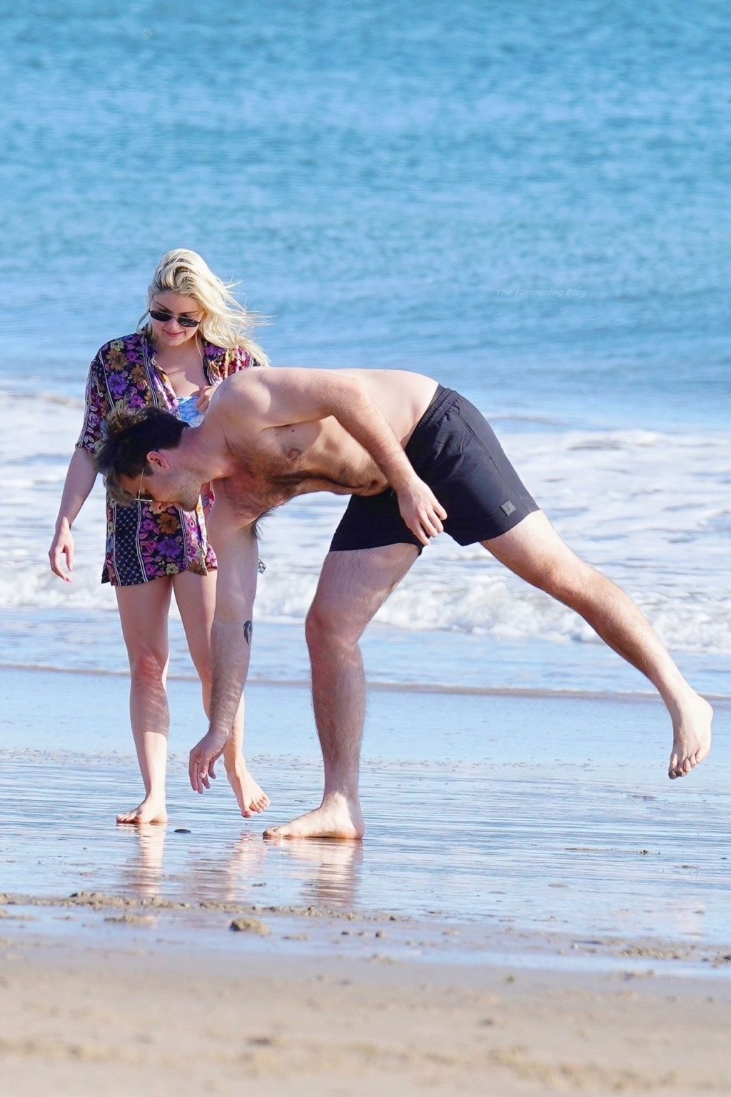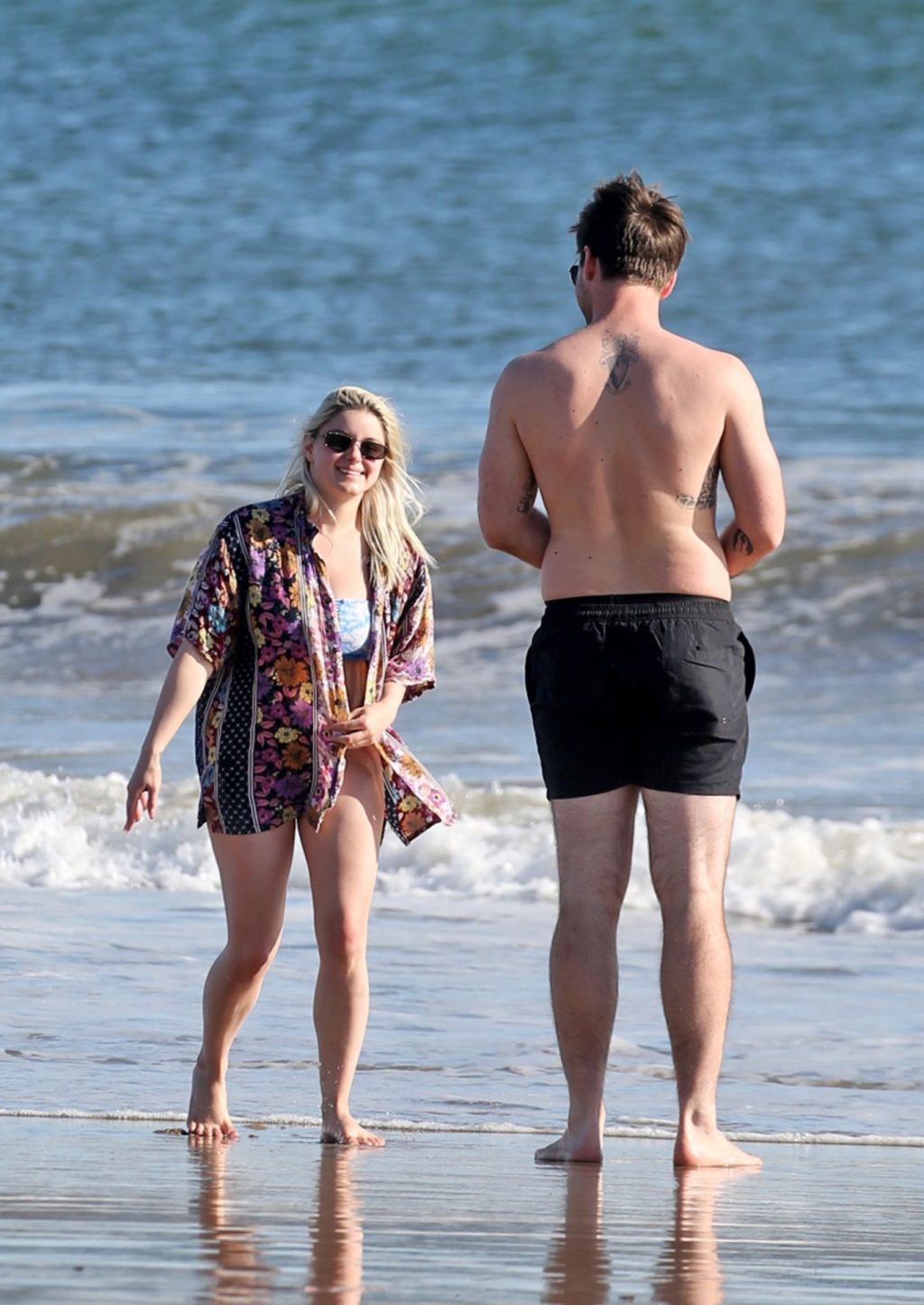 Ariel Winter et son petit ami Luke Benward font glisser des pierres sur la plage à Santa Barbara, 01/03/2021. Ariel est restée décontractée, serrant son exemplaire du best-seller d’Abigail Dean « Girl A ».