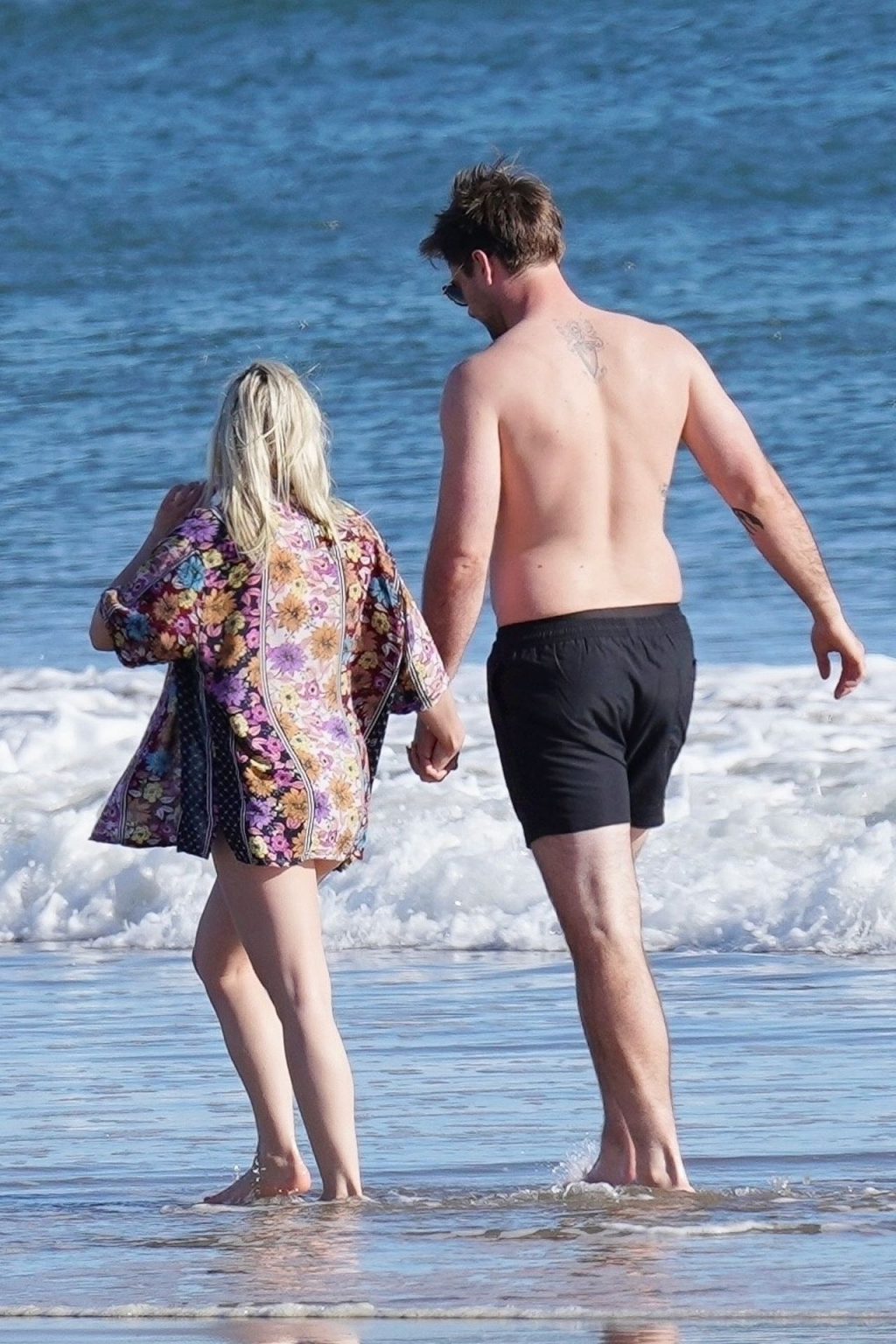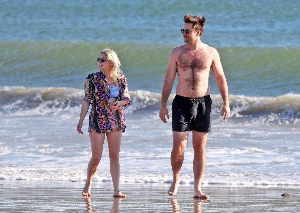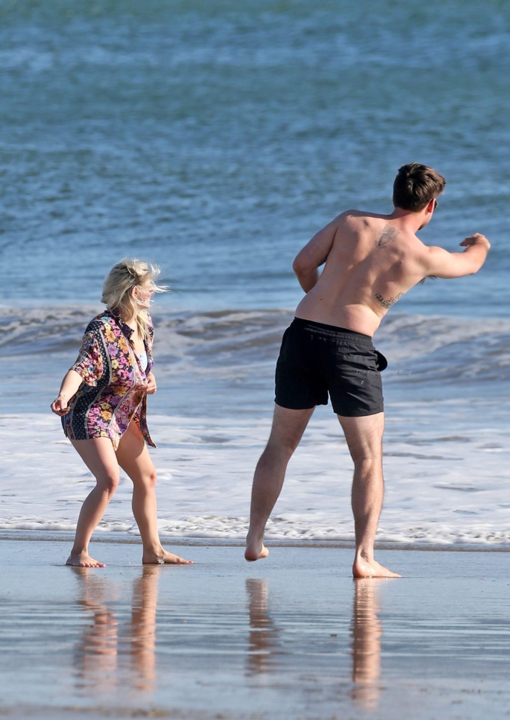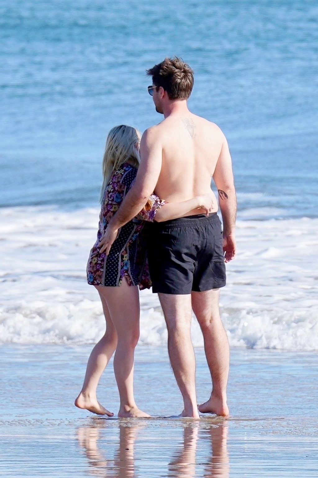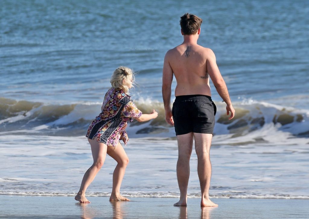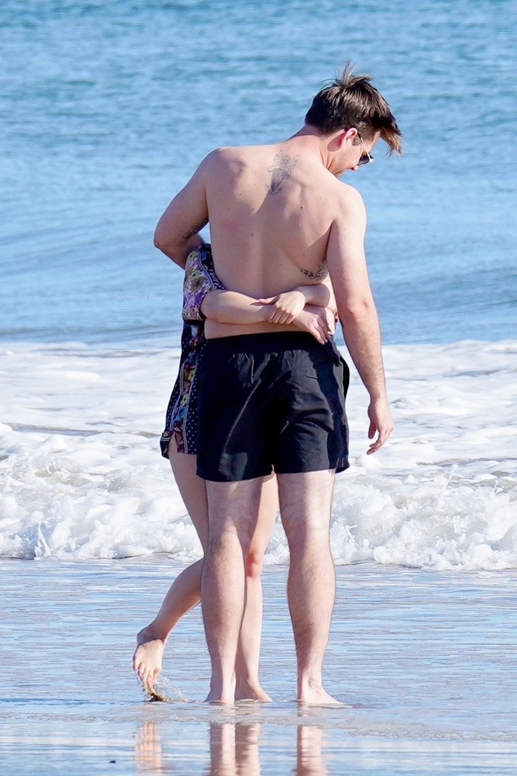 Ariel Winter et son petit ami Luke Benward font glisser des pierres sur la plage à Santa Barbara, 01/03/2021. Ariel est restée décontractée, serrant son exemplaire du best-seller d’Abigail Dean « Girl A ».