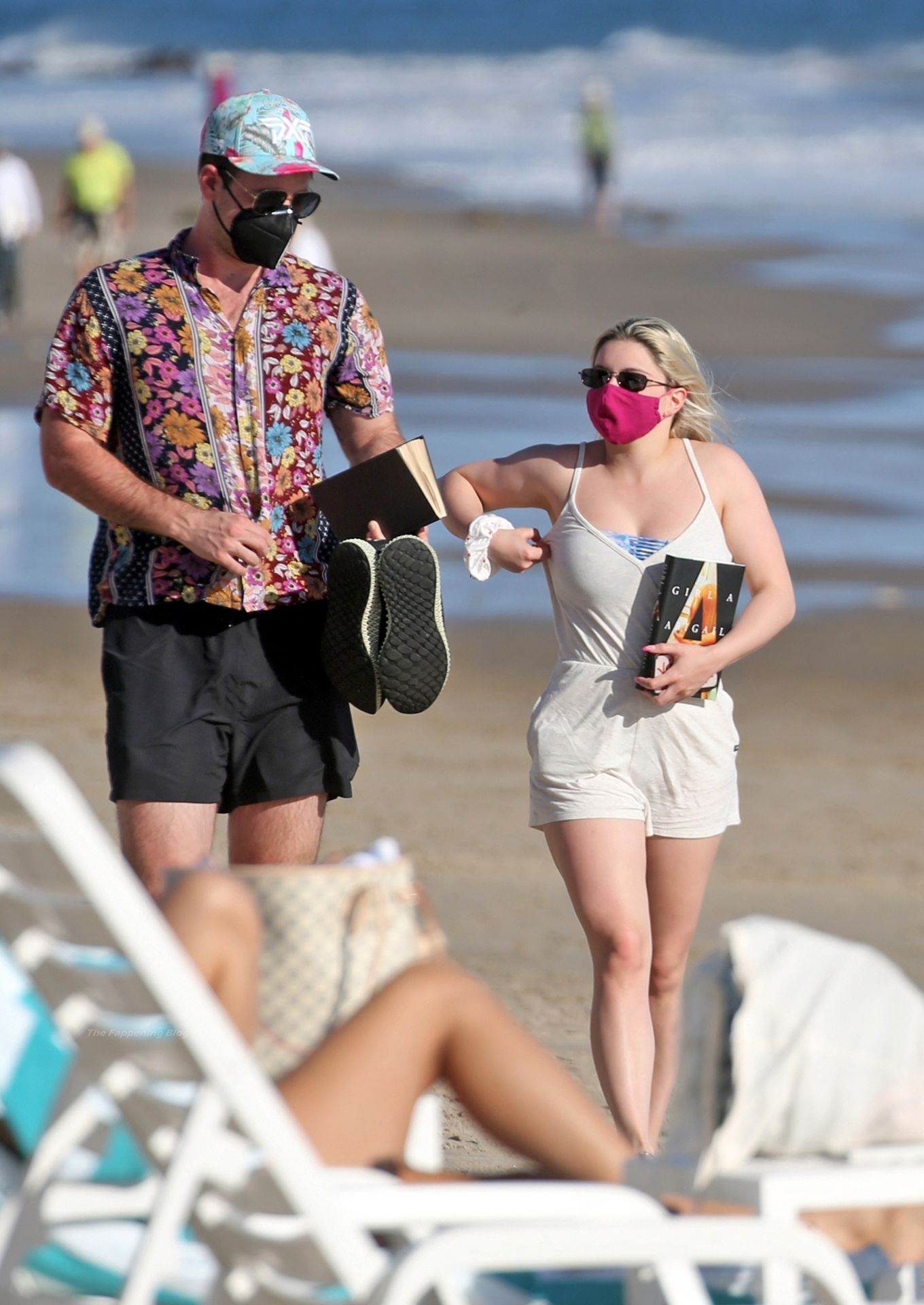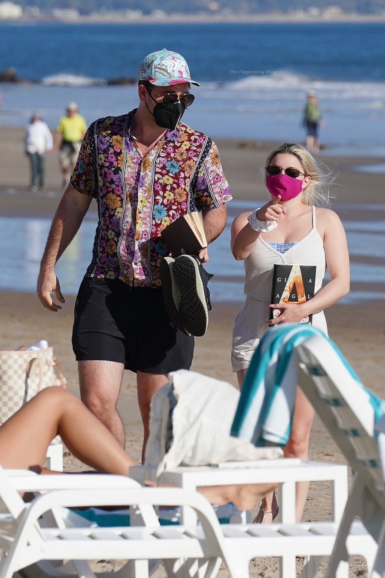 Ariel Winter et son petit ami Luke Benward font glisser des pierres sur la plage à Santa Barbara, 01/03/2021. Ariel est restée décontractée, serrant son exemplaire du best-seller d’Abigail Dean « Girl A ».