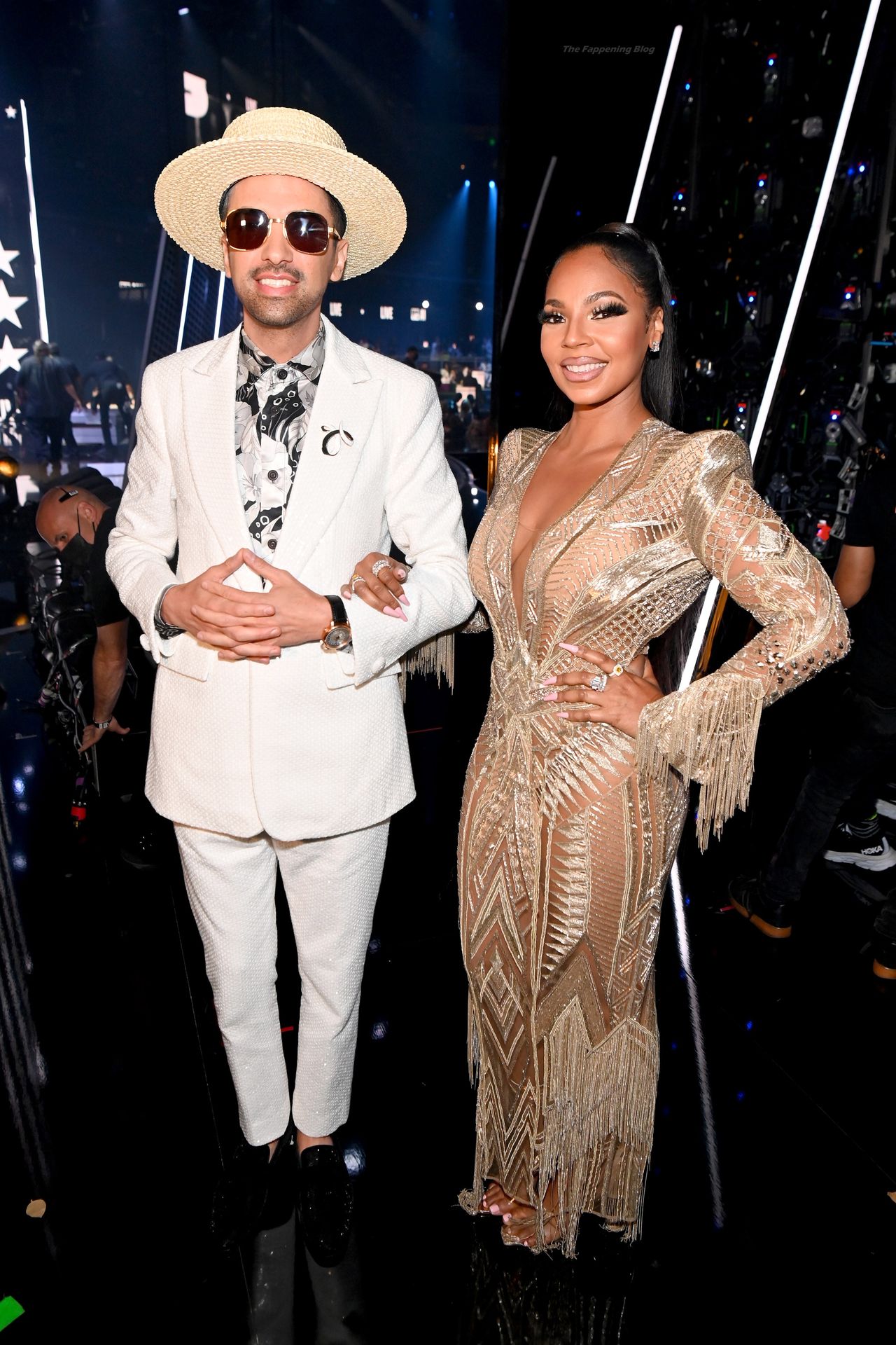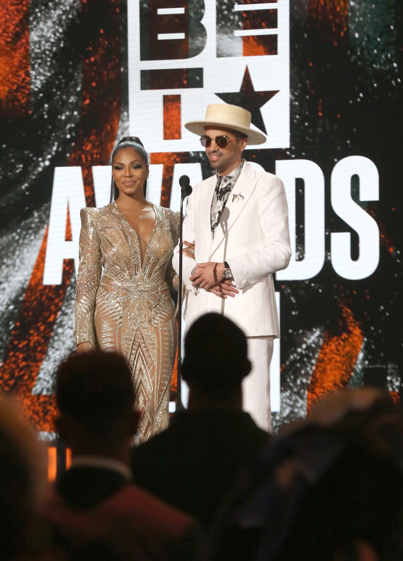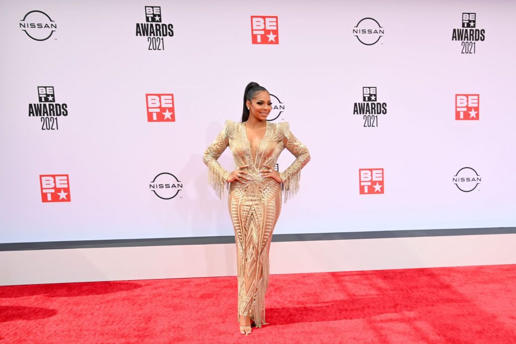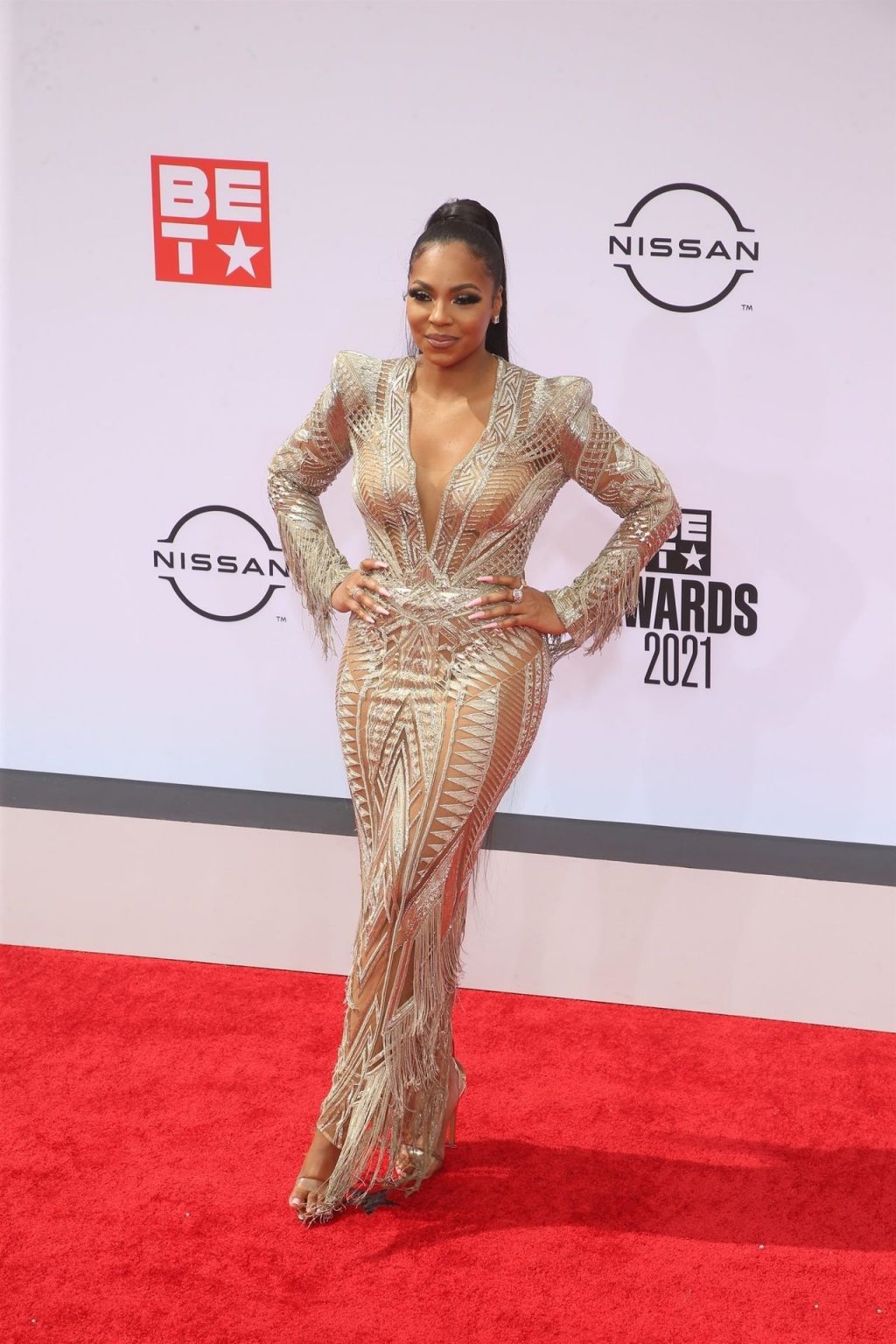 La chanteuse Ashanti pose sur le tapis rouge à son arrivée aux BET Awards au Microsoft Theatre de Los Angeles, le 27/06/2021.