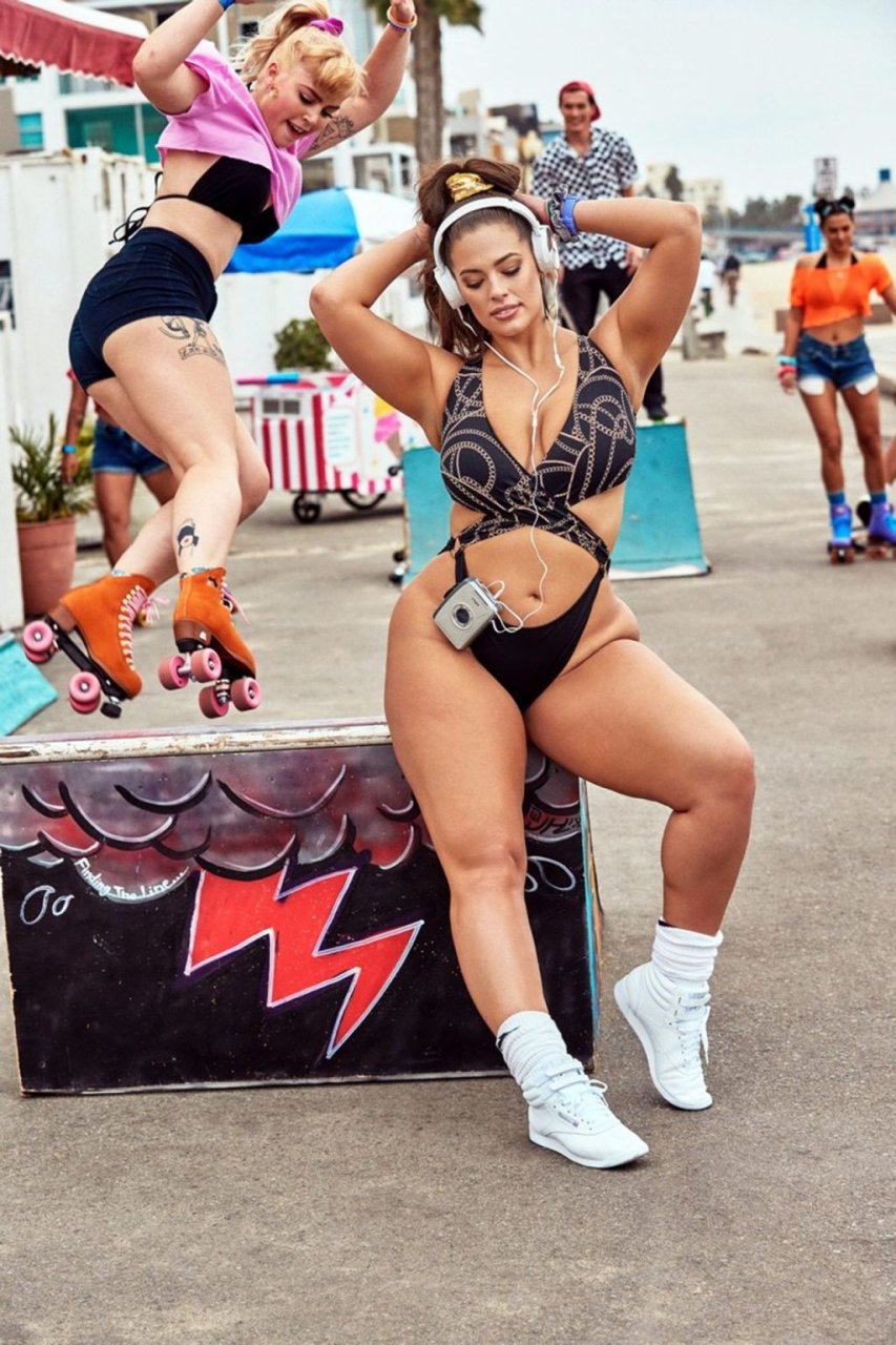 Ashley Graham relance la campagne resort 2019 de Swimsuits For All. La nouvelle collection s’inspire des années 1990 avec des teintes néon ainsi que des coupes taille haute. Ashley pose sur place en Californie du Sud.