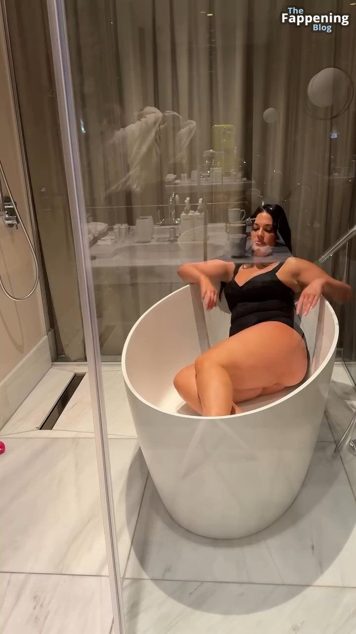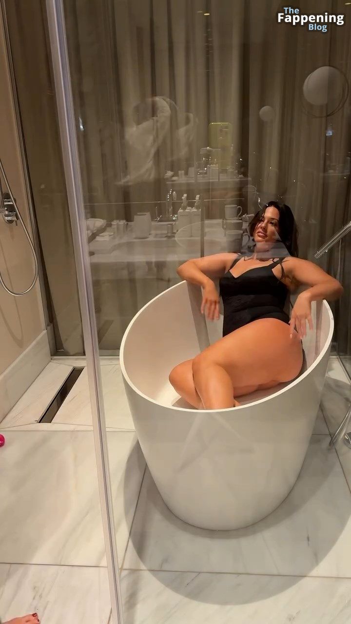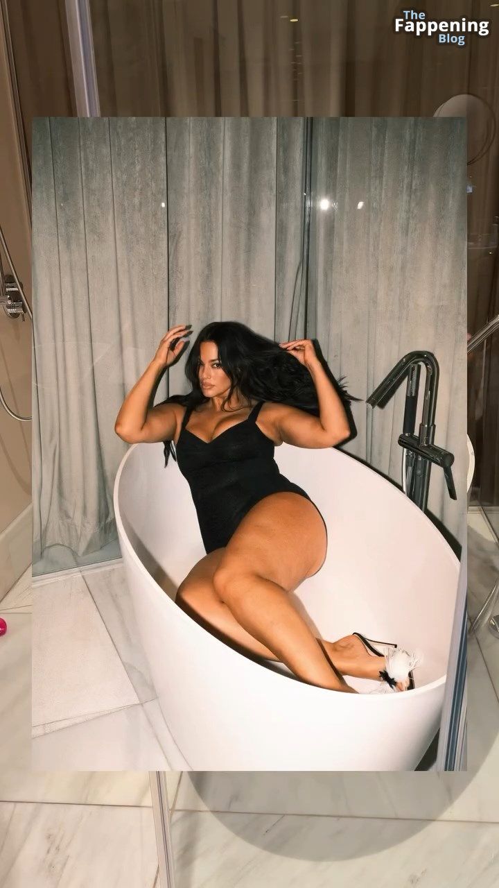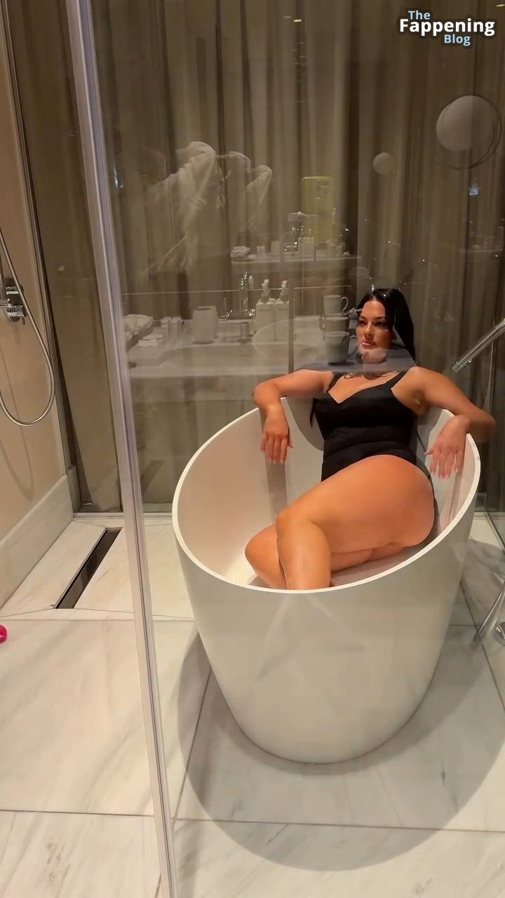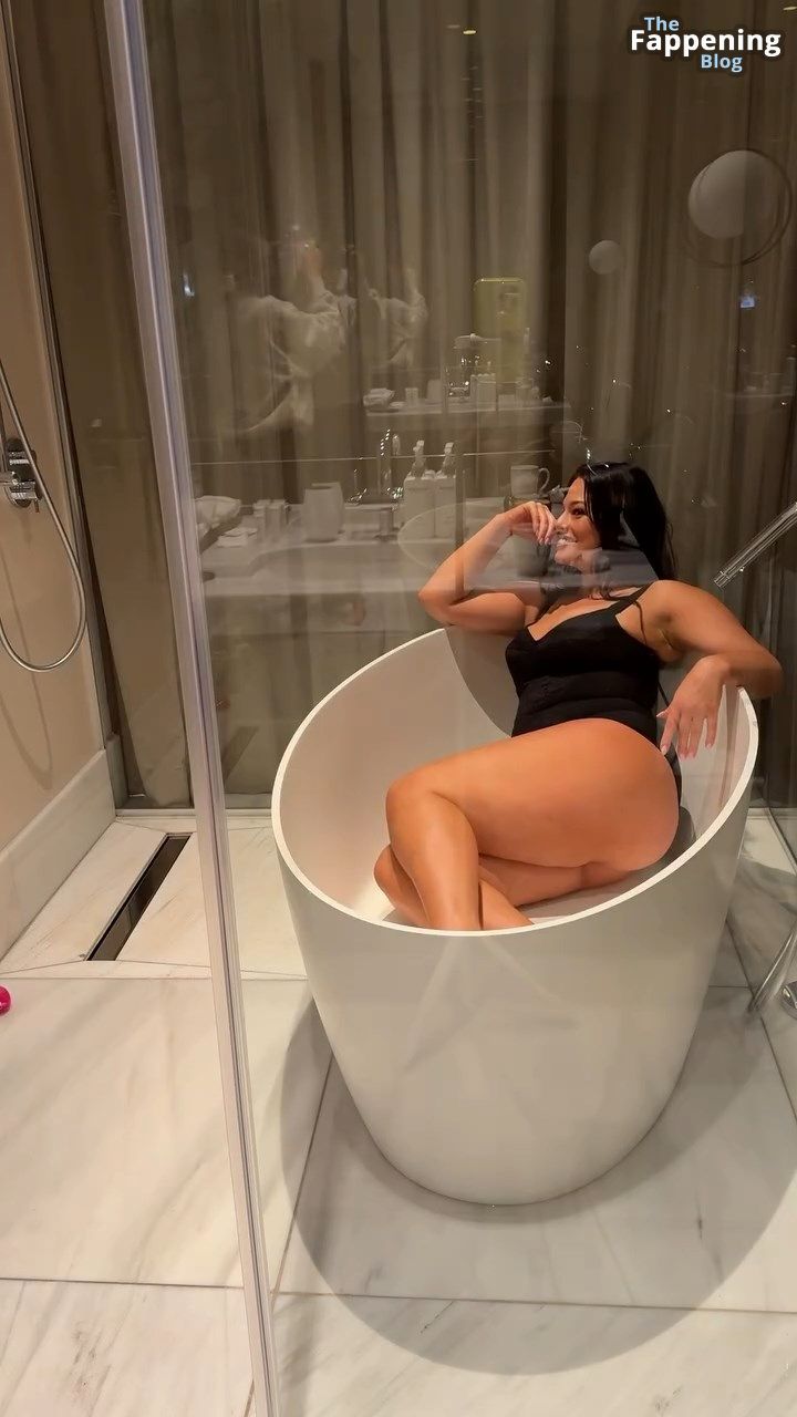 Sur ces photos, le mannequin porte un body noir très sexy, exhibant son fessier rebondi et ses talons aiguilles chics directement dans la salle de bain. Elle ne se retient pas, montrant sans complexe ses grosses fesses et sa poitrine. Sur un cliché, on la voit grimper dans la baignoire avec un sourire, dévoilant accidentellement sa poitrine tout en profitant clairement de chaque instant. D’autres photos montrent Ashley détendue dans la baignoire, pleine de confiance, comme une vraie reine.