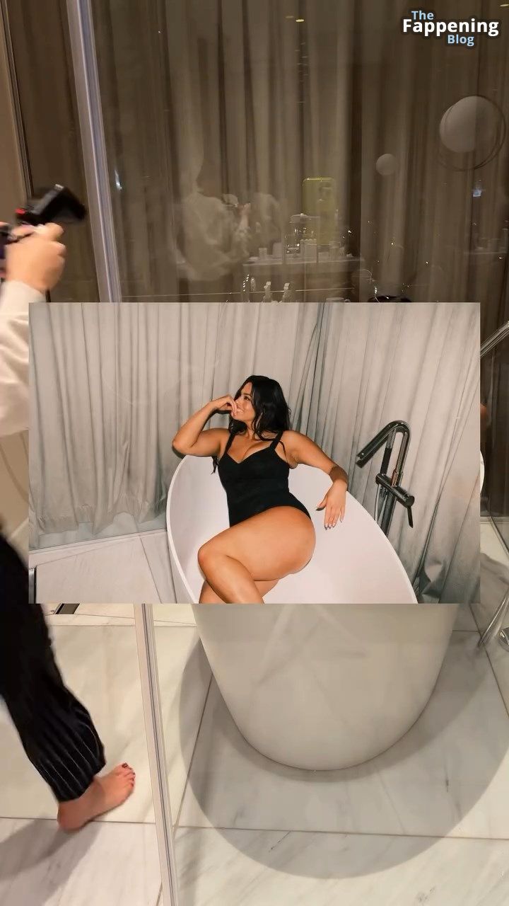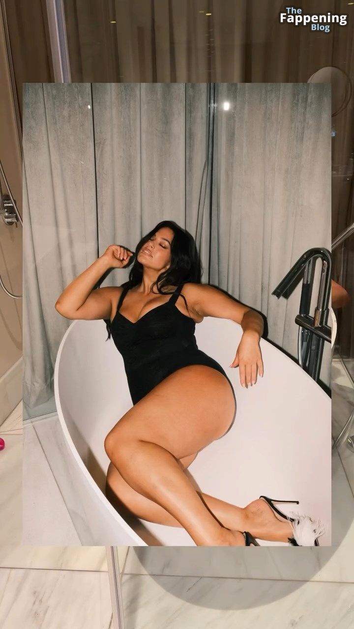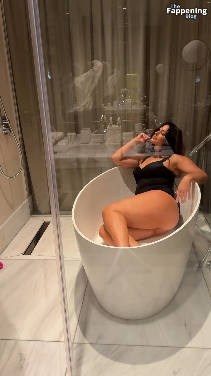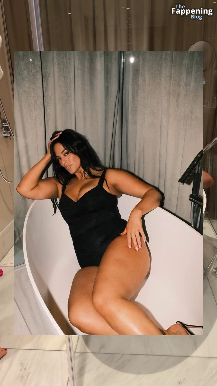 Sur ces photos, le mannequin porte un body noir très sexy, exhibant son fessier rebondi et ses talons aiguilles chics directement dans la salle de bain. Elle ne se retient pas, montrant sans complexe ses grosses fesses et sa poitrine. Sur un cliché, on la voit grimper dans la baignoire avec un sourire, dévoilant accidentellement sa poitrine tout en profitant clairement de chaque instant. D’autres photos montrent Ashley détendue dans la baignoire, pleine de confiance, comme une vraie reine.
