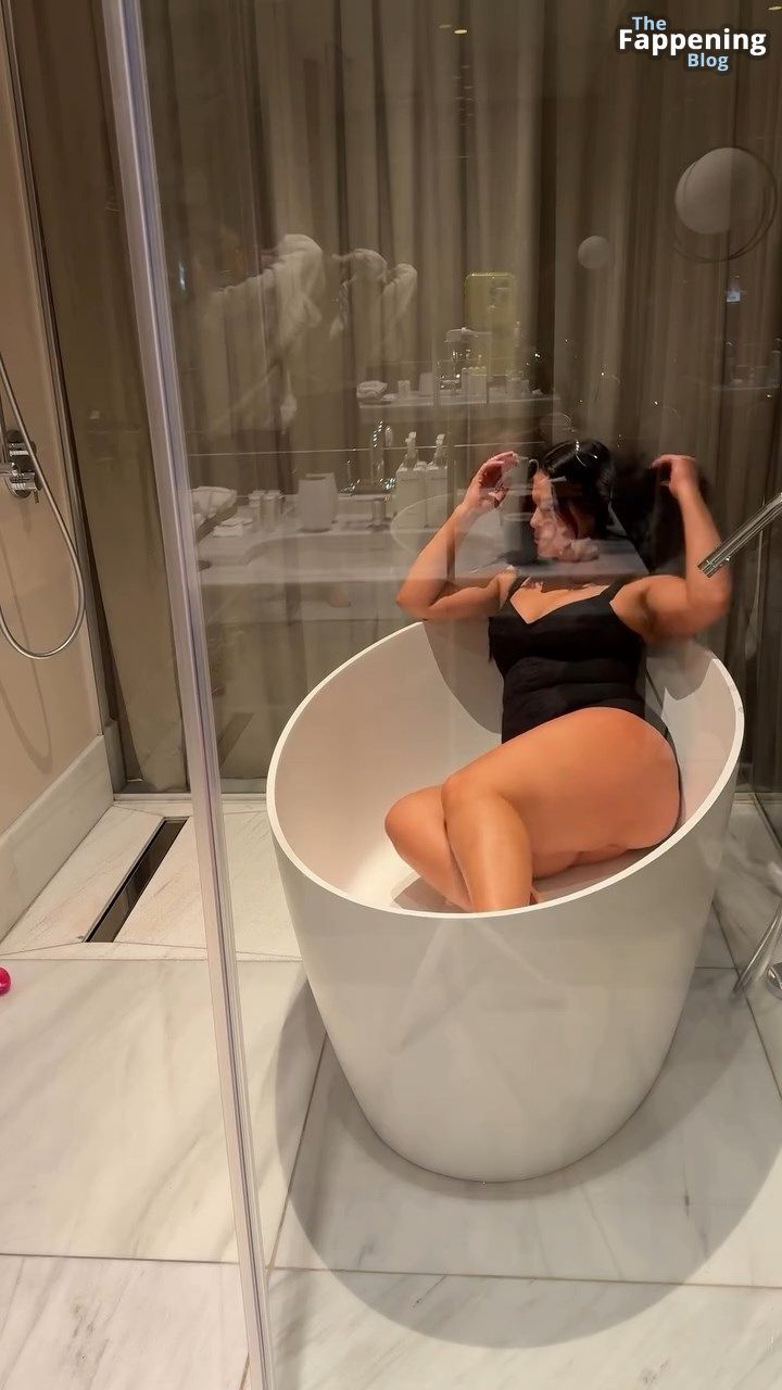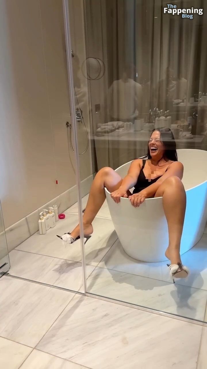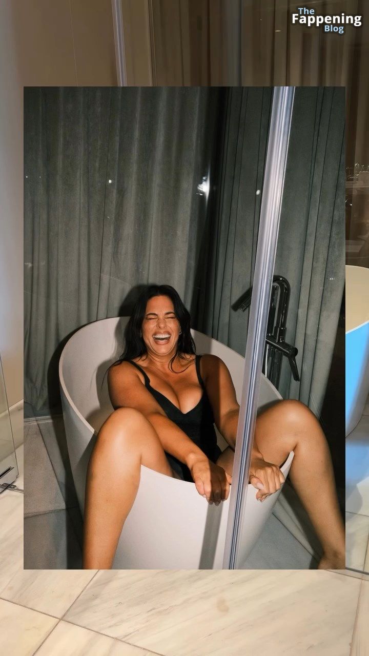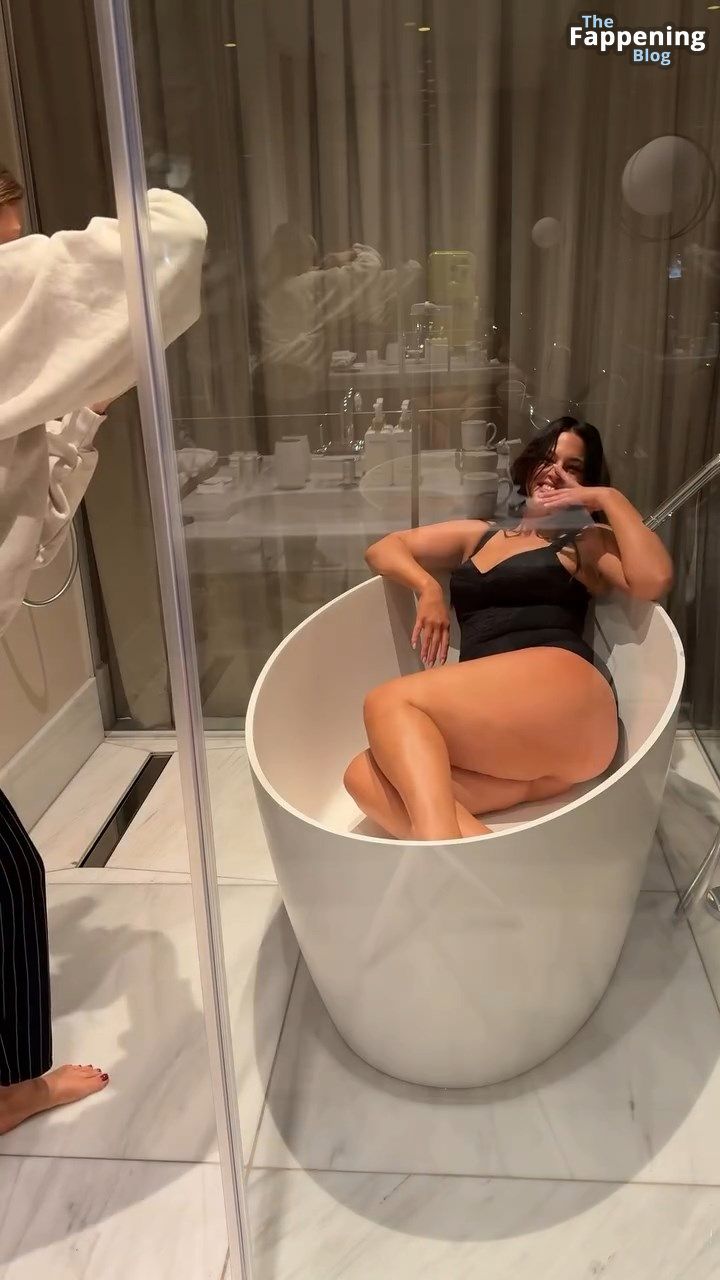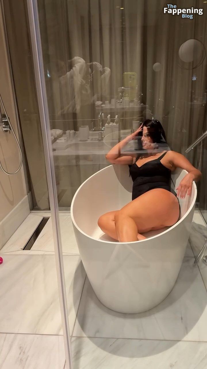 Sur ces photos, le mannequin porte un body noir très sexy, exhibant son fessier rebondi et ses talons aiguilles chics directement dans la salle de bain. Elle ne se retient pas, montrant sans complexe ses grosses fesses et sa poitrine. Sur un cliché, on la voit grimper dans la baignoire avec un sourire, dévoilant accidentellement sa poitrine tout en profitant clairement de chaque instant. D’autres photos montrent Ashley détendue dans la baignoire, pleine de confiance, comme une vraie reine.