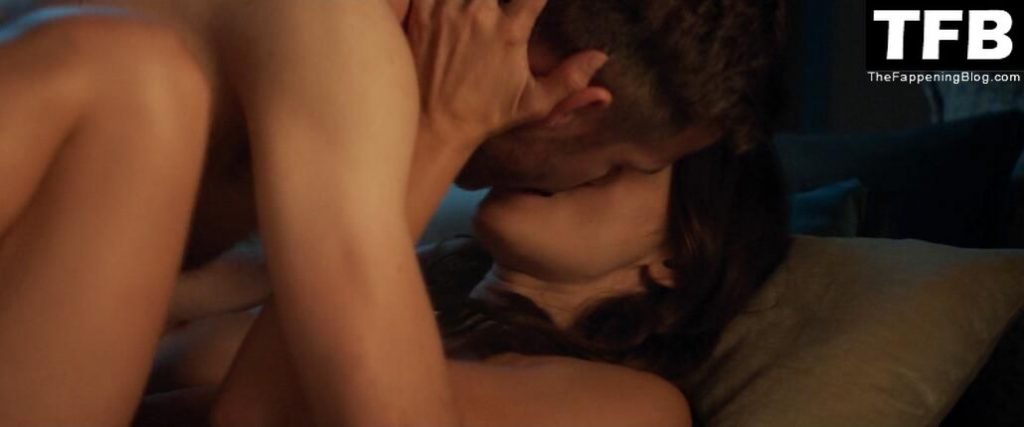 Ashley Greene s’embrasse avec un homme avant que nous la voyions torse nu sur le dos en train d’avoir des relations sexuelles, Ashley enroulant ses jambes autour de l’homme.